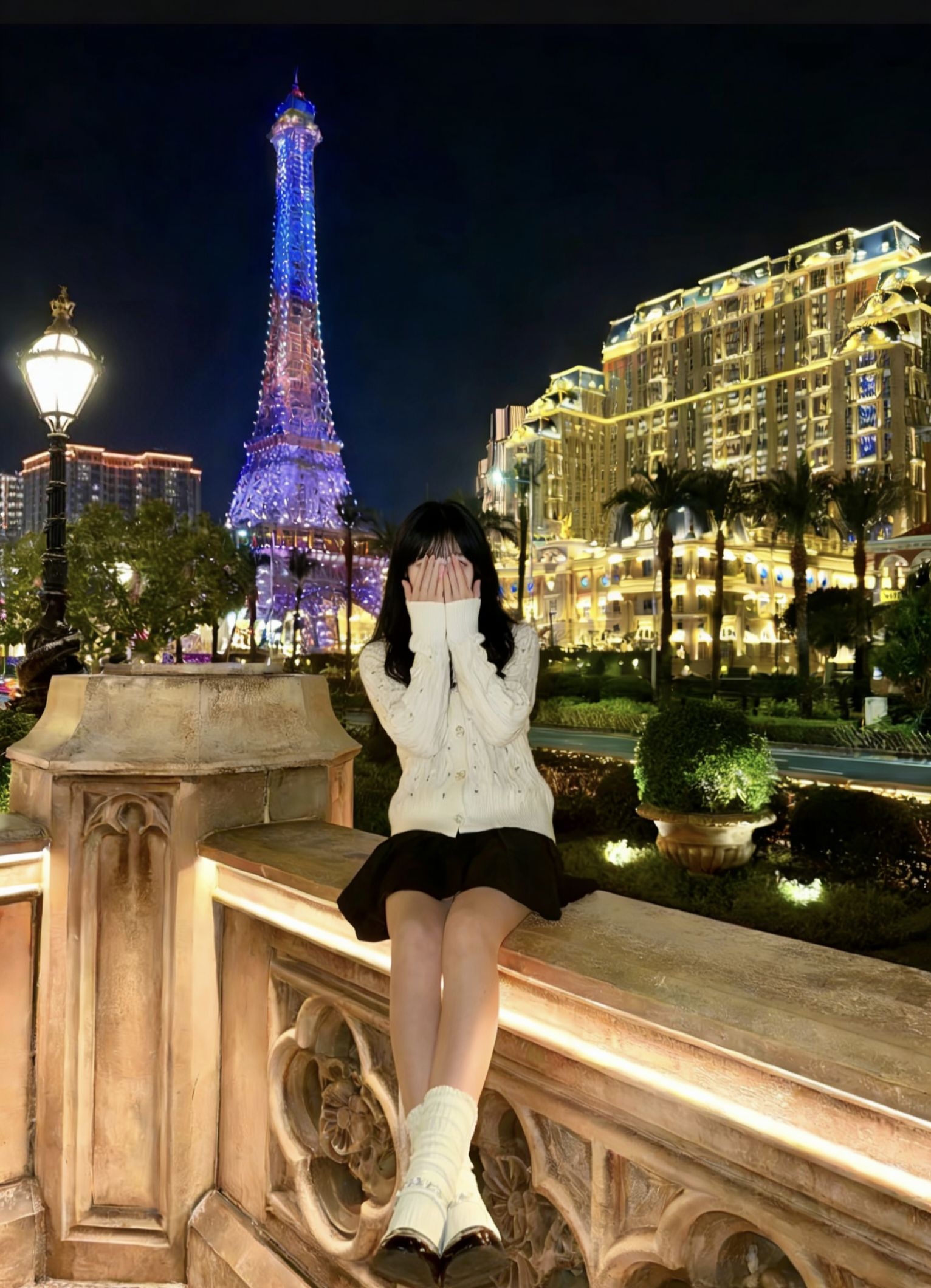 白毛衣+黑短裙+堆堆袜的组合,直接拿捏住甜妹氛围感🎀 晚上的铁塔会变换灯光颜色,紫蓝渐变的光打在建筑上,随手一拍都是韩剧女主既视感📸