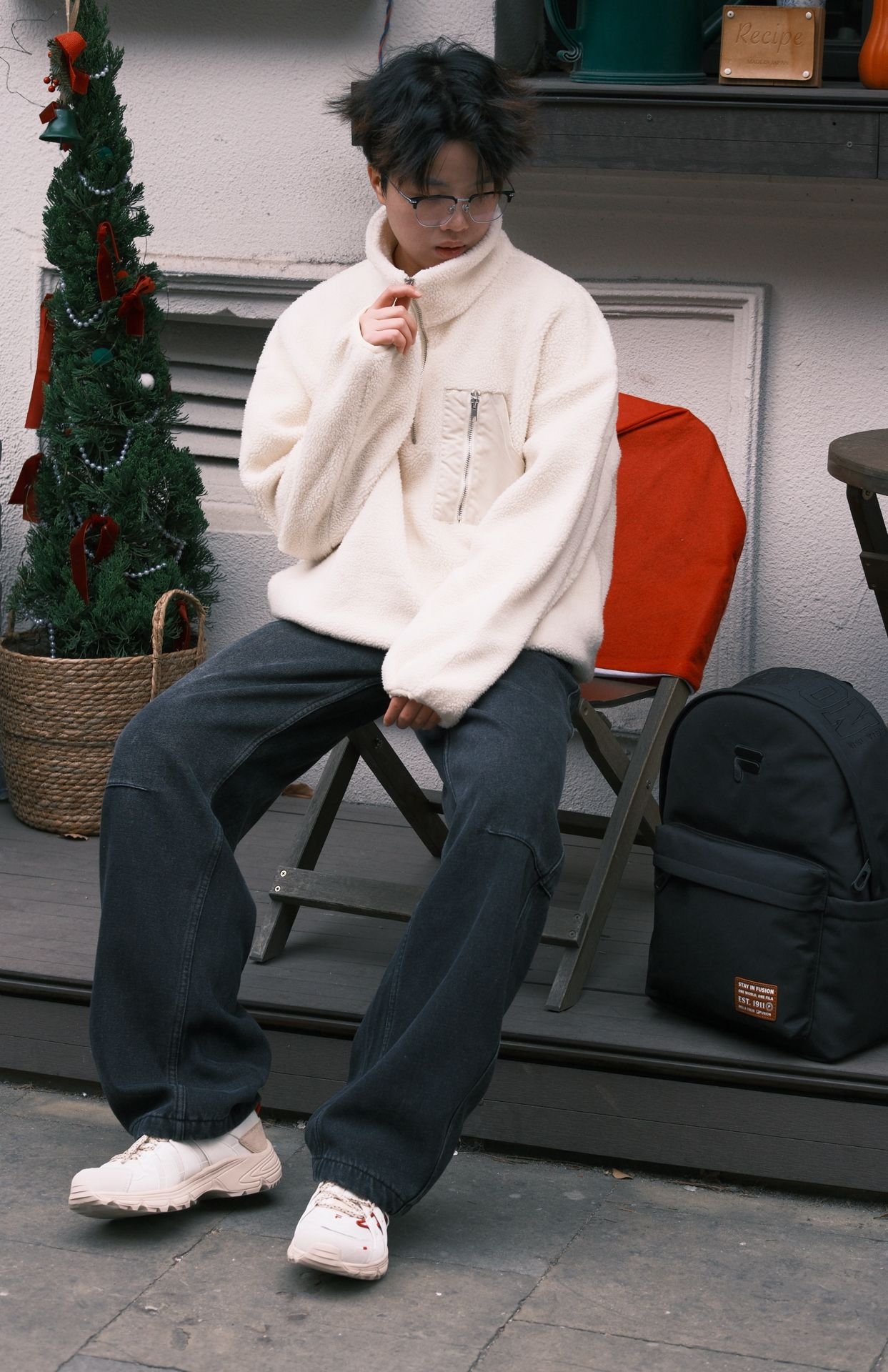 🔴提前预制新年穿搭啦 上衣一件乳白色羊羔毛外套 搭配了斐乐潮牌马年新年限定款复古鞋 我真嘟盯上好久了✨ 米白+红棕的配色太有年味了 编织绑带设计很有特色 鞋身的红色小细节点缀得刚刚好不突兀 鞋面是网布+麂皮的拼接细节质感💯 防滑厚底隐形增高🦵 上脚是那种偏软的踩屎感 出门东西太多背上了斐乐潮牌休闲双肩包 黑色的配色敲百搭🖤 书包大容量分层设计好收纳 搭配起来也能增加整体穿搭的层次感