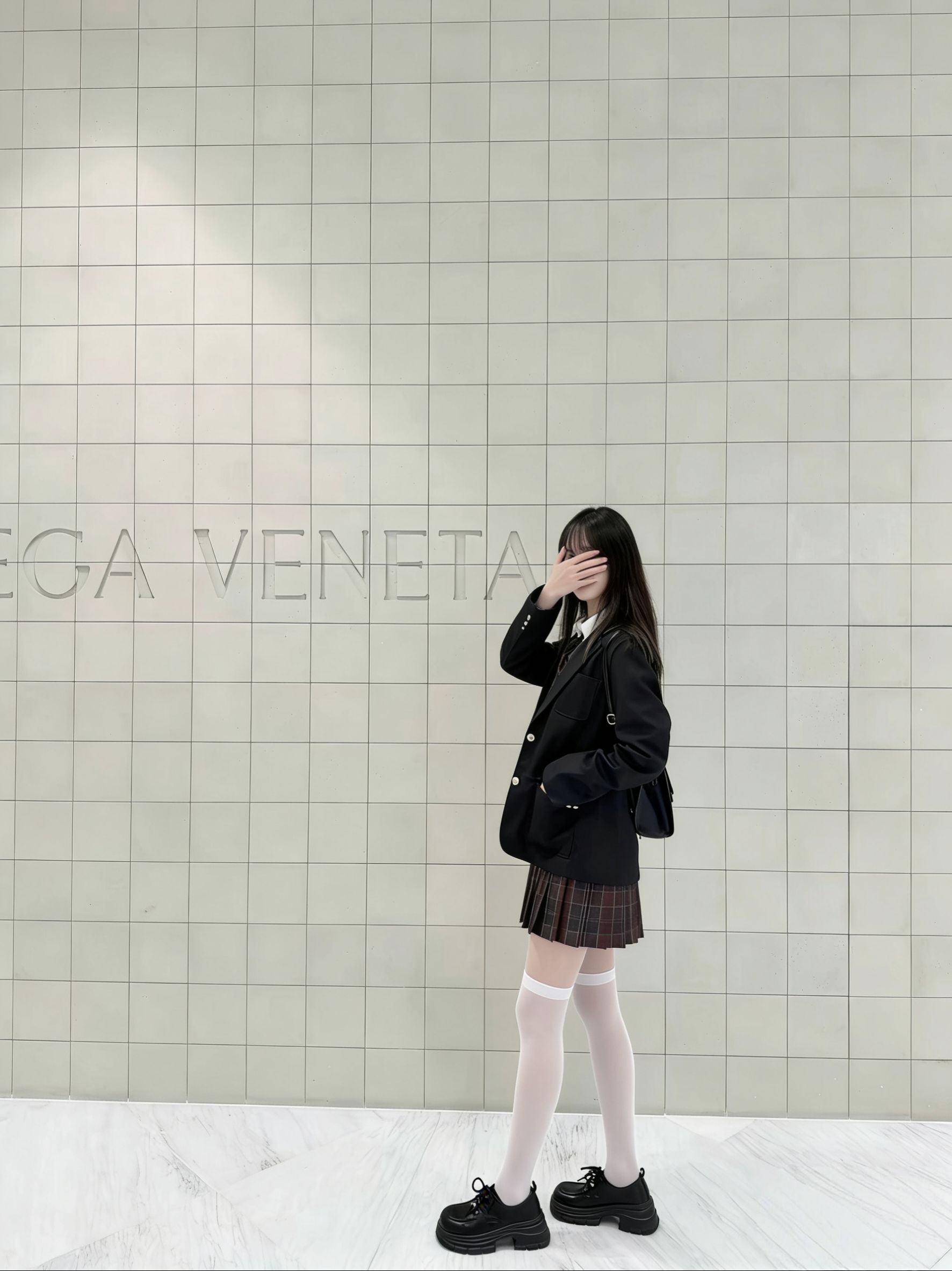 JK的酷感撞上白丝的纯欲,谁看了不迷糊! 中筒长度刚好露出最细的脚踝,视觉上直接瘦5斤⚡ 墙真的是绝佳背景,清冷又高级,照片质感直接拉满!