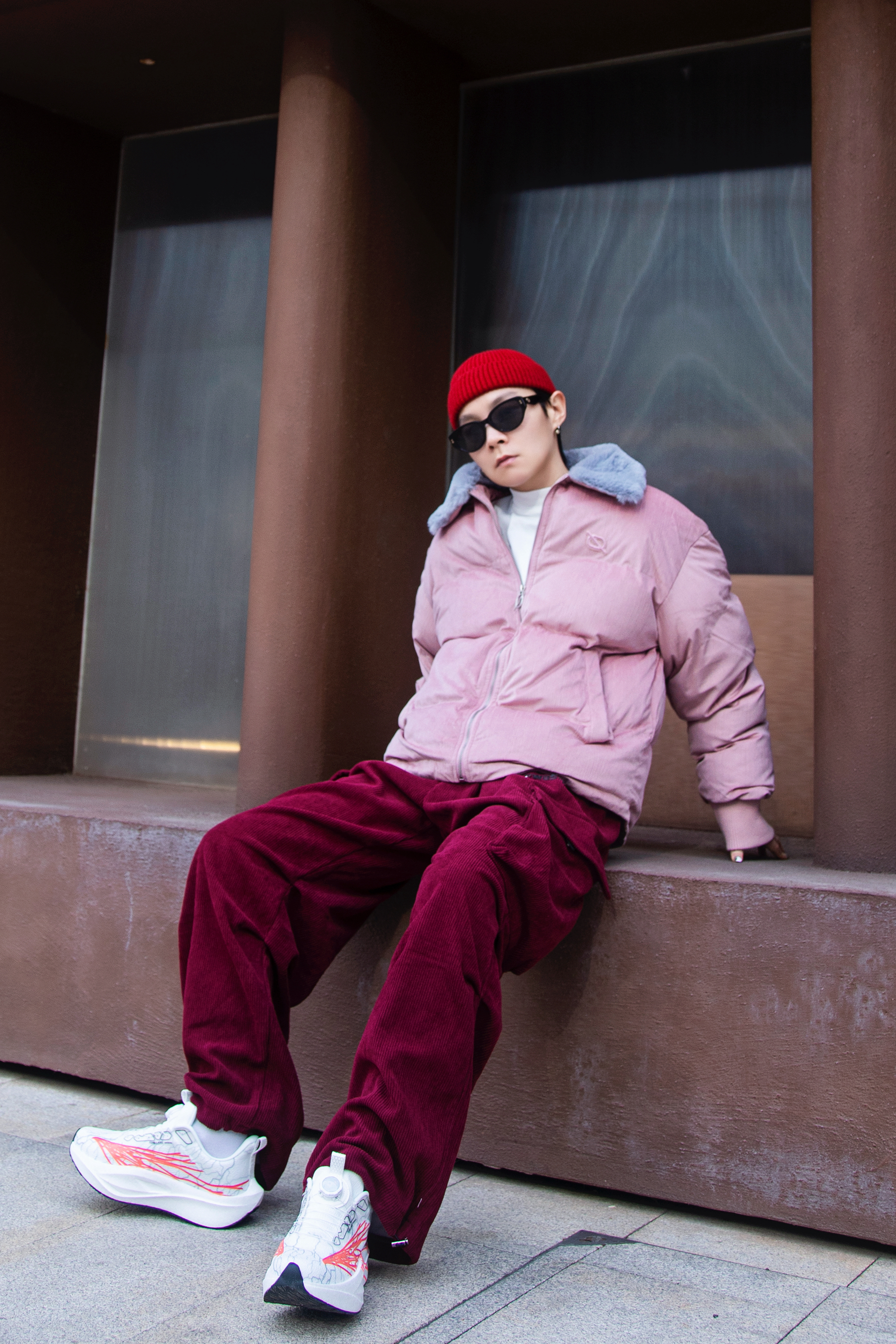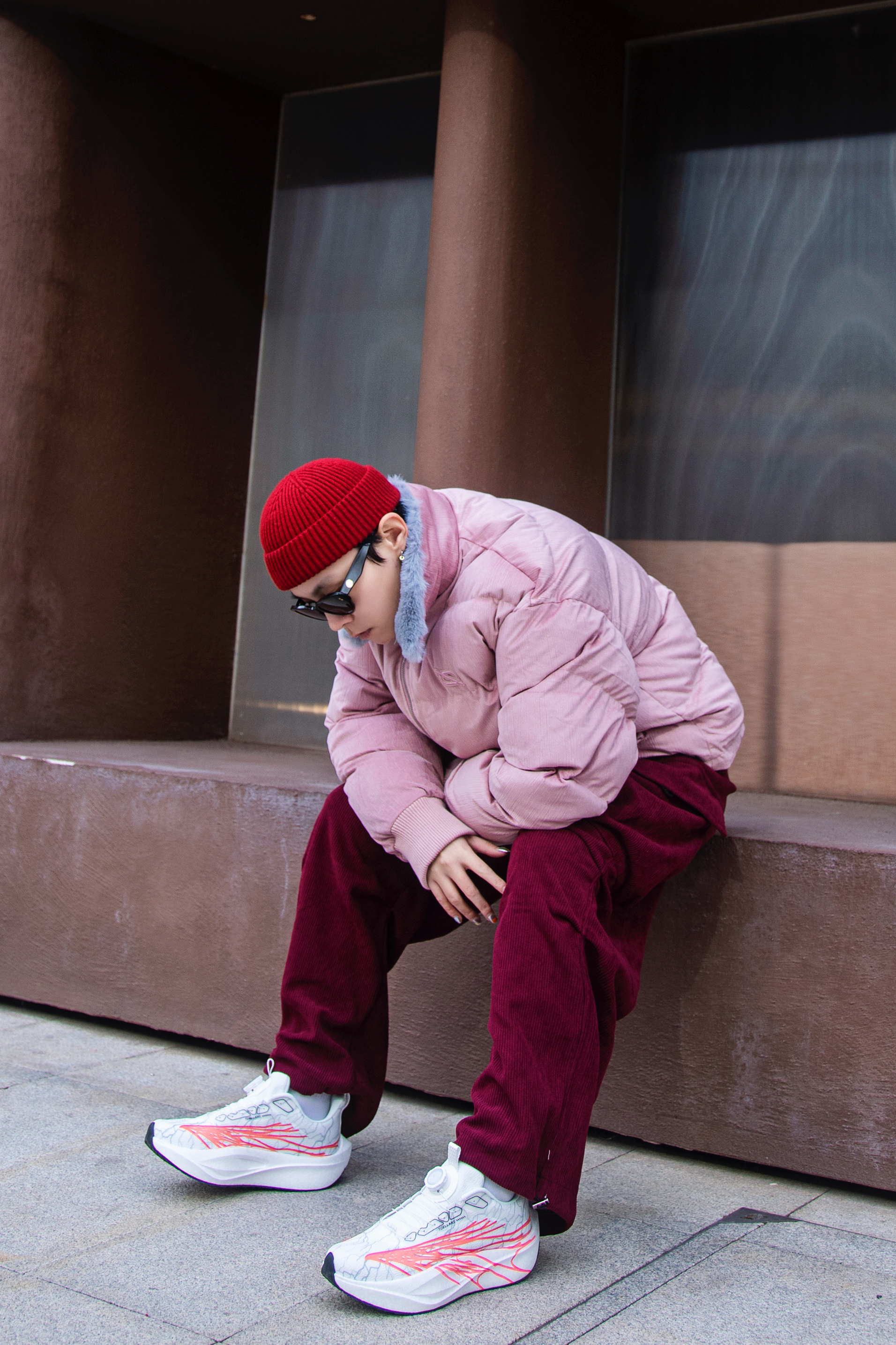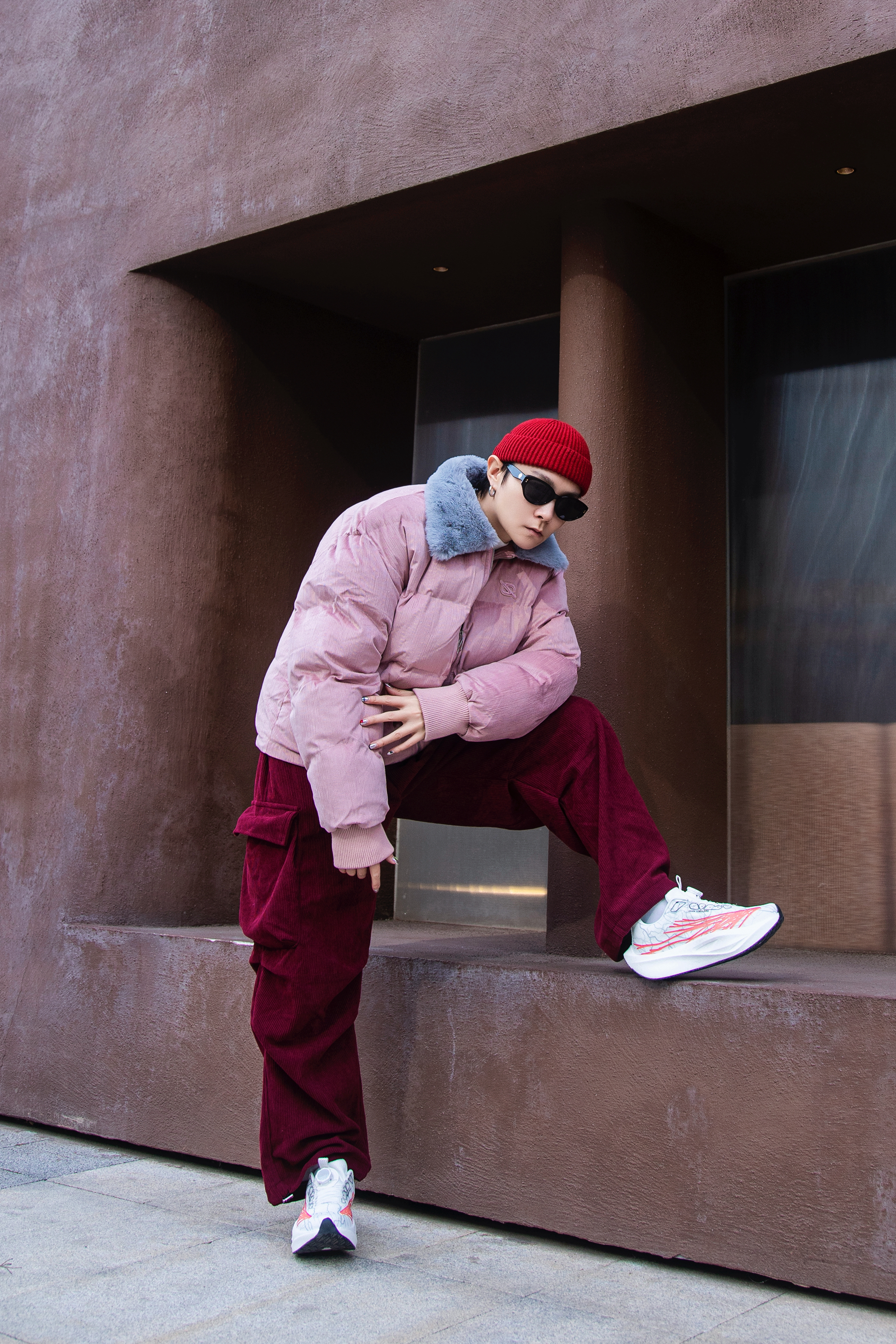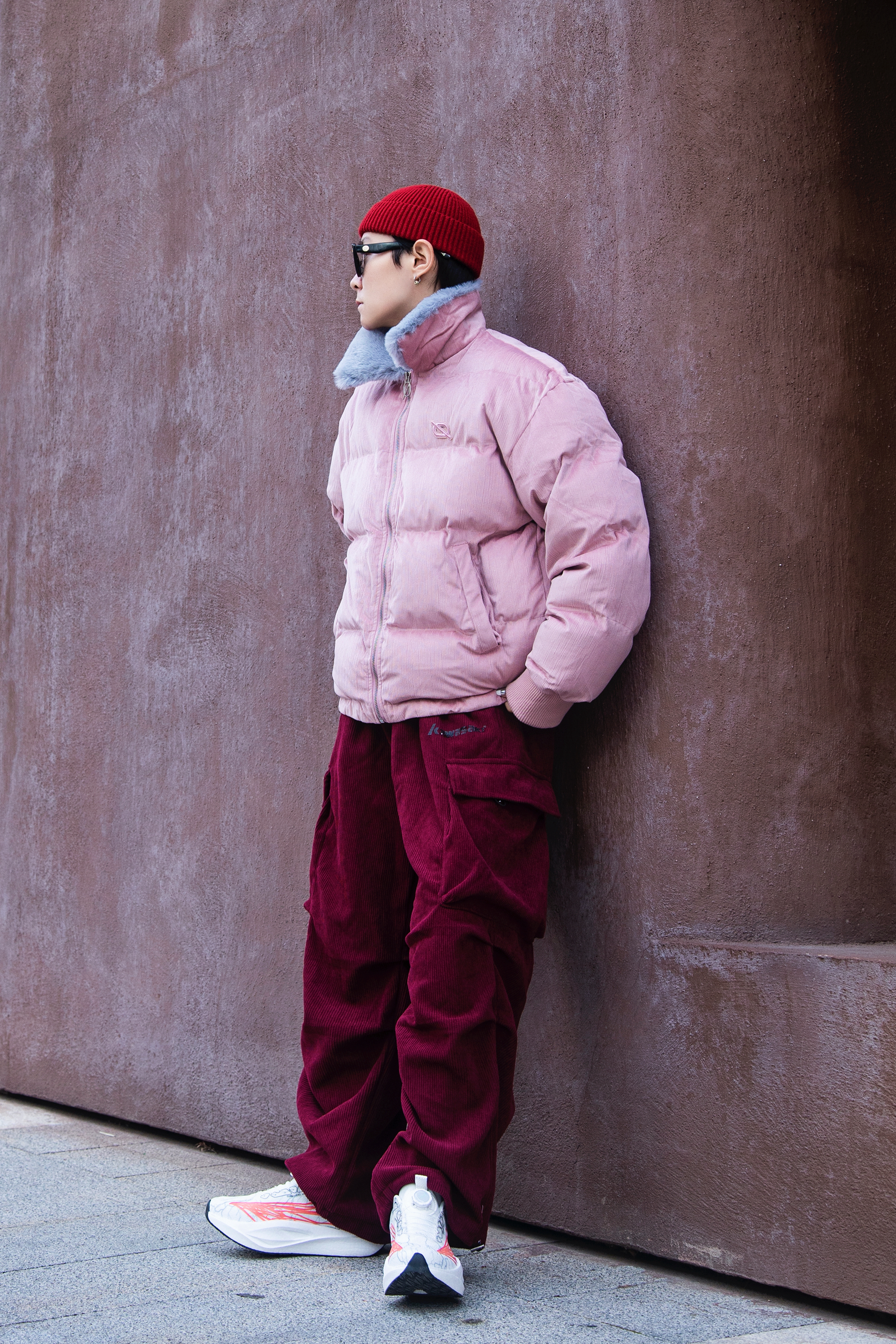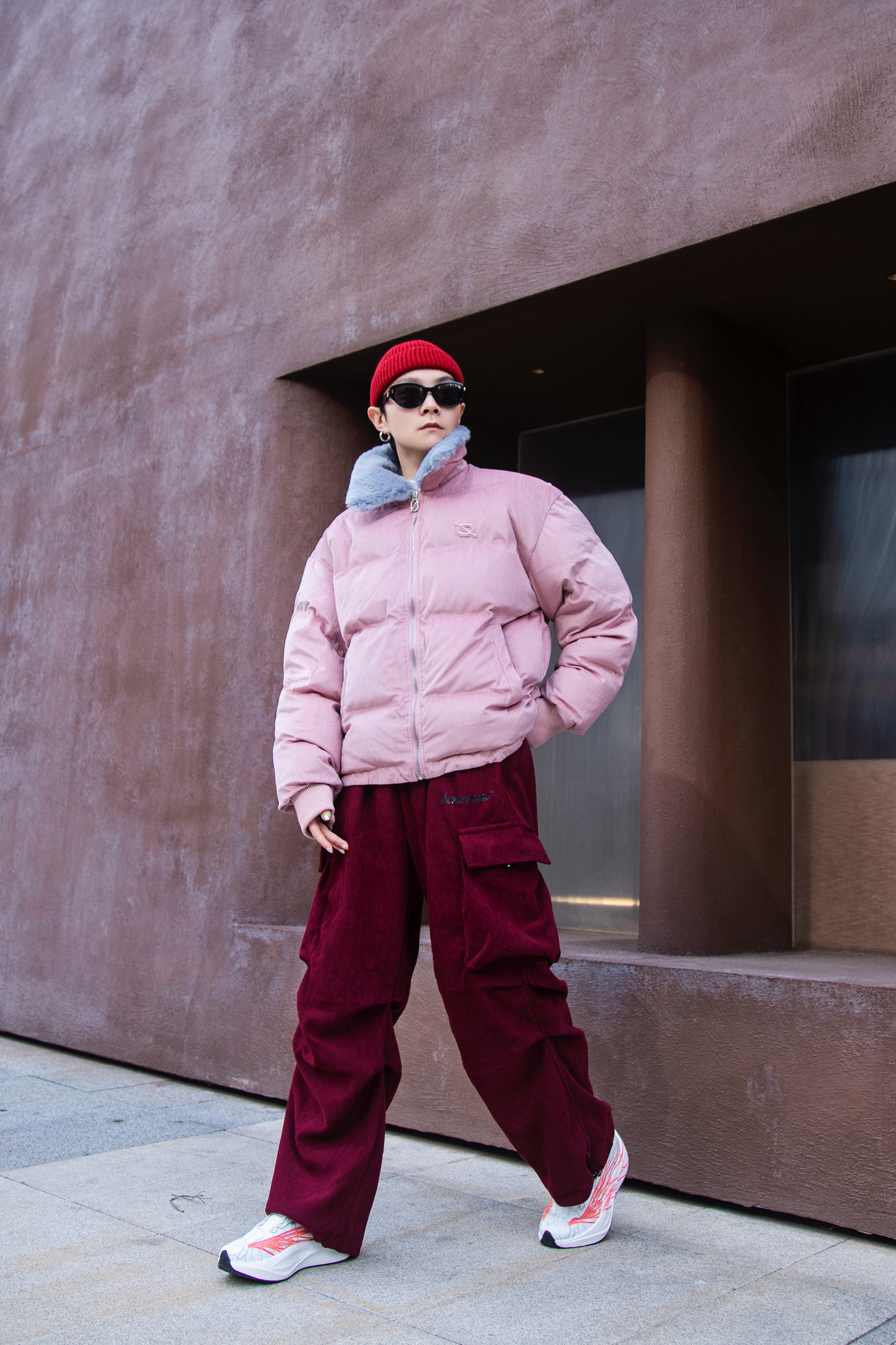 新年就要穿红色 分享一套冬日红色系穿搭 穿搭指南: 上身一件藕粉色棉服外套 短款设计和毛茸茸的立领 保暖又时髦 配一条酒红色伞兵裤 灯芯绒面料 冬天少不了 上脚tcellars跑步鞋 白色鞋身和红色涂鸦 运动又街头 软弹的鞋里今年太爱啦 戴一顶红色冷帽首尾呼应一下 新年开运 这样穿就对啦