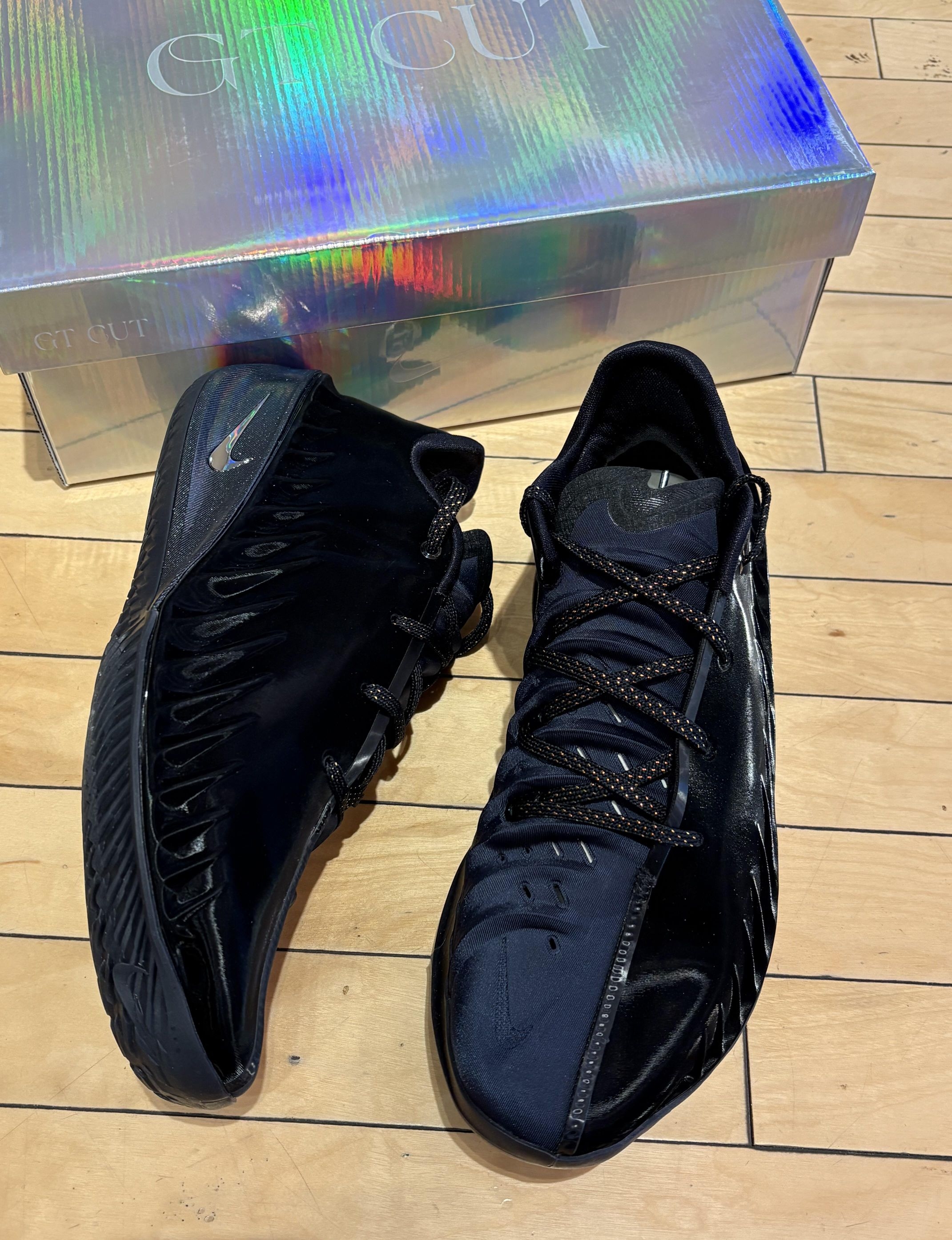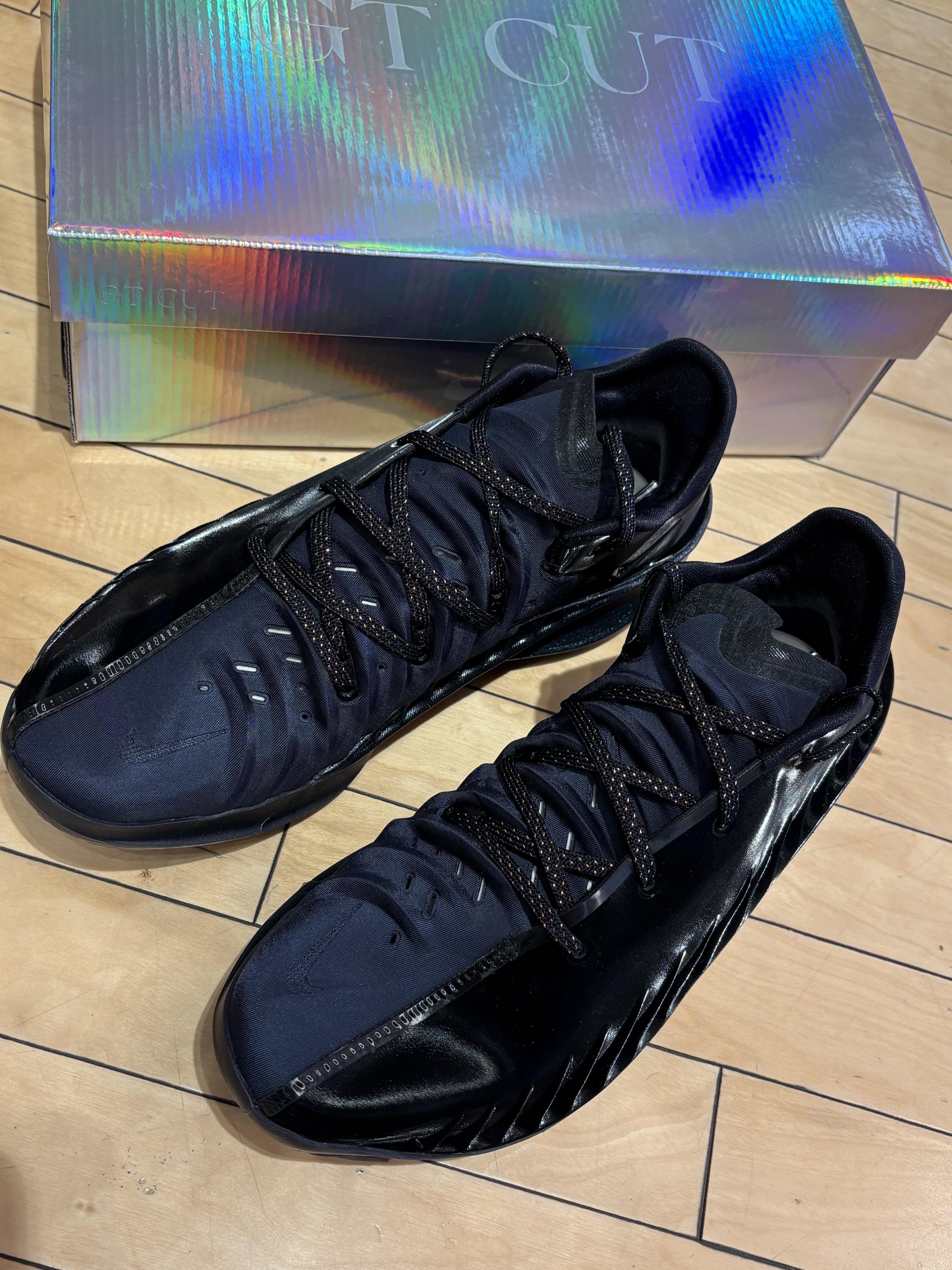 黑武士配色自带压迫感✨ 鞋面blingbling的金丝纹路在光下直接封神 碳板推进感像贴地飞行🚀 配上镭射鞋盒直接把仪式感拉满 📌 实战党冲就完了,这颜值+性能,球场最狠的仔就是你!