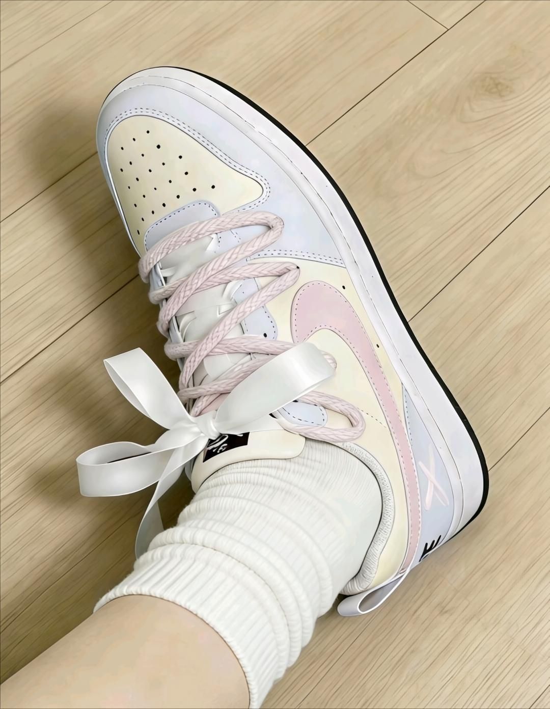 这双粉蓝配色的Nike Court鞋也太戳少女心了吧!奶fufu的粉蓝撞色,温柔又元气,上脚直接甜妹氛围感拉满~ 自带的小熊挂牌是点睛之笔,软萌又有童趣,让整双鞋更有辨识度!脚感也很在线,鞋底软硬适中,走路逛街、上学通勤都超舒服,久穿也不磨脚。 尺码很正,按平时码数入就ok~唯一要注意的是浅色鞋面容易脏,日常要勤打理哦! 颜值与舒适度双在线,甜妹闭眼冲就对了!💖