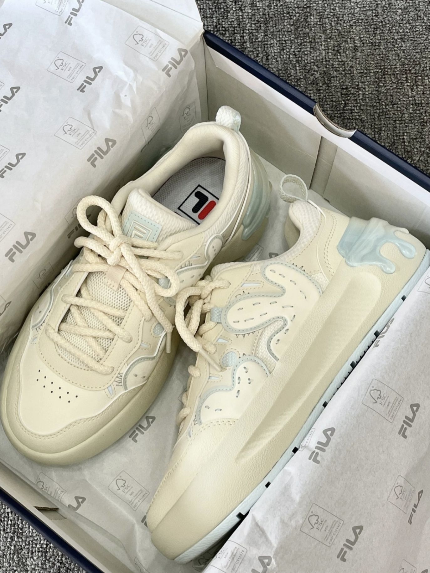 本篇笔记关联了FILA/斐乐 CACTI 仙掌鞋 板鞋 摩登低帮系带 女款/奶油白色/芦笋白等商品,为用户提供真实的使用体验和购买参考。