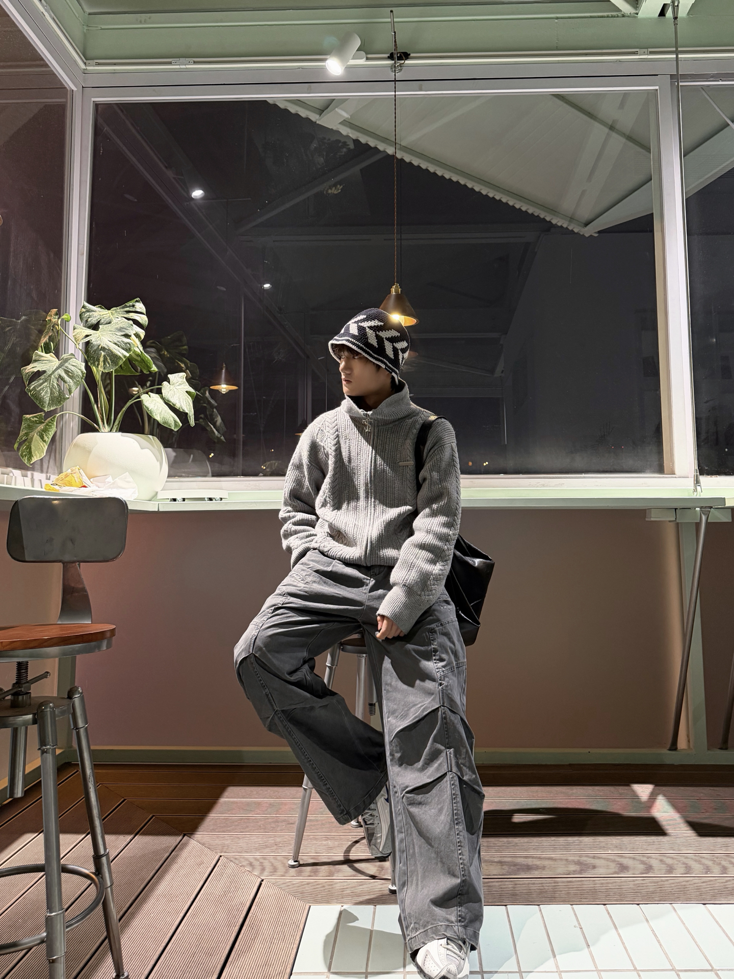 没什么计划的夜晚, 找个舒服的角落待着。 软乎乎的灰色毛衣贴身穿很暖和, 做旧工装裤宽松又藏肉, 褶皱设计自带复古感, 针织帽一戴,慵懒氛围感直接拿捏。 #BJHG谁穿谁好看 #BJHG的ootd #美美开局2026 #年度衣橱老友记 #拼凑我的日常碎片