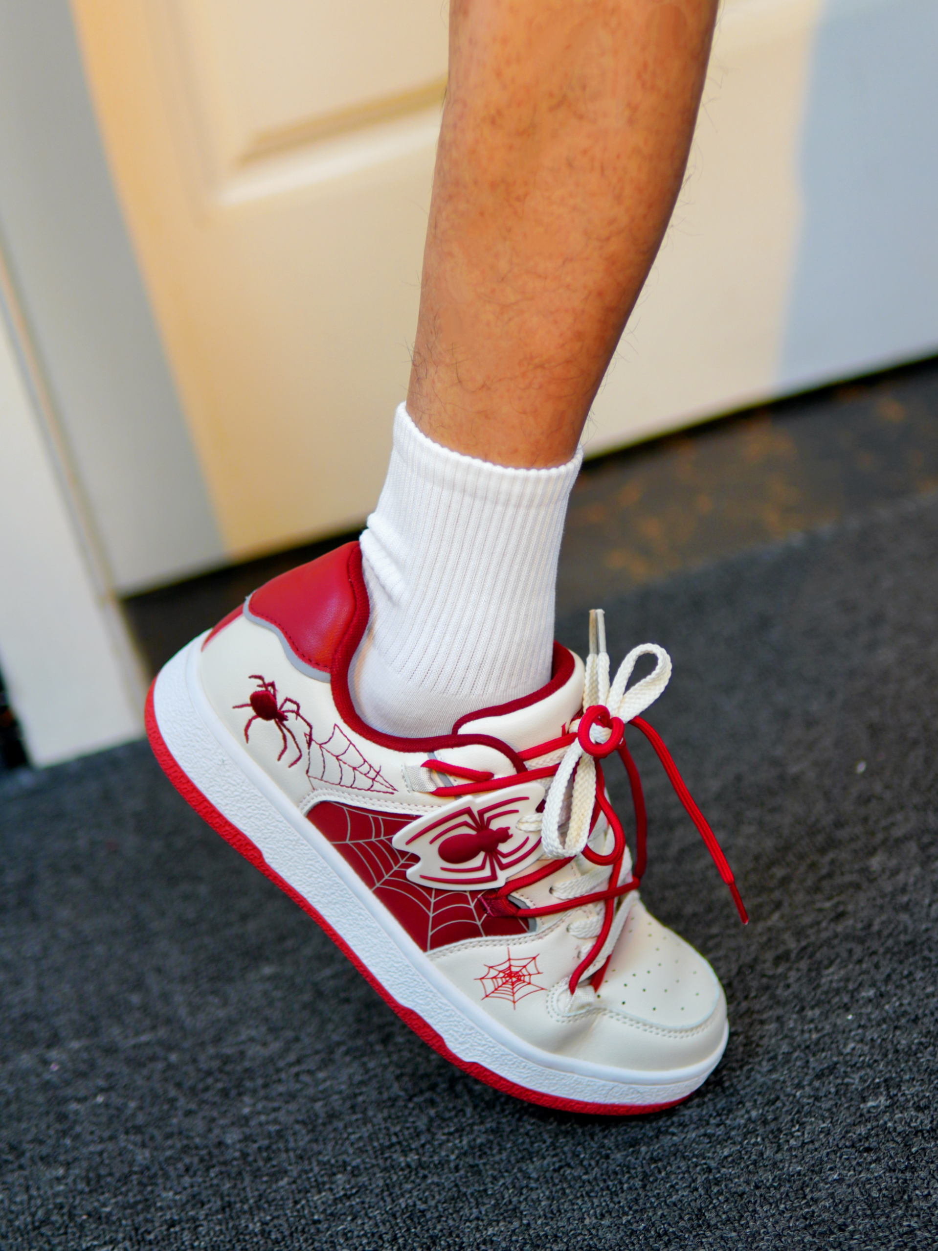 马年就要穿点红🔥分享我今日穿的是 LAZY BONS 家的板鞋👟!真的是一眼心动💓 颜值非常的时尚潮流~美式 蜘蛛元素、个性又吸睛、设计感十足🤩 脚感穿着舒适又保暖、日常通勤、出街、休闲都可以穿👍 我选的白红的配色、好看又百搭💯 搭配牛仔裤、休闲裤、出街拍照都很出片、休闲松弛感满满!⭐️ 脚底是防滑又耐磨~一年四季都可以穿✅