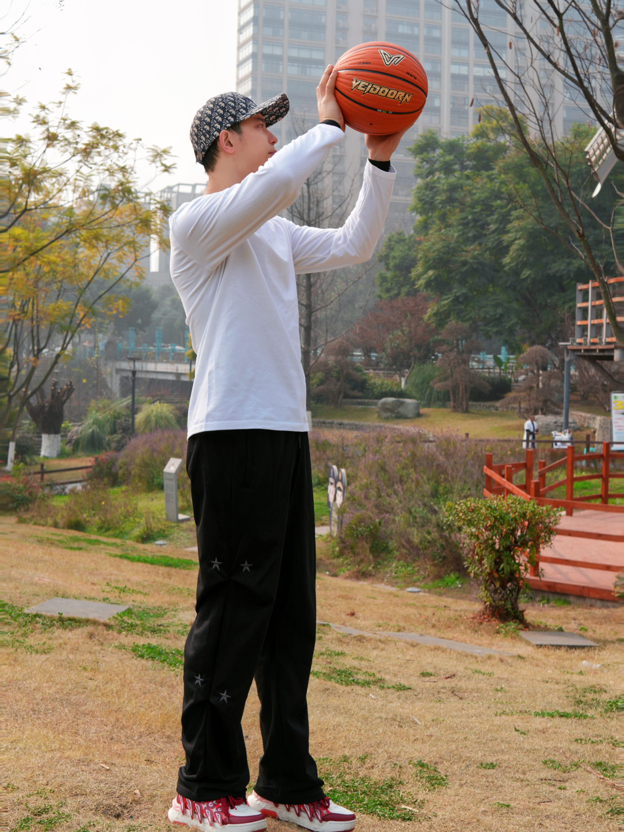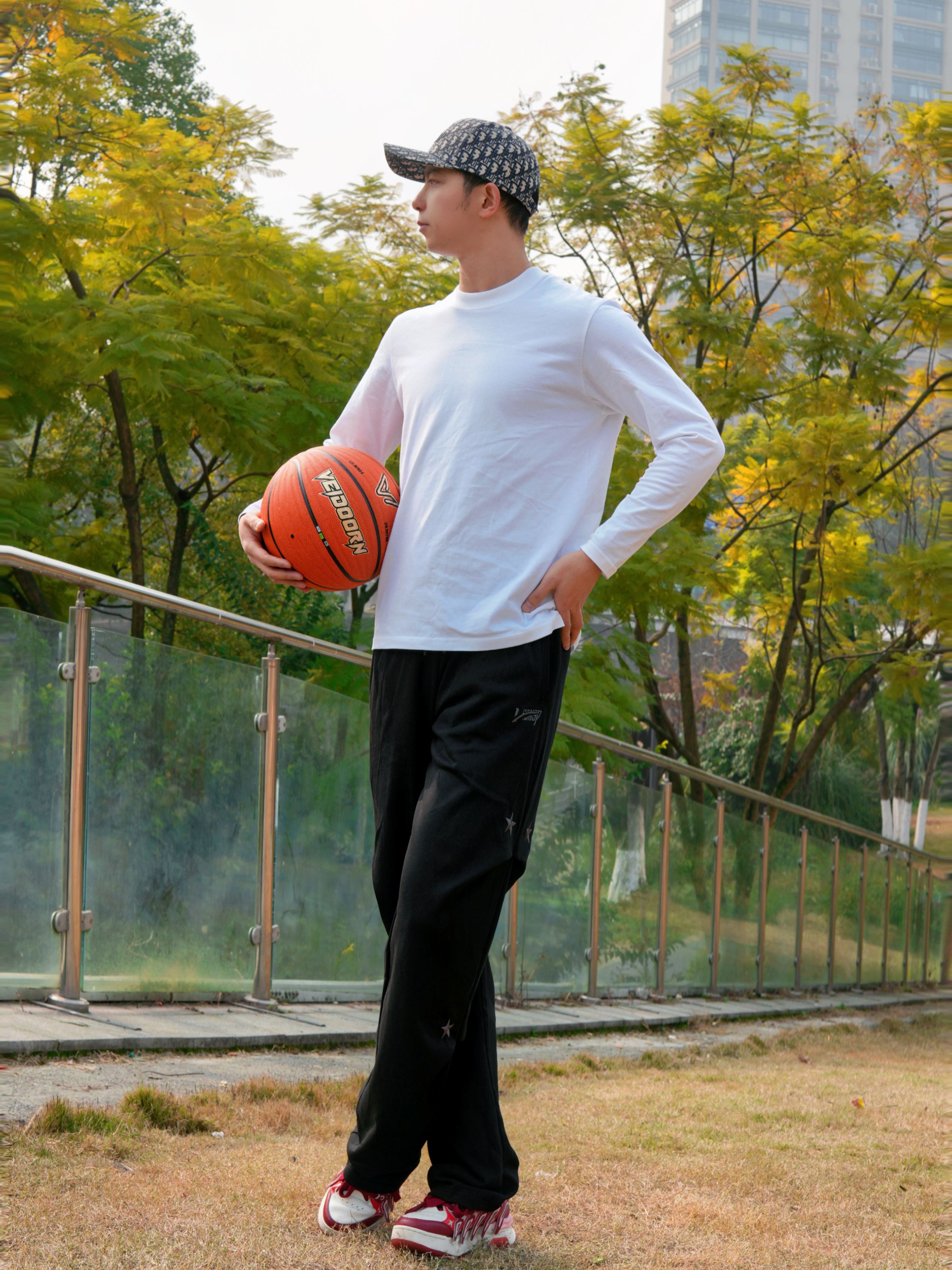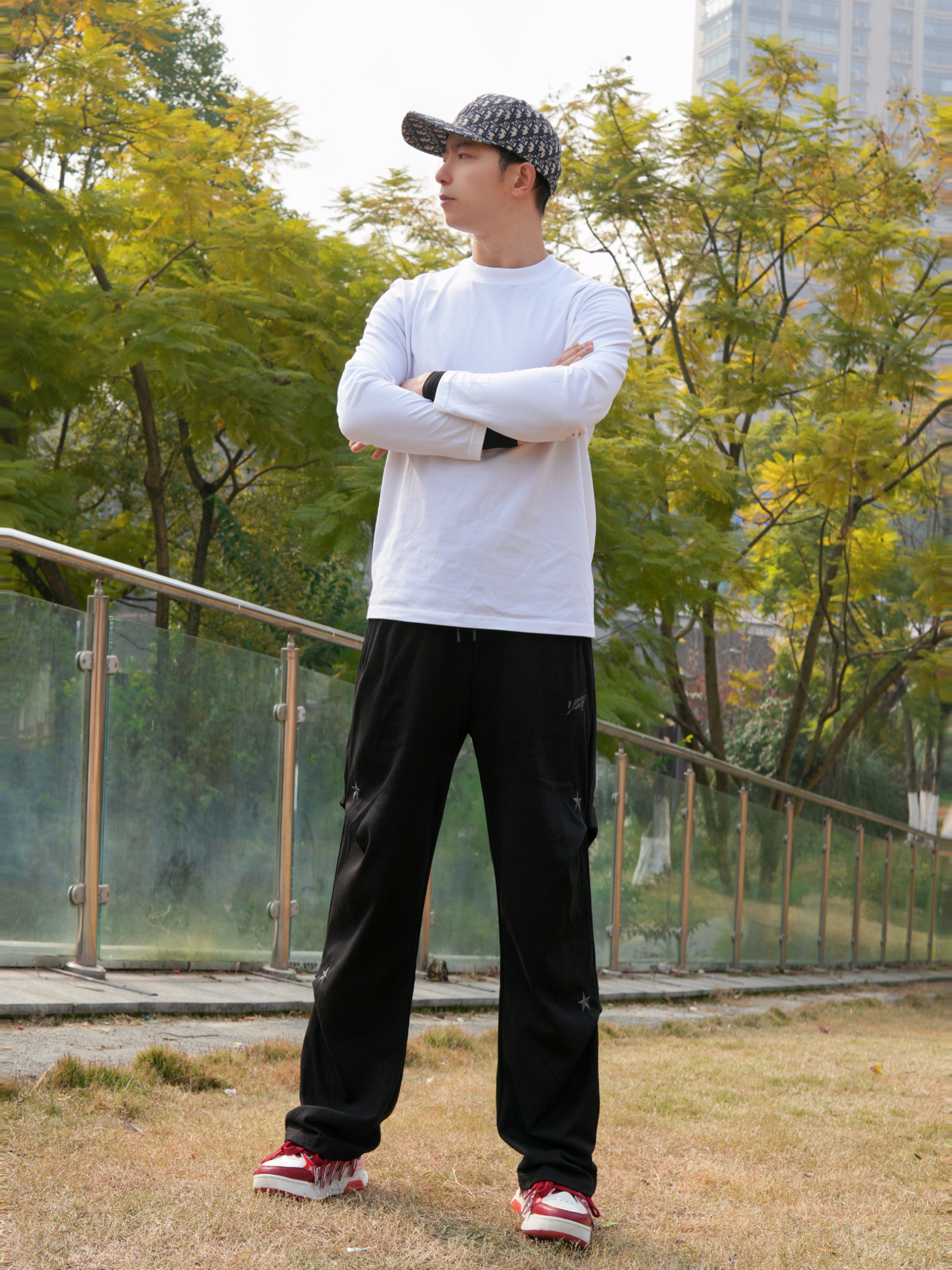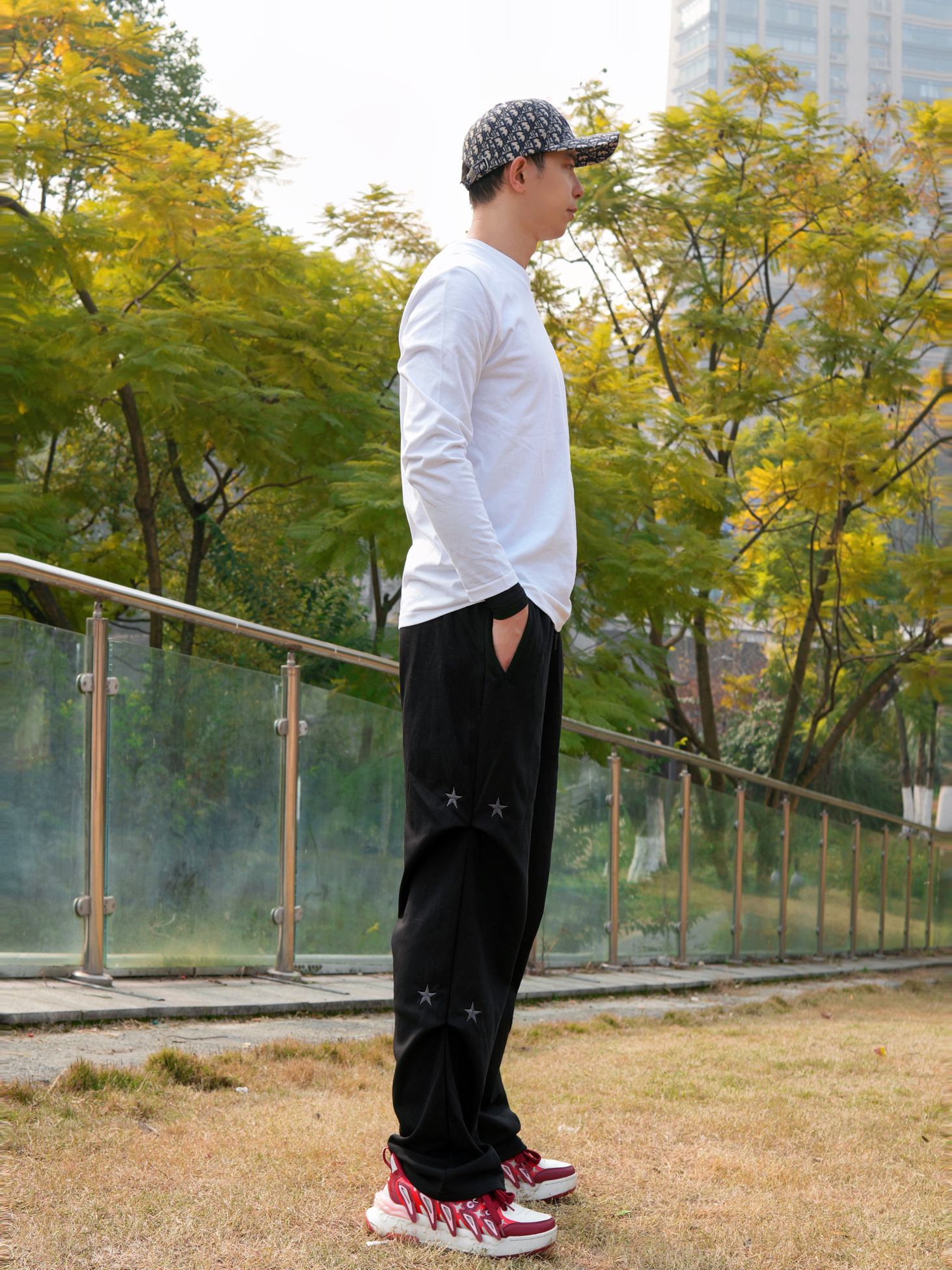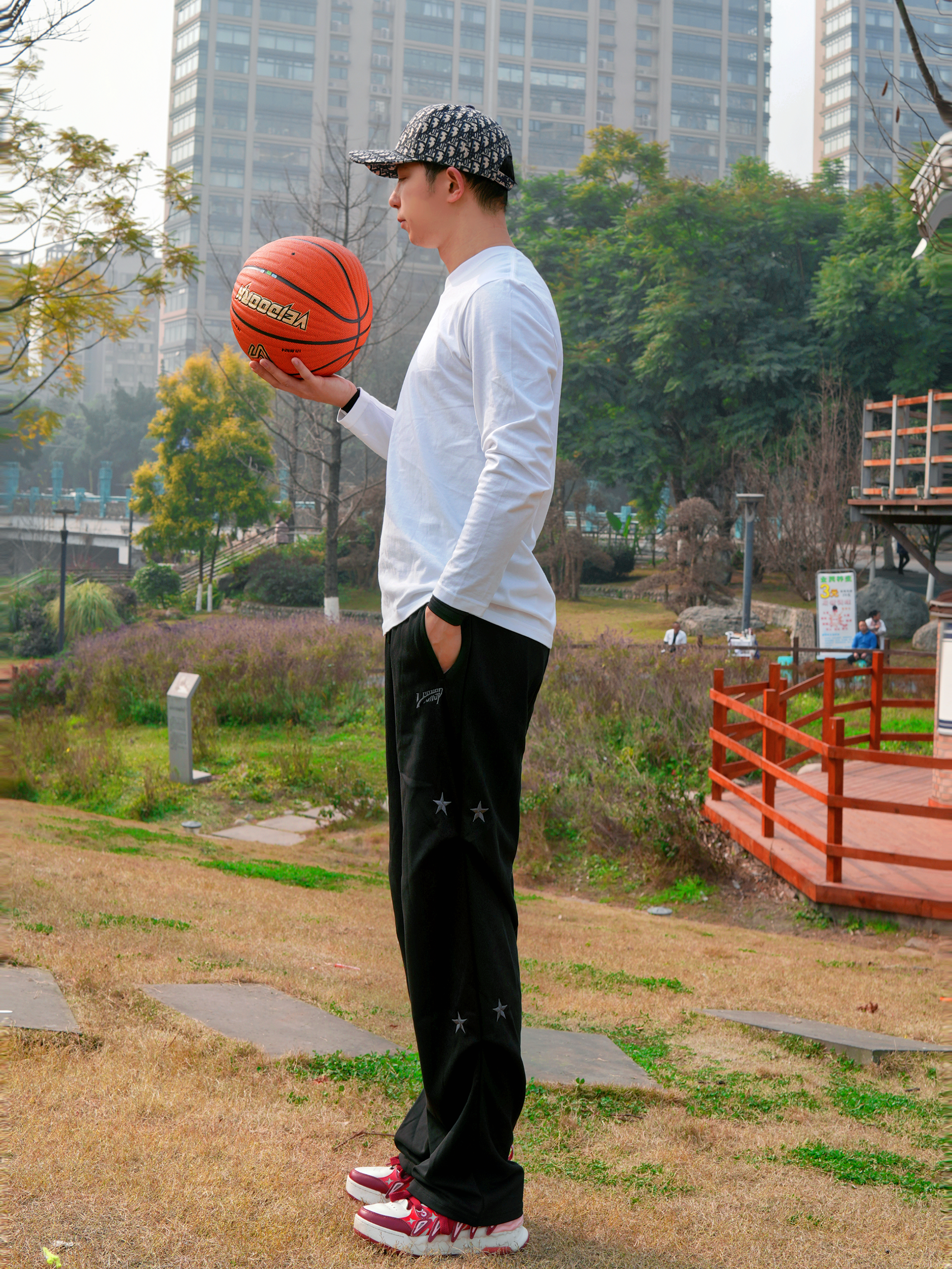 这是星轨刺绣美式卫裤!上身很好看🥰穿着舒适又暖和~🆒松弛感满满~ 款式简约又百搭!随意搭配运动服都好看🤩! 直筒宽松的版型~很修饰腿型🌟 穿着显高又显身材~特好穿❗️一点不会显得臃肿😍 弹力十足!运动、健身、打球的时候、完全都能放得开💯