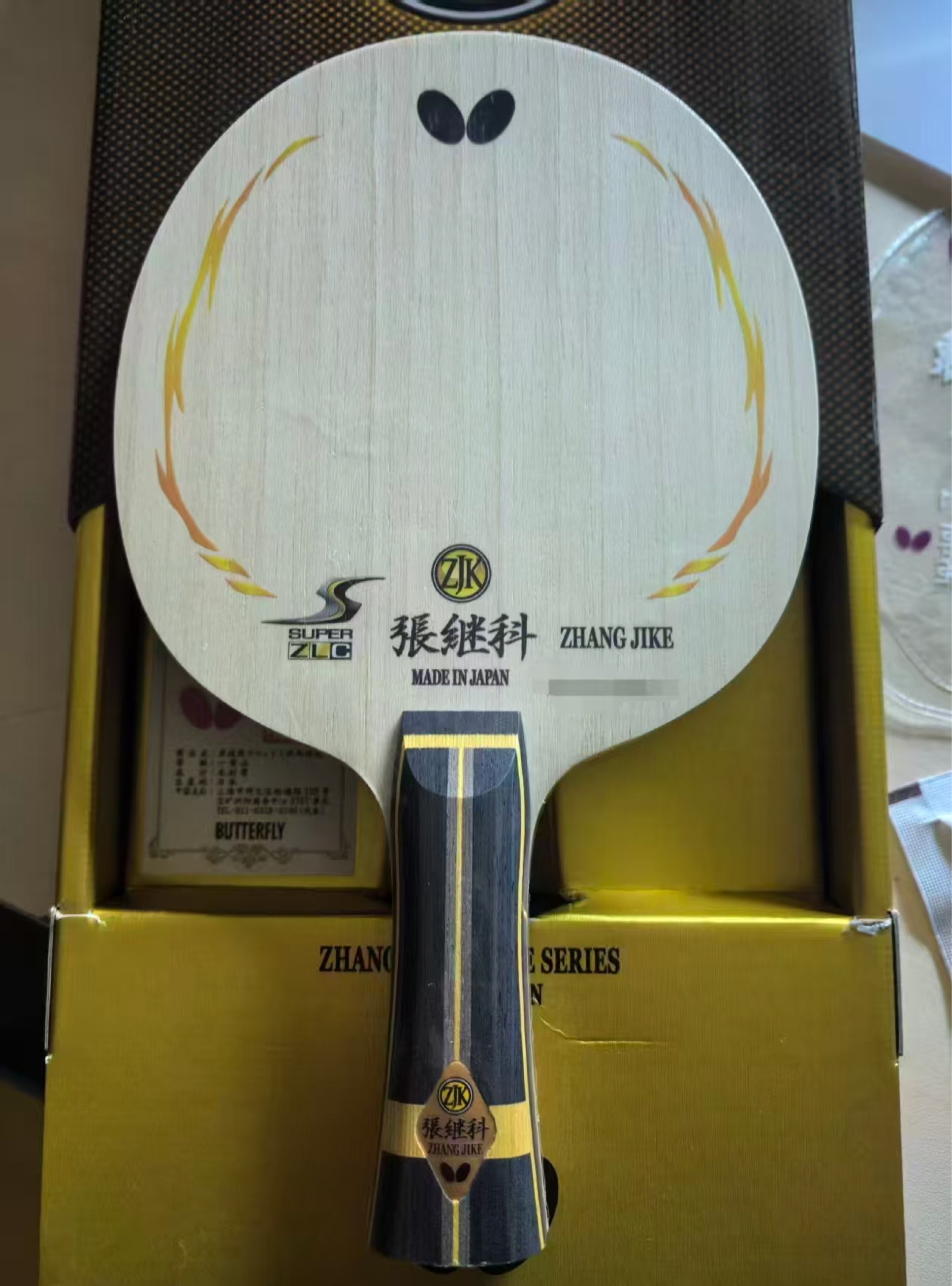 张继科SZLC是蝴蝶公司为张继科推出的超级ZL碳纤维高端进攻型底板,又称超级张继科,2013年上市,蝴蝶首款超级ZLC纤维底板,已停产 核心参数 • 结构:5木+2超级ZL碳纤维(SZLC),Koto+SZLC+阿尤斯+桐木大芯。 • 厚度/重量:约5.6mm,单底板约90g(以实物为准)。 • 反弹/振动特性:12.3/11.1,速度快,打球感中等。 核心性能 • 优势:弹性爆发,中近台出球速度...
