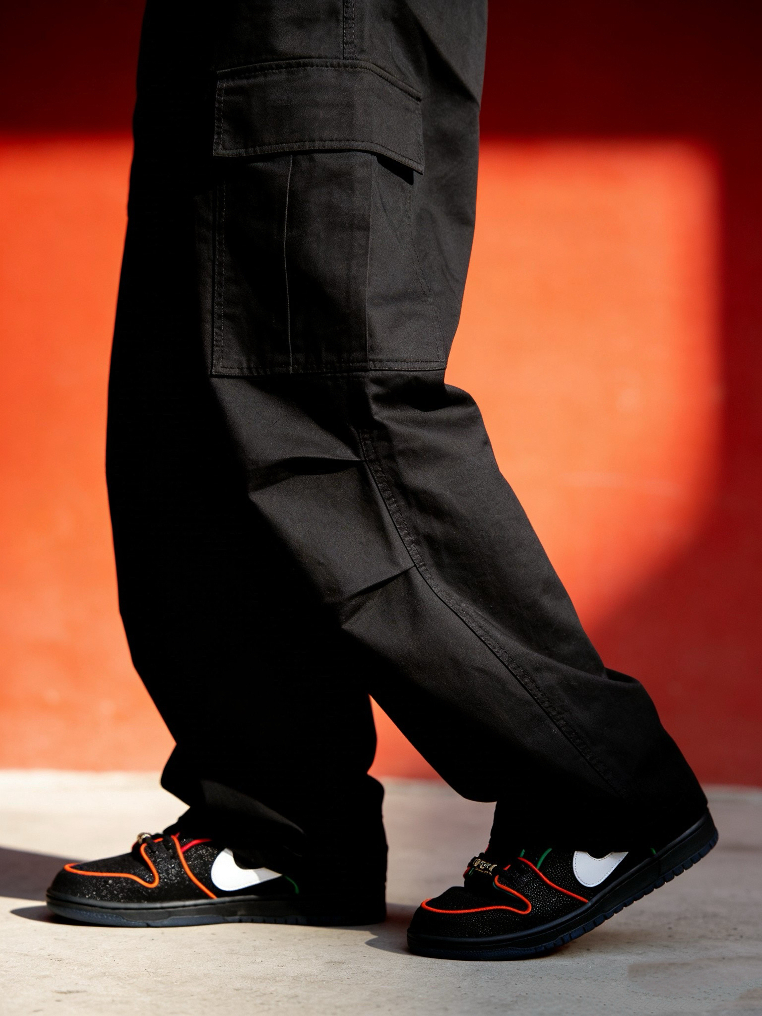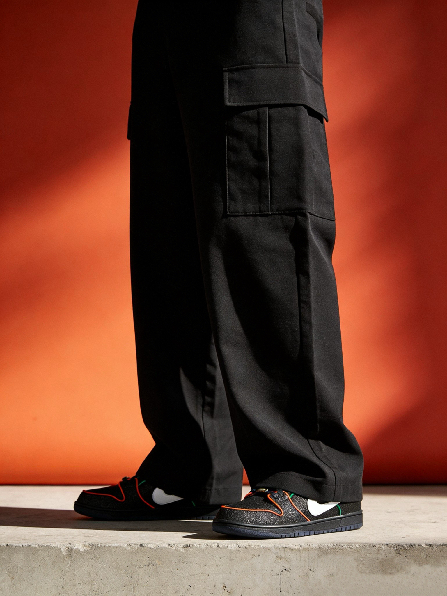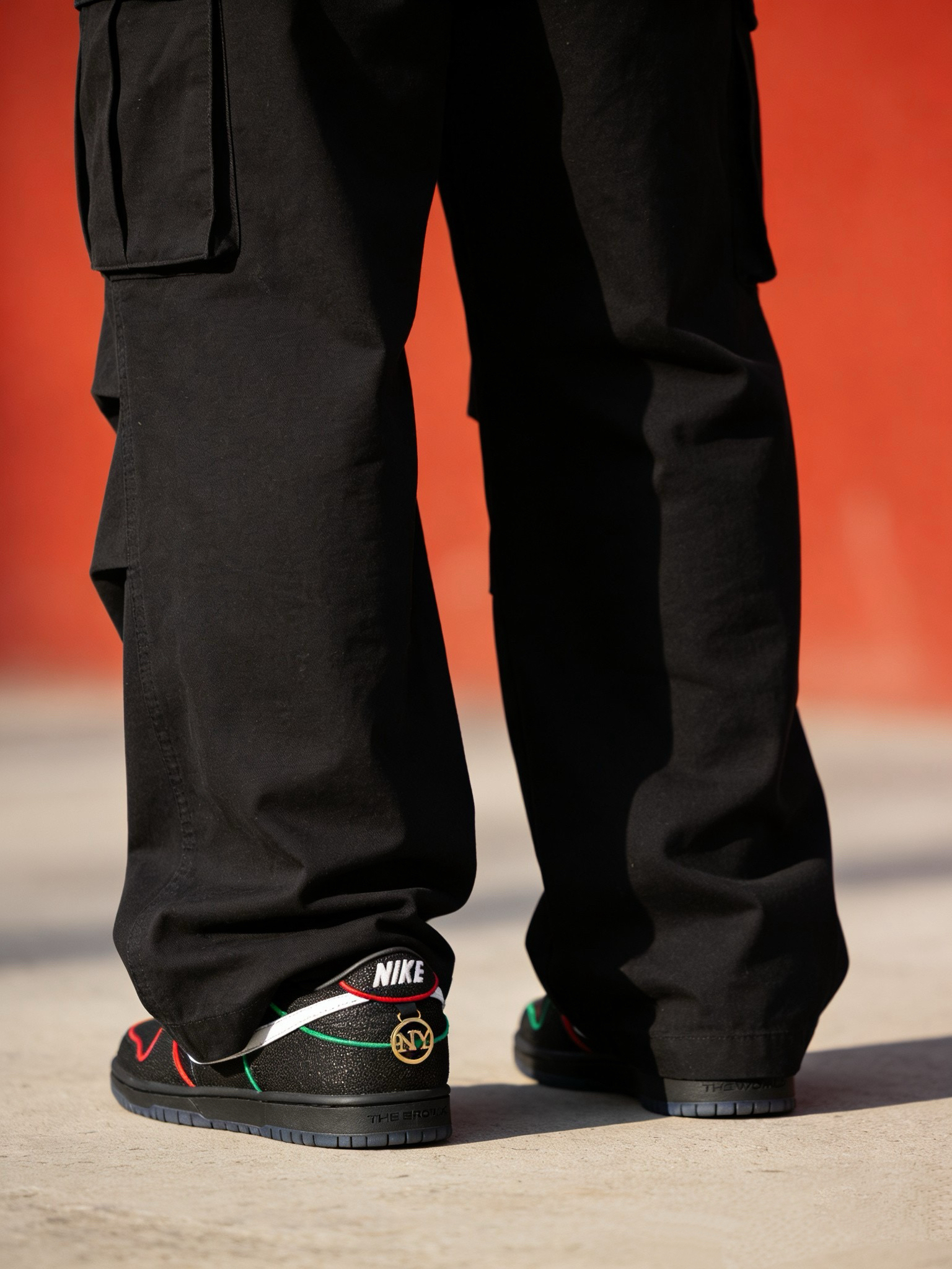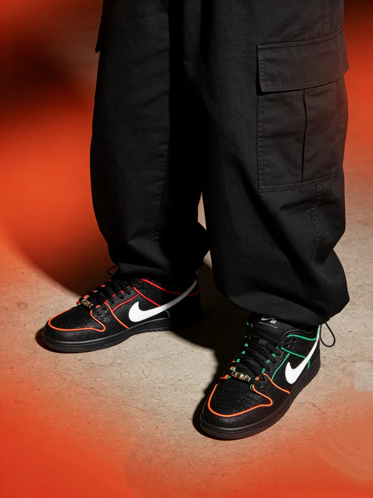 全黑珍珠鱼纹皮革打底,红、绿、橙三色缝线像纽约地铁线路一样在鞋身穿梭,白色Swoosh做视觉中和,低调里藏着满满的街头能量。 前掌内置Zoom Air气垫,提供专业滑板所需的缓震回弹;耐磨橡胶外底,抓地力出色;鞋身采用加固设计,兼顾支撑性与耐用性。