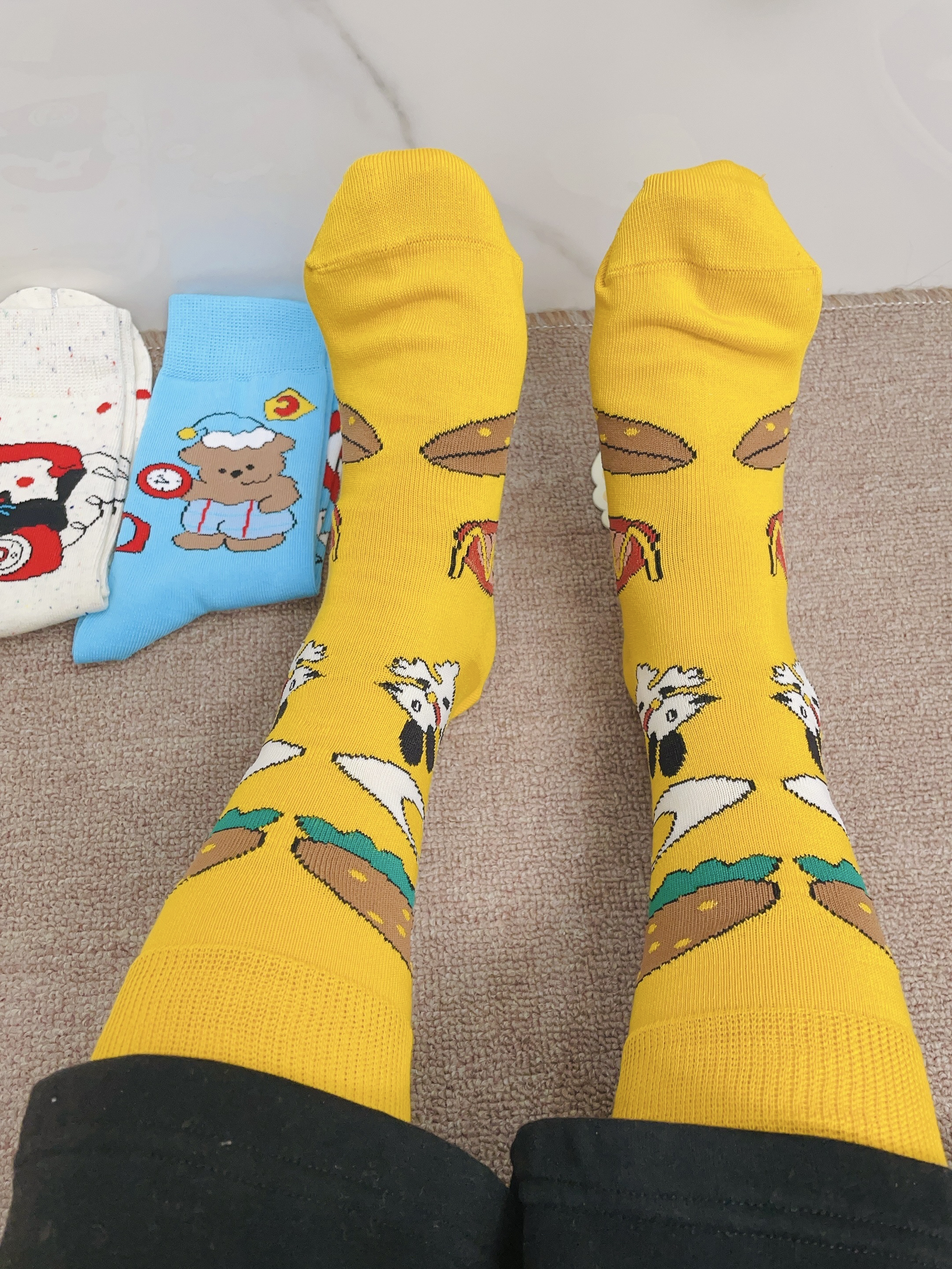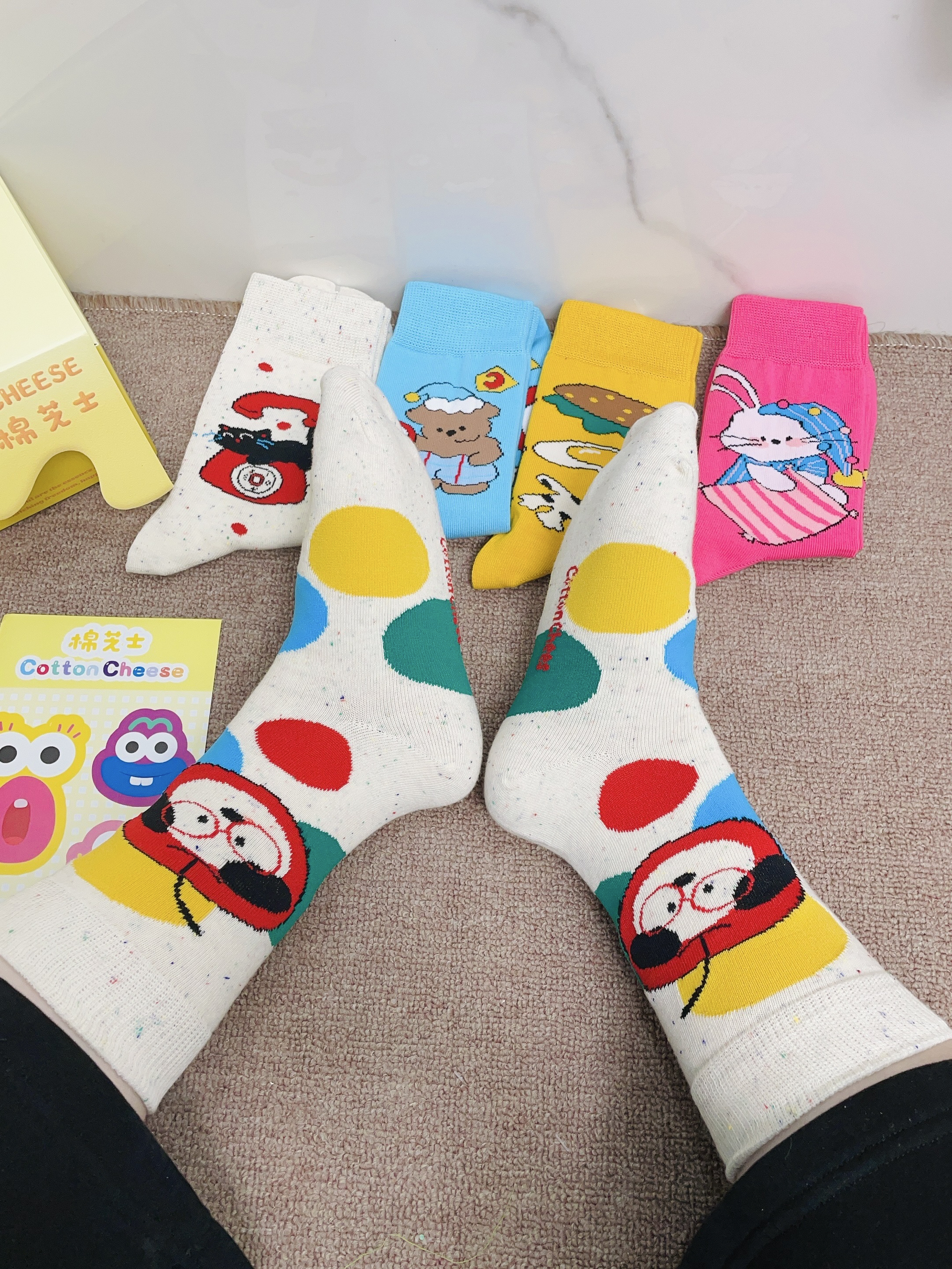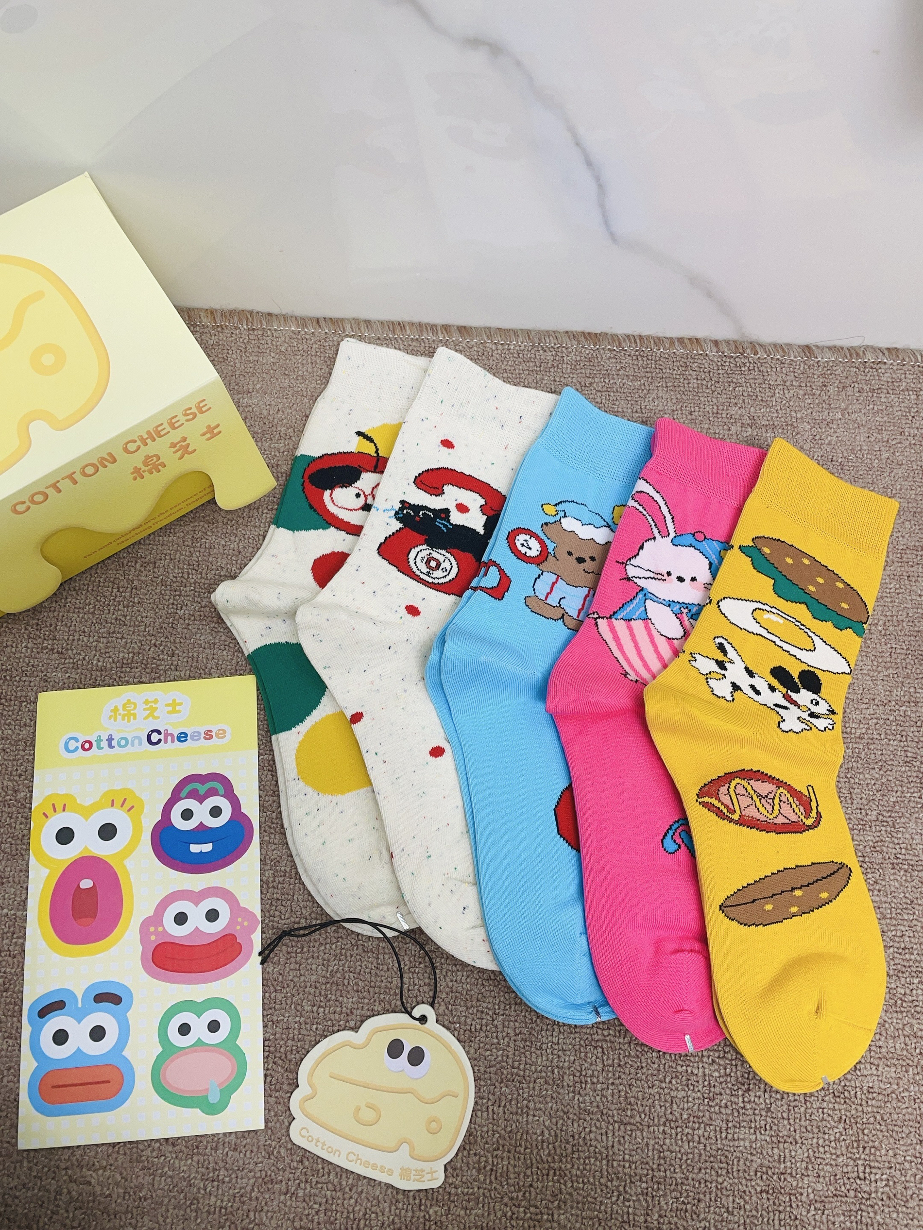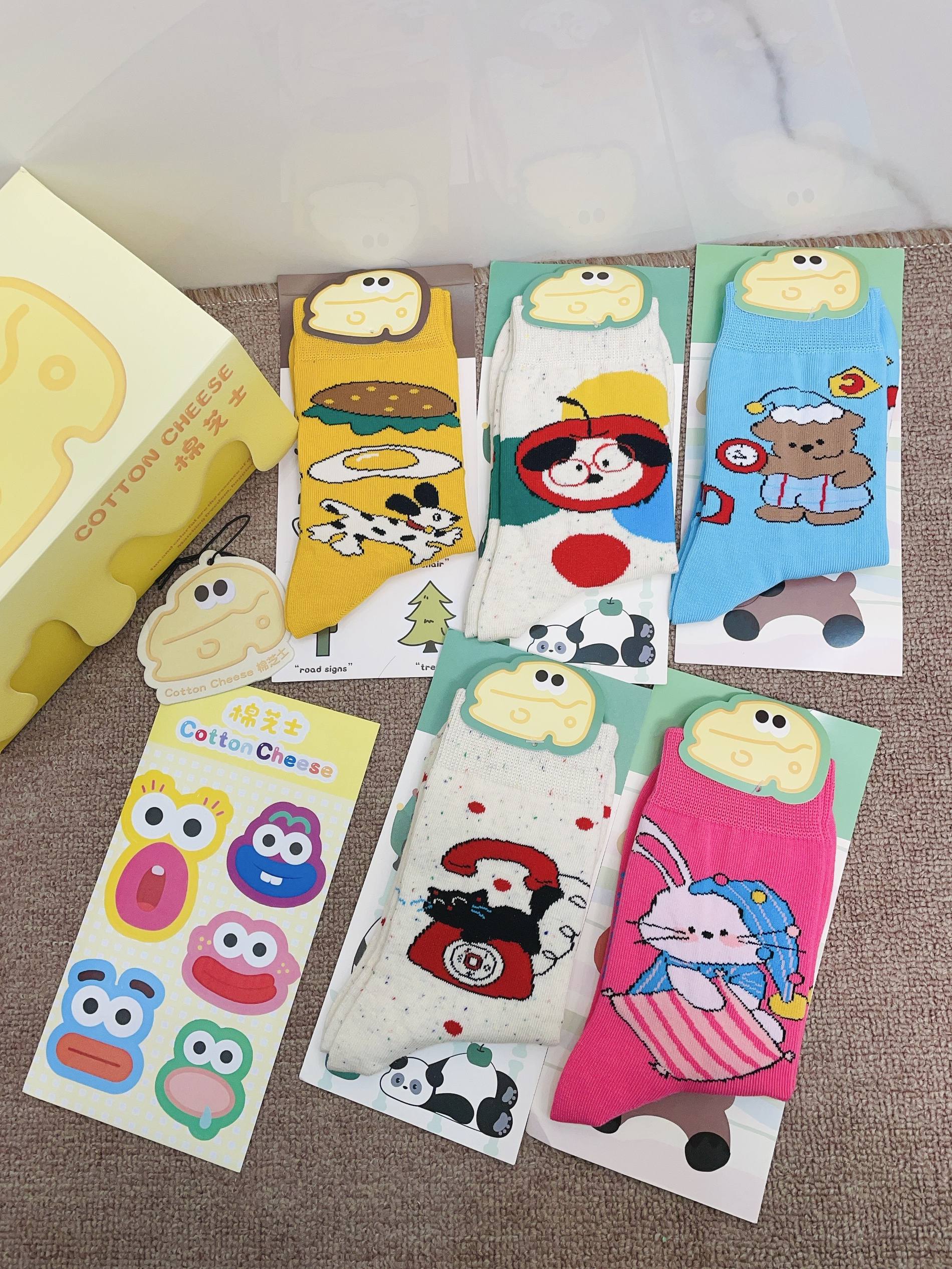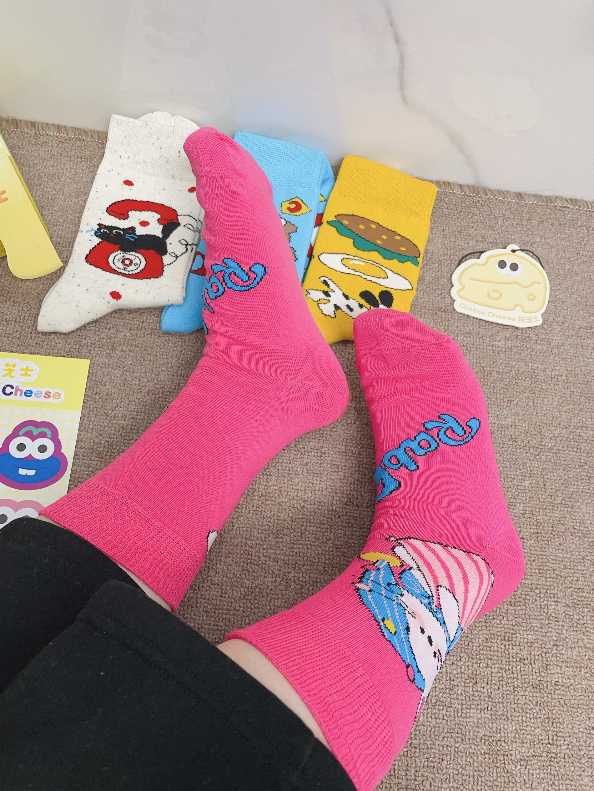 嘻嘻嘻月底要回老家过新年咯 我给自己安排了新的袜子穿 棉芝士这款配色好好看啊 每一双图案都可可爱爱的 我摸着面料柔软hin舒适 细节做的可以没有多余线头 我上脚穿了感觉蛮舒服的 穿着它随便搭鞋子都可不挑 礼盒包装精致 春节情人节送礼都可
