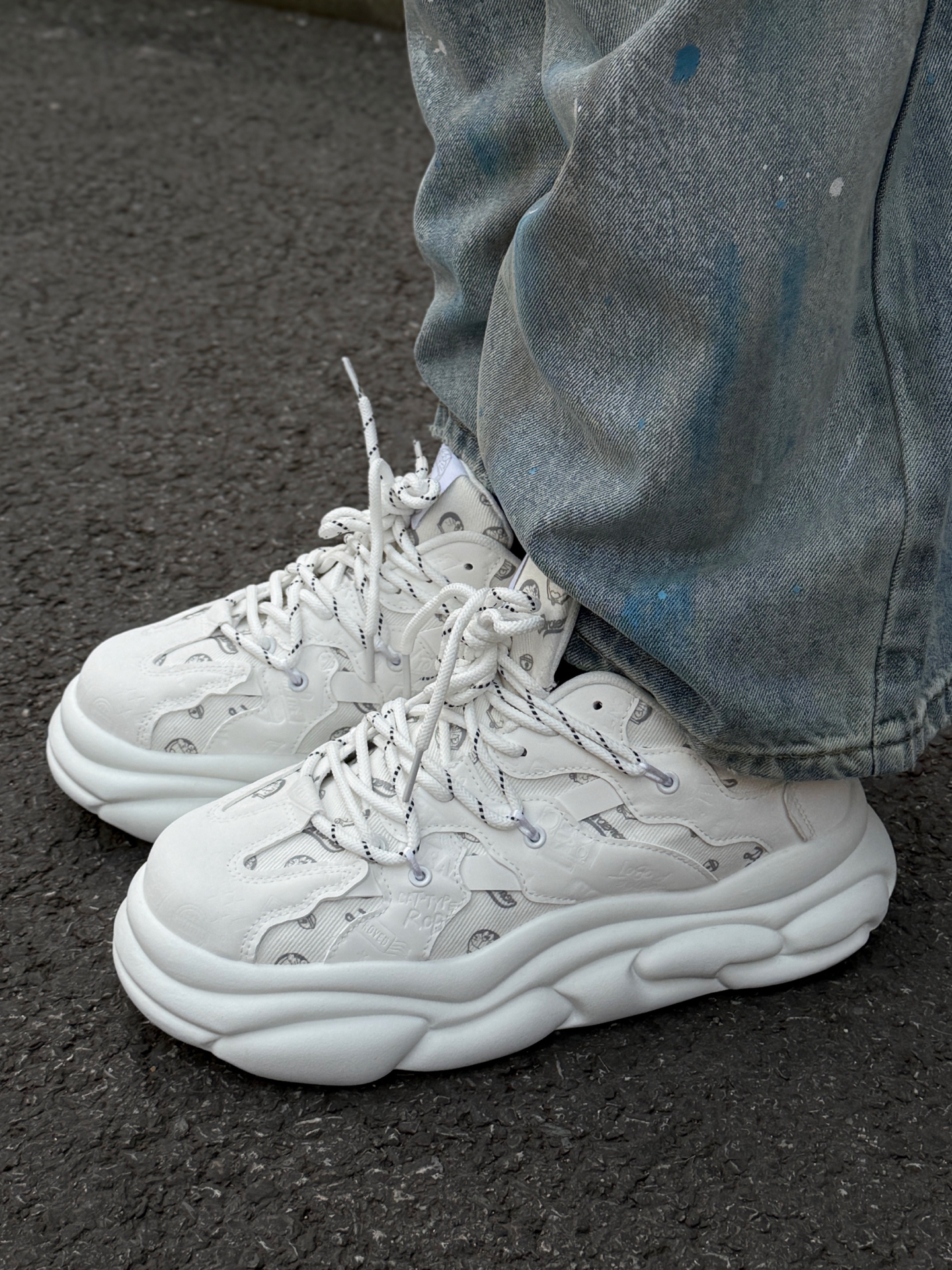 米白高领卫衣自带温润慵懒的氛围感,宽松廓形藏着随性松弛;搭配泼墨做旧牛仔裤时,磨白纹理与颜料痕迹为整体注入复古街头气质,再踩上哆啦A梦解构老爹鞋,云朵大底与压纹设计和整套穿搭的松弛调性完美呼应,让造型既有日常休闲的舒适感,又多了份潮鞋的个性腔调。 米白与做旧蓝的碰撞,轻松拿捏慵懒又有型的街头氛围。 #doraemon哆啦a梦 #冬日城市漫步OOTD #美美开局2026 #送ta新年第一份礼...