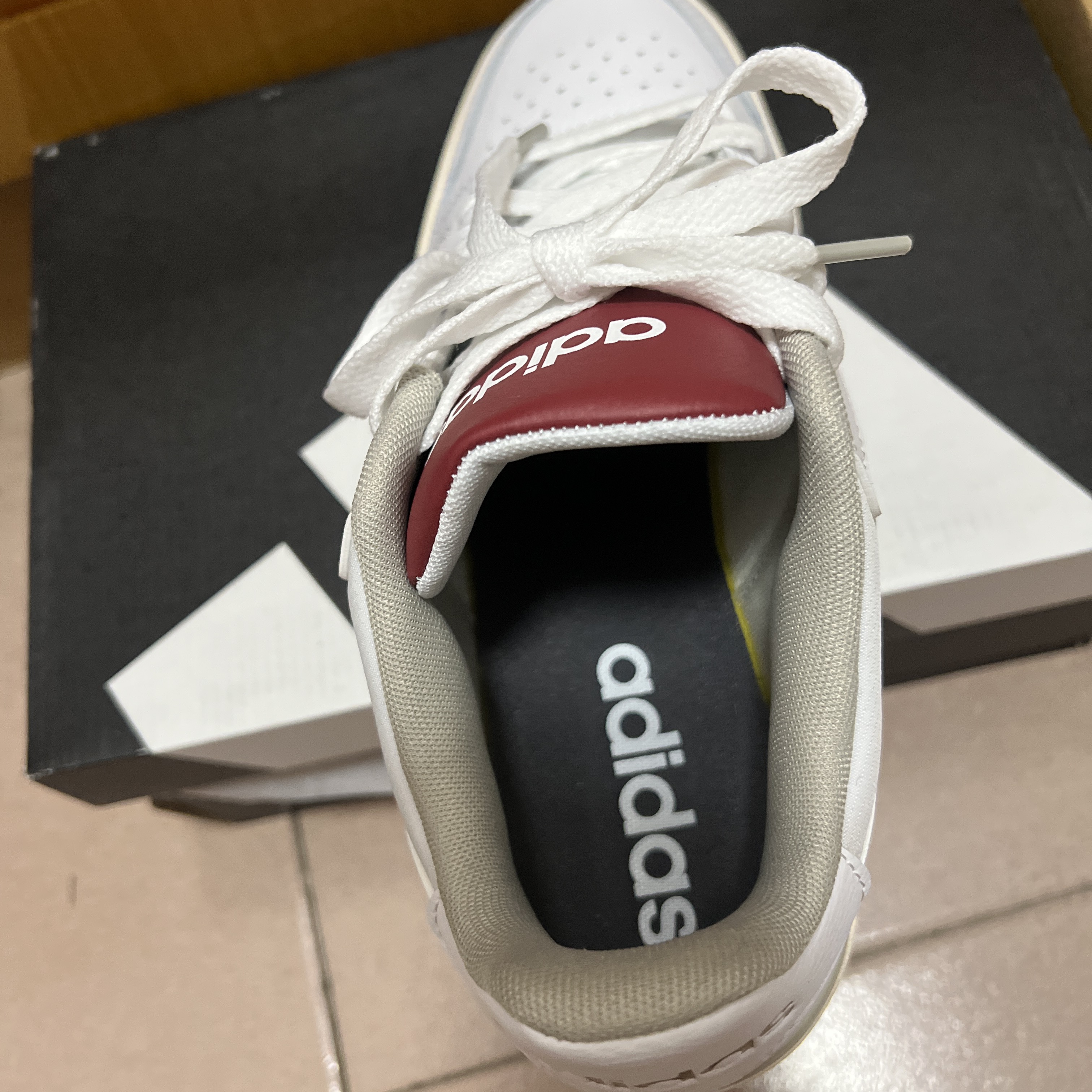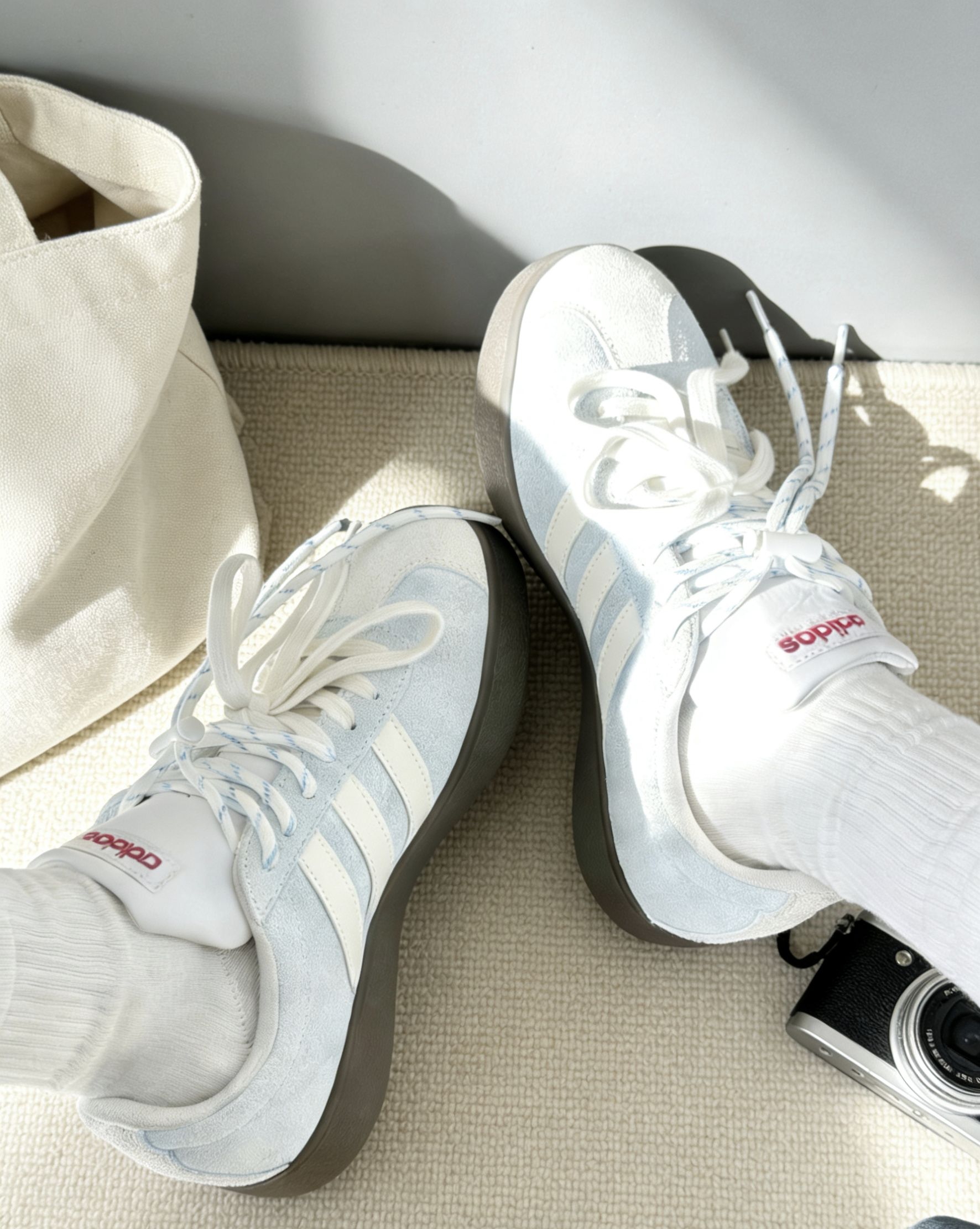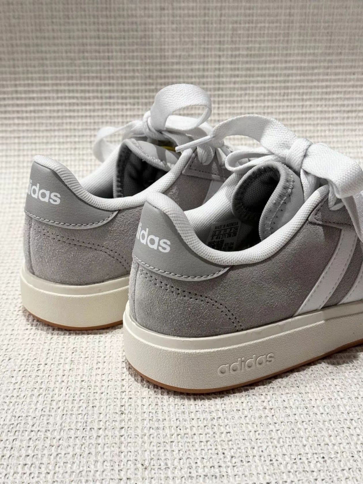 刚在识货刷到这双Adidas Courtbeat,看价格300+直接冲了!开箱瞬间惊了——奶白+浅灰拼接鞋面,经典三条黑杠贯穿鞋身,鞋舌“adidas”标用磨砂皮拼接,低调中透着贵气,完全不像百元价位的鞋!
