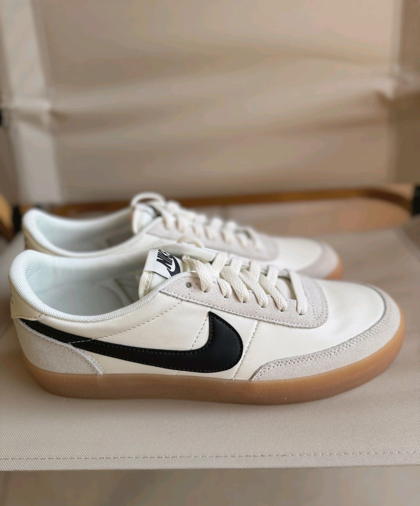 平时穿Nike 42码,这双42码刚好,鞋头宽松不挤脚趾(宽脚兄弟直接冲!)。鞋带是扁形棉线款,系紧后不容易松,跑跳都稳。