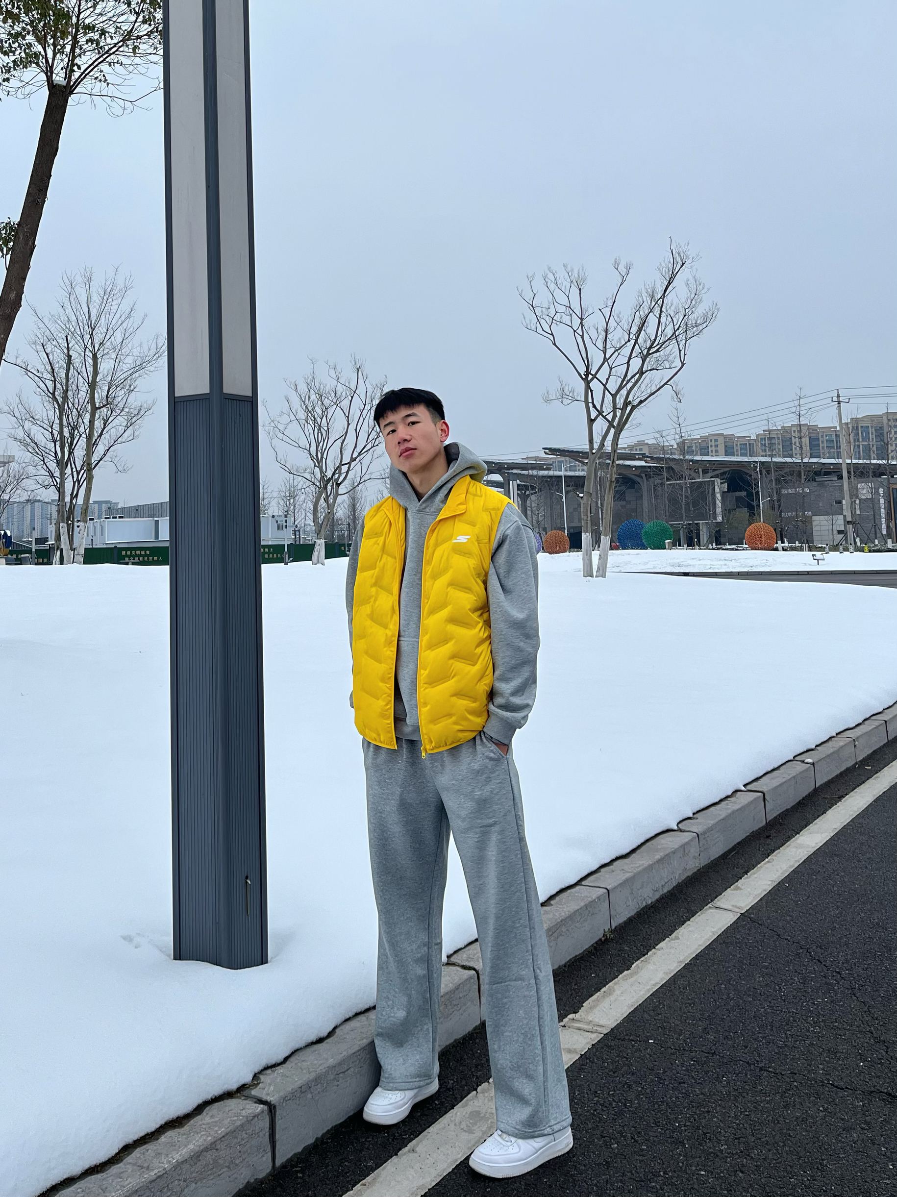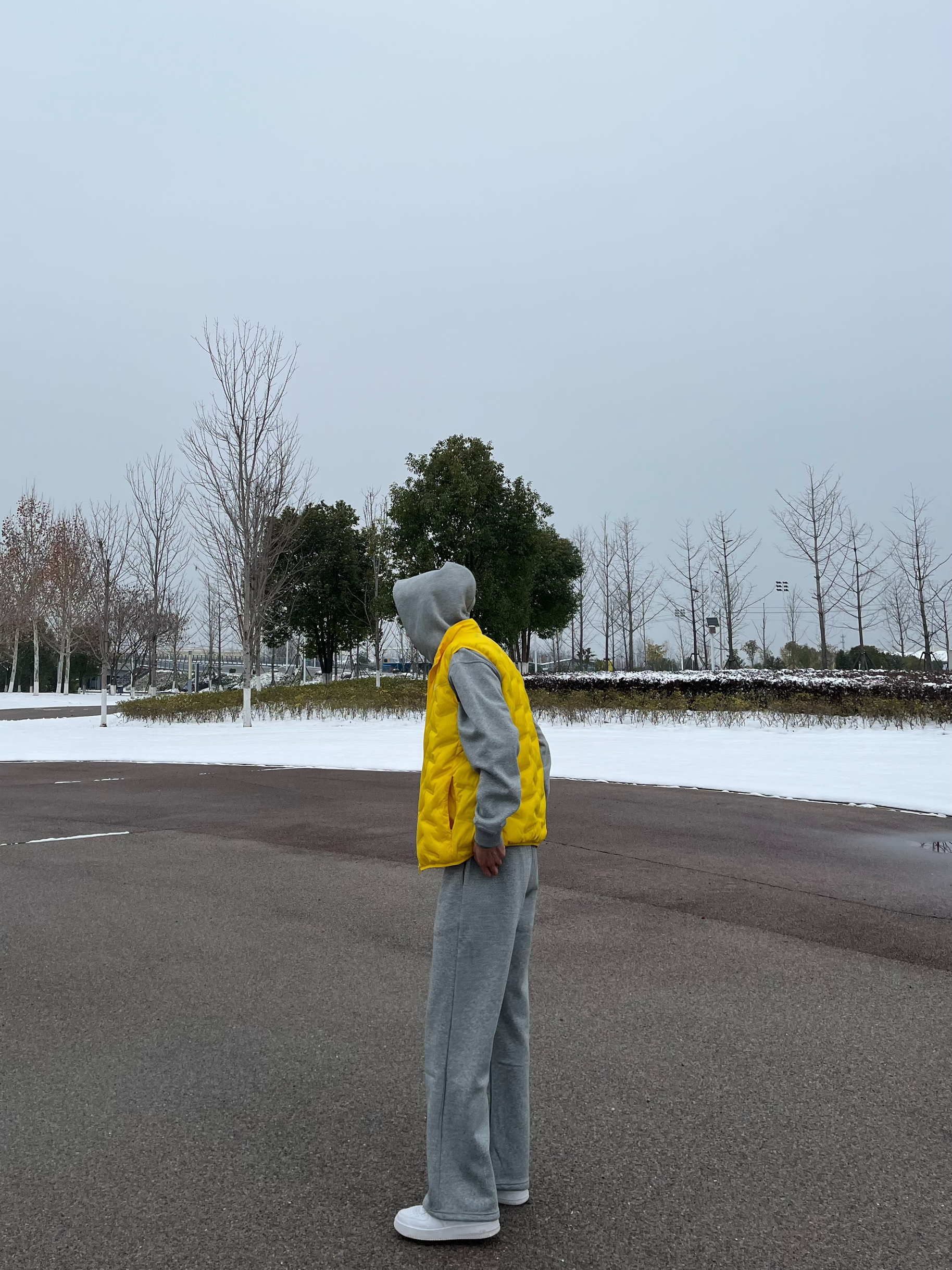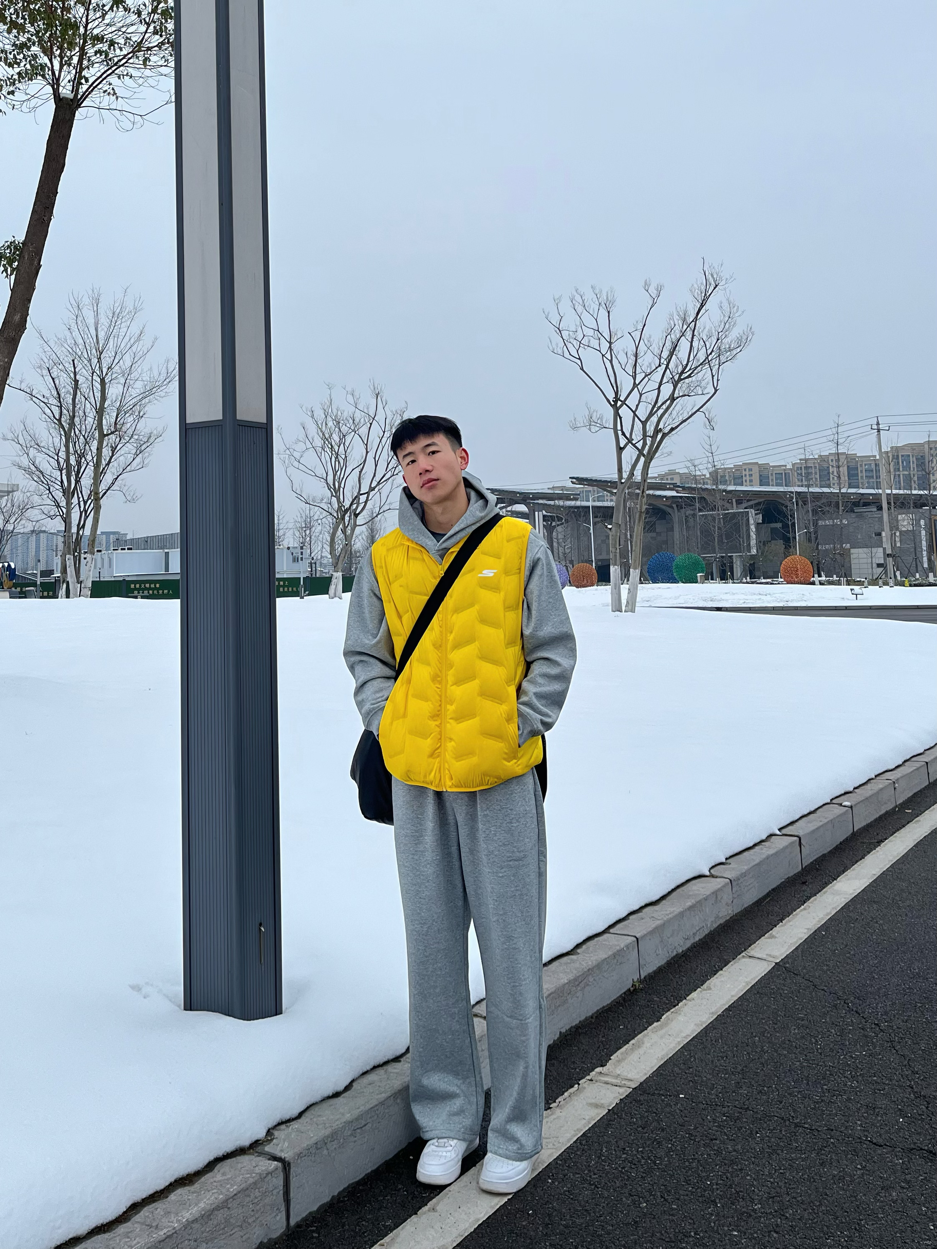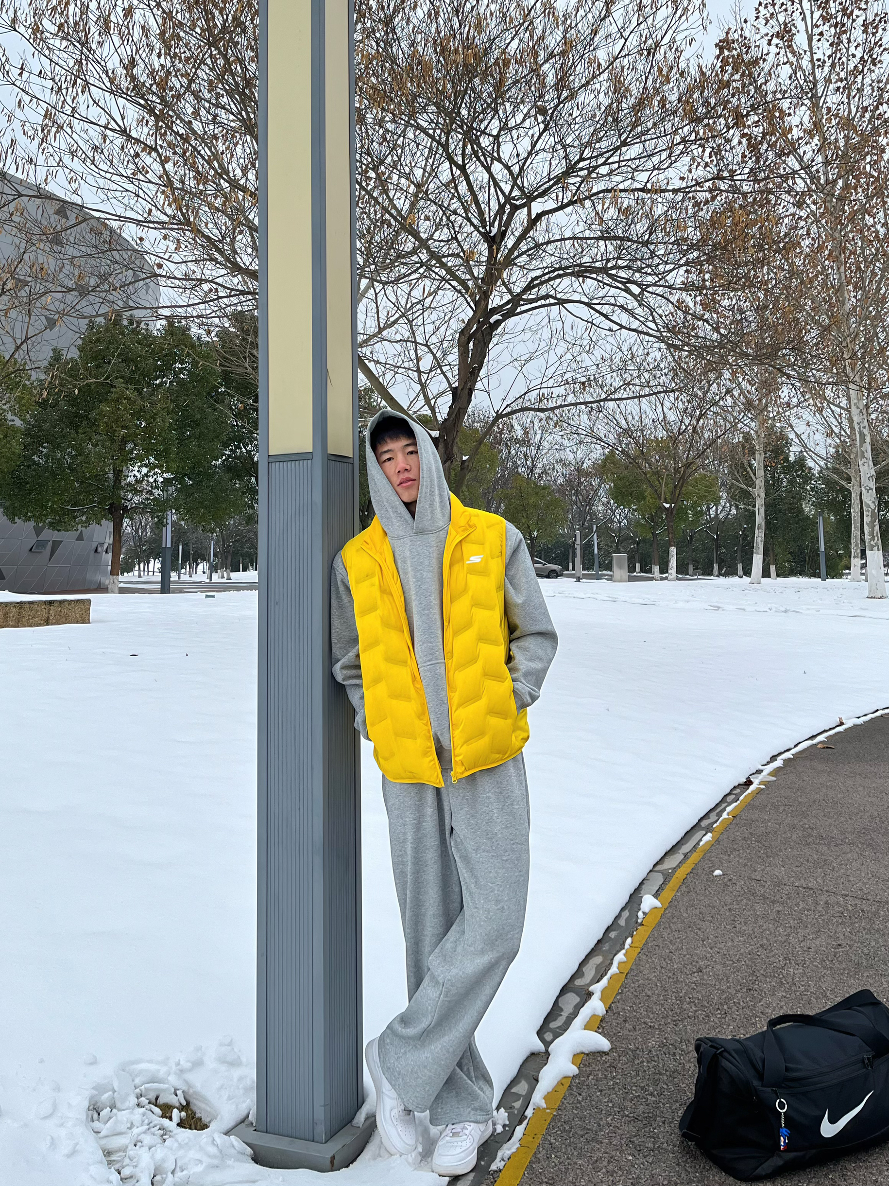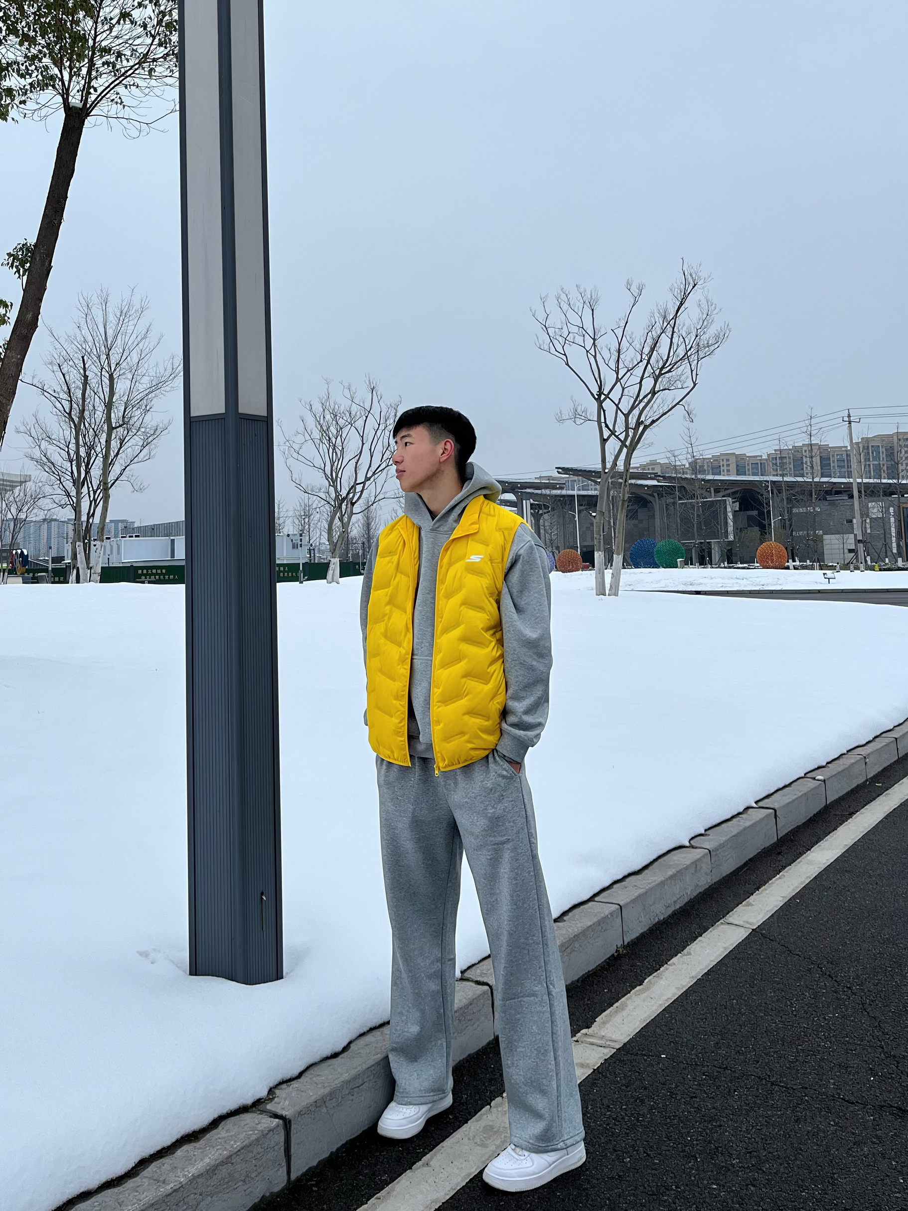 穿搭要化繁为简 我这一套简单又不失活力 内搭基础纯色卫衣套装 外加一件亮色羽绒马甲 美式松弛感拉满