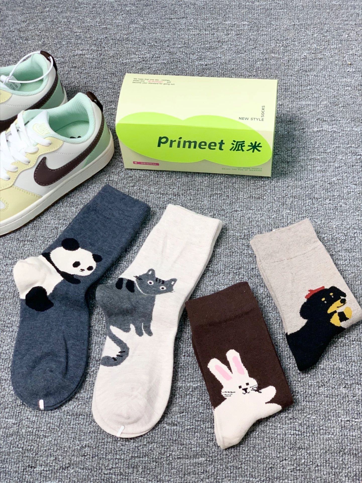 尊滴好喜欢我的这一套搭配呀 派米的这一组有四双袜子 每个小动物都好萌啊 穿起来软软糯糯的 保暖也不捂脚 搭配着我的新板鞋好合适