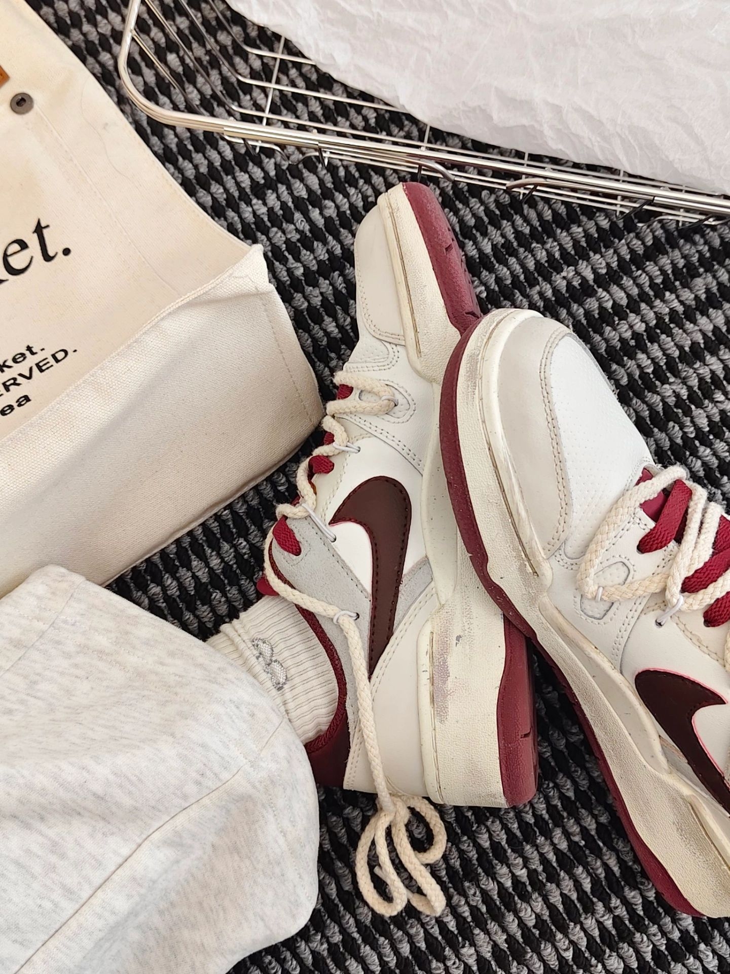 这双鞋上脚第一感觉就是软和,走久了脚也不会觉得累;米白配酒红的配色很耐看,牛仔裤、运动裤随便搭都好看;鞋面上的小涂鸦设计不扎眼,但又有点小个性,日常出门穿完全不挑场景;唯一要说的就是刚穿的时候鞋舌有点厚,适应两天就好了,整体是我最近常穿的一双鞋~[捂脸_blue][捂脸_blue]