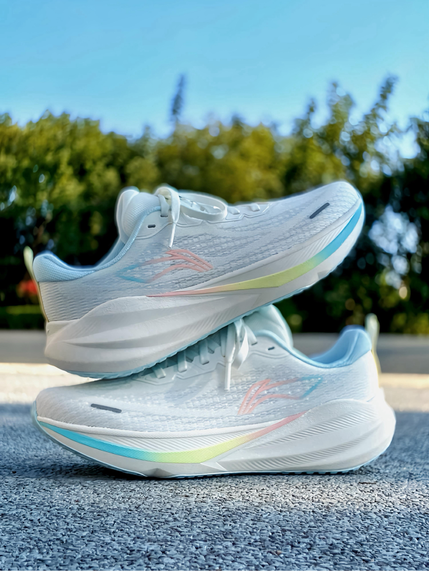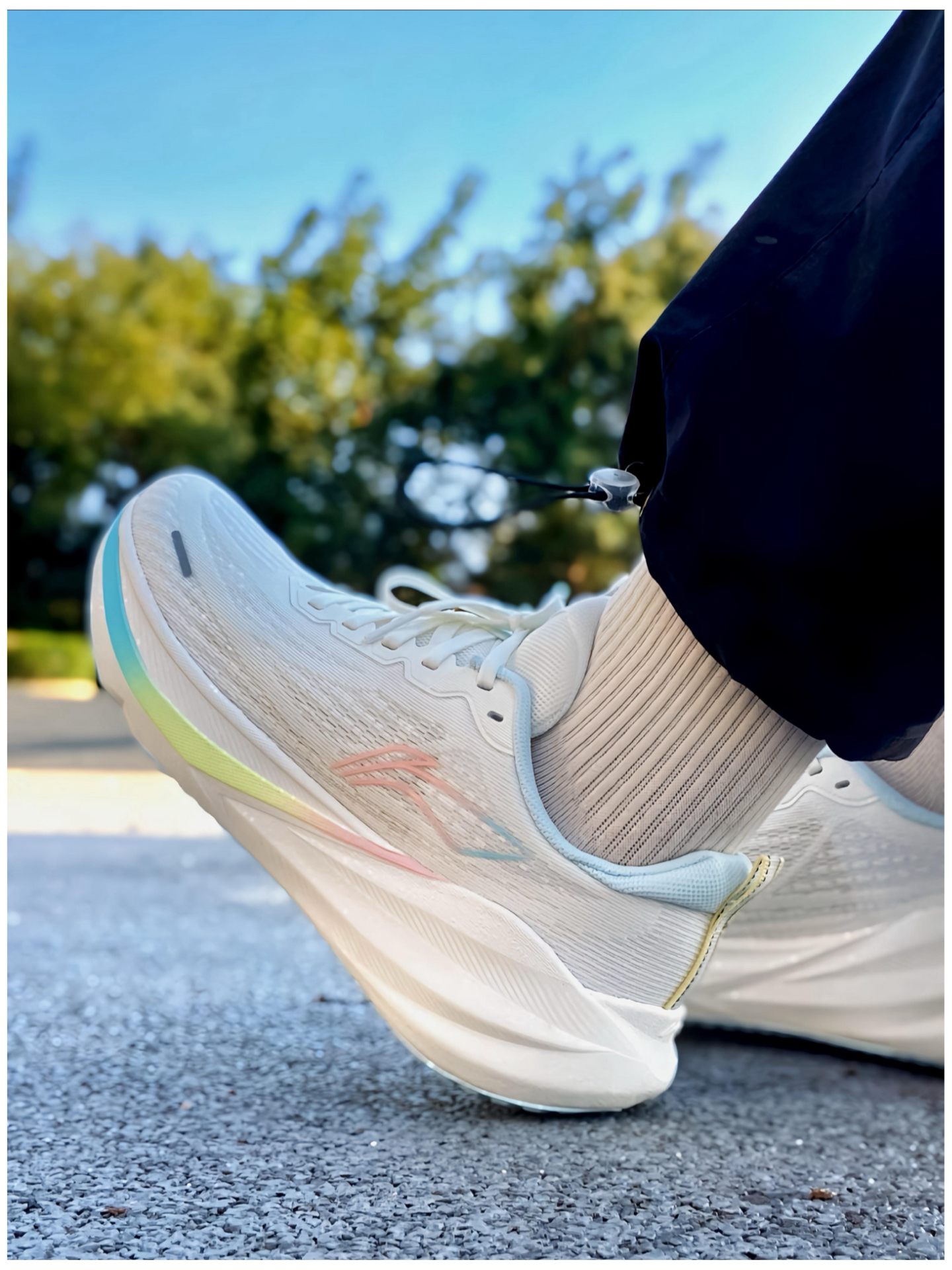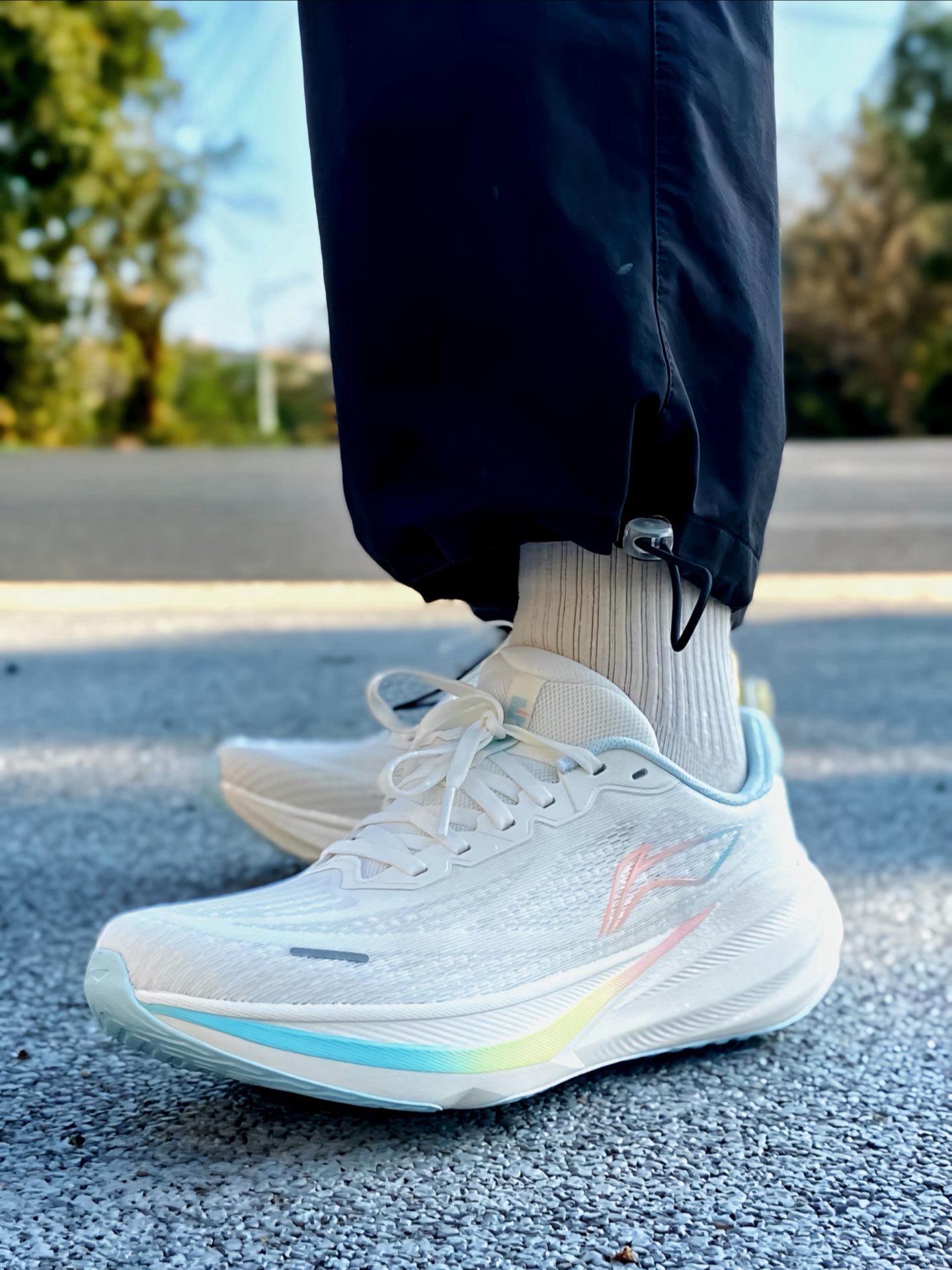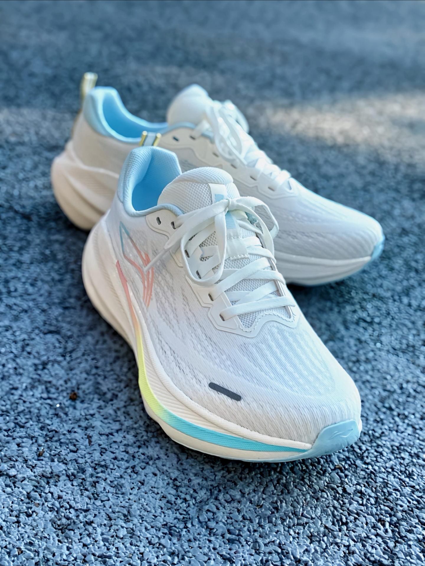 慢跑通勤一双就够了?最近新入手的这双 #李宁 吾跃4 跑鞋,我就觉得挺合适的。白色鞋面+粉蓝渐变线条,清新又带点活力感,日常搭配运动裤或休闲裤都不违和 ~ 上脚最让我惊喜的是轻便,单只鞋重量控制得挺好,走路时几乎感觉不到负担。网面贴合不压脚背,透气性也不错,我穿一整天通勤脚都很干爽。中底的软弹调校很讨喜,走路时能感受到明显的缓震,小跑几步落地柔和,不会有震脚感,个人觉得这种“软而不塌”的脚感特...