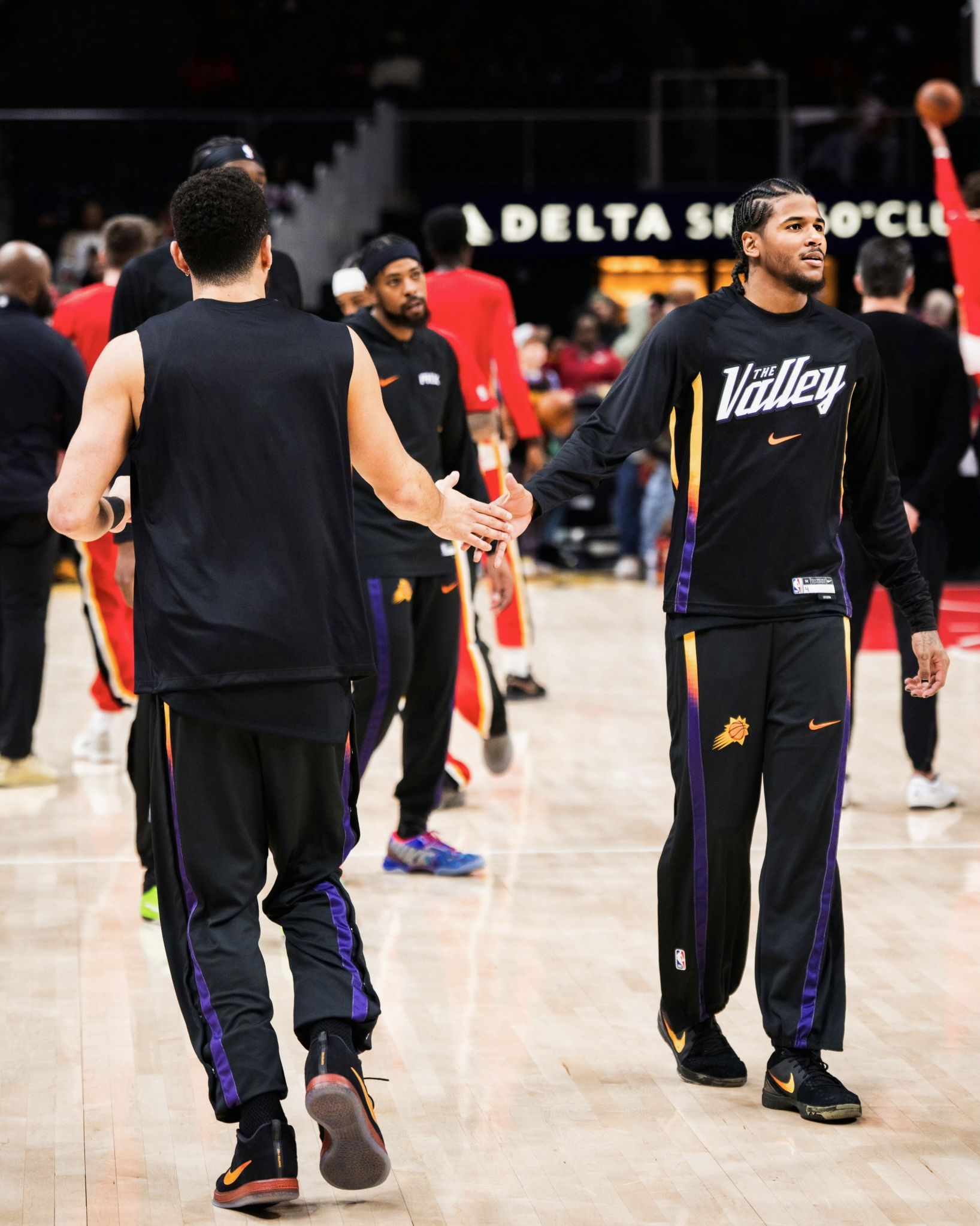 1. 上脚实况:1月24日对阵老鹰,格林复出第二战踩这双科比4太阳配色。黑橙渐变Swoosh搭紫色鞋身,和太阳“Valley”城市版球衣完美呼应,鞋身编织纹理在场上很显眼,仅出战几分钟就留下轻微磨损。 2. 真实数据:格林替补出战4分14秒,3投1中(三分1中0)、罚球2中2,拿下4分1篮板1助攻,无失误无犯规,首节末刚拿分就因腿筋不适离场。 3. 伤病情况:格林本赛季因腿筋伤半程休战许久...
