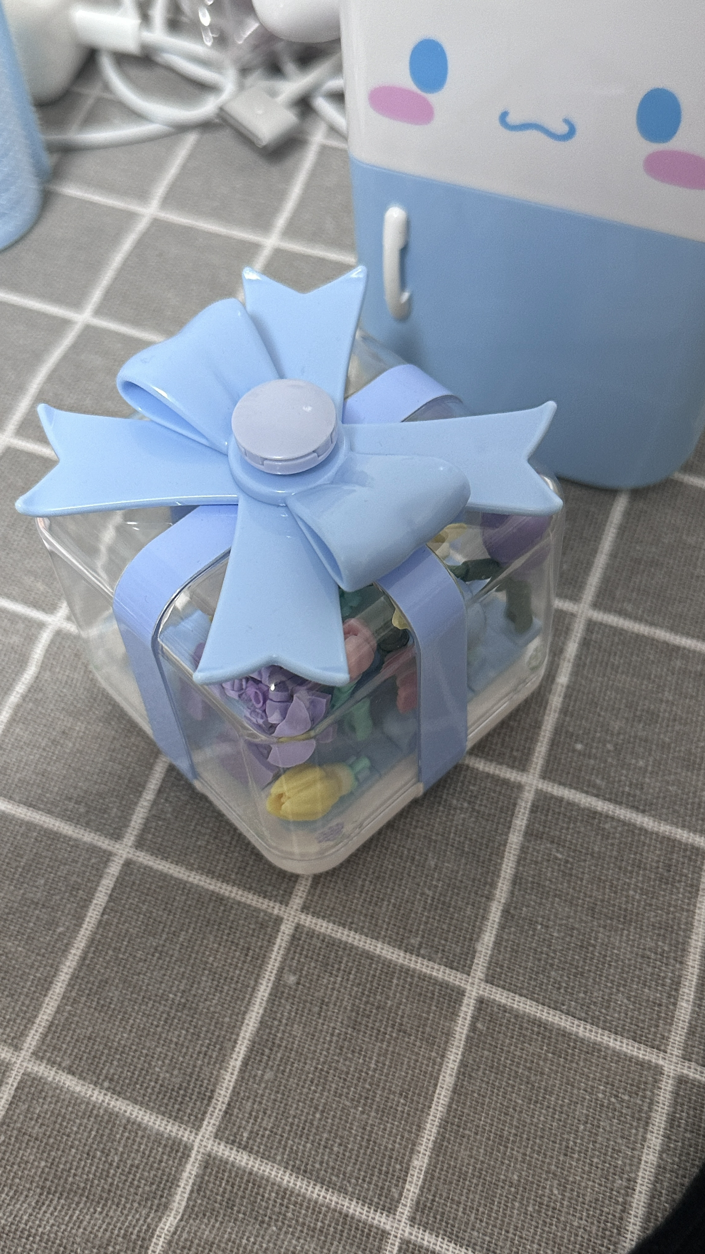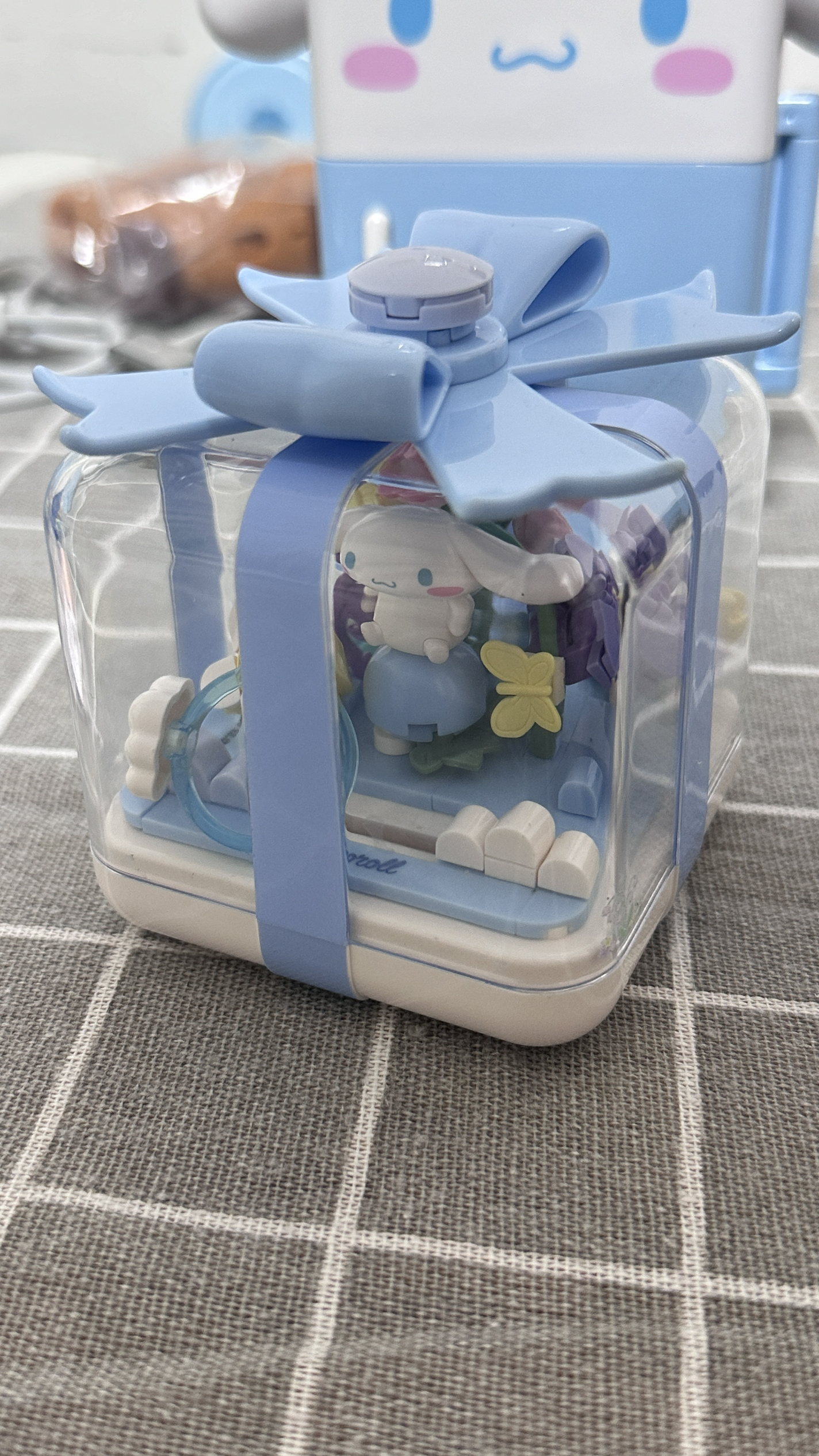 谁懂啊!这个玉桂狗积木礼盒直接把我拿捏了🎀 透明的礼盒外壳,配上奶蓝色蝴蝶结,摆在桌上就是一件小摆件。拼好后是玉桂狗坐在花丛里的场景,细节满满: • 软乎乎的玉桂狗玩偶 • 五颜六色的郁金香和小蝴蝶 • 还有可以转动的机关,整个场景会慢慢旋转,像把春天的浪漫定格在盒子里 拼搭过程也超治愈,零件不多,新手也能轻松搞定。拼好之后放在书桌或床头柜,每天看到都觉得心情变好。 关键是这个礼盒设计...
