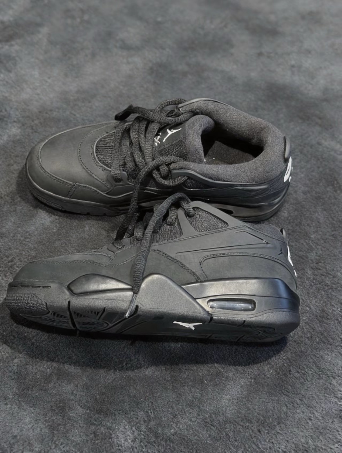 我真的好喜欢这双黑武士Jordan4,All black真的好有高级质感,鞋面的皮革材质好有质感,冬天日常搭休闲裤就很好看