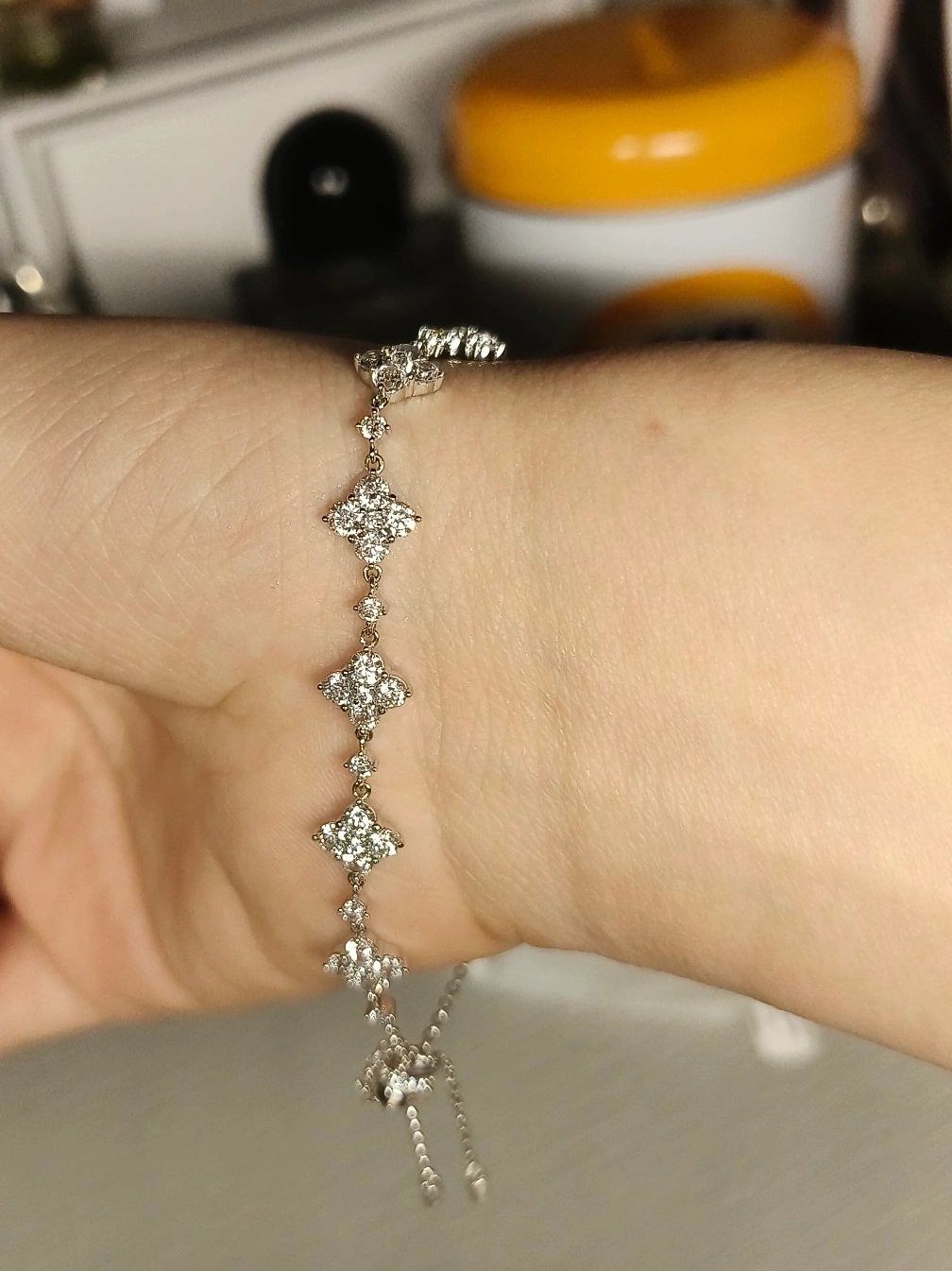 冬天送自己的第一条手链,我真的对闪闪亮亮的东西毫无抵抗力,买着买着就多起来了,不过这也就让我在不同的场合有了更多选择。 ➡️上手超级闪超级美,做工很精细,没有复杂的点缀,一整个就是一个清冷低调的风格,配小礼服,日常带也敲合适~ ⚪925银材质不会掉色👍