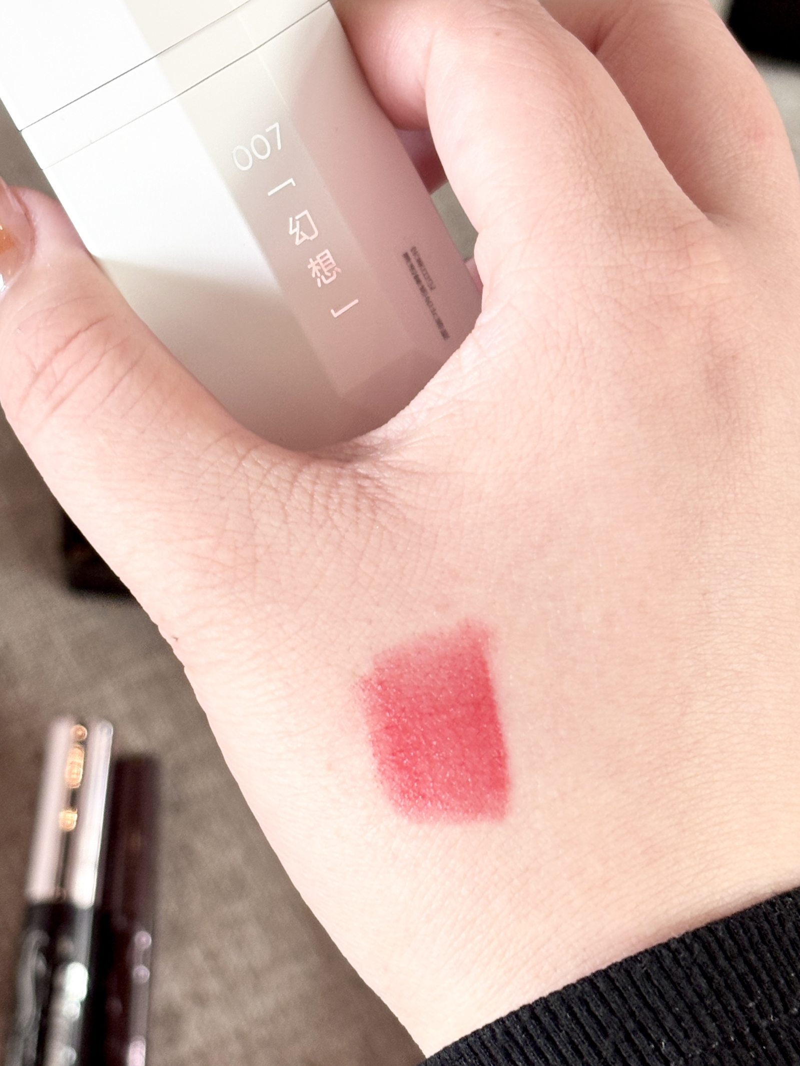 这支完美日记名片唇釉007“幻想” 真的是为春节量身定制! 丝绒雾面质地,上嘴轻薄不厚重,完全不会拔干 颜色是温柔又显白的玫瑰红棕,黄皮涂也超有气色 抿开就是雾蒙蒙的柔焦感,高级感拉满。 钻石切割的白色外壳颜值超高 揣在兜里随时补妆都很有仪式感 不管是走亲访友还是约会聚餐 涂它新年就要美得毫不费力~