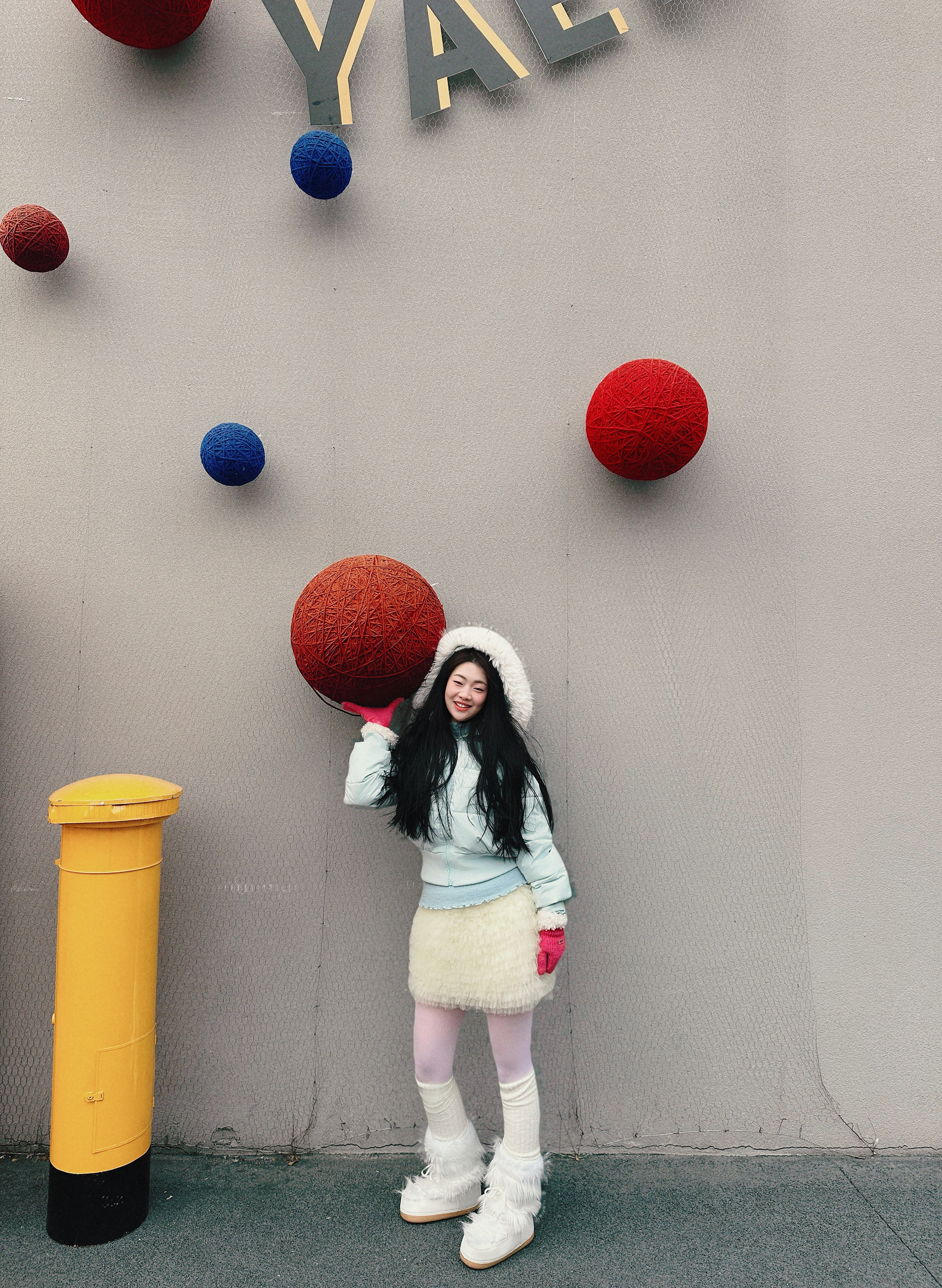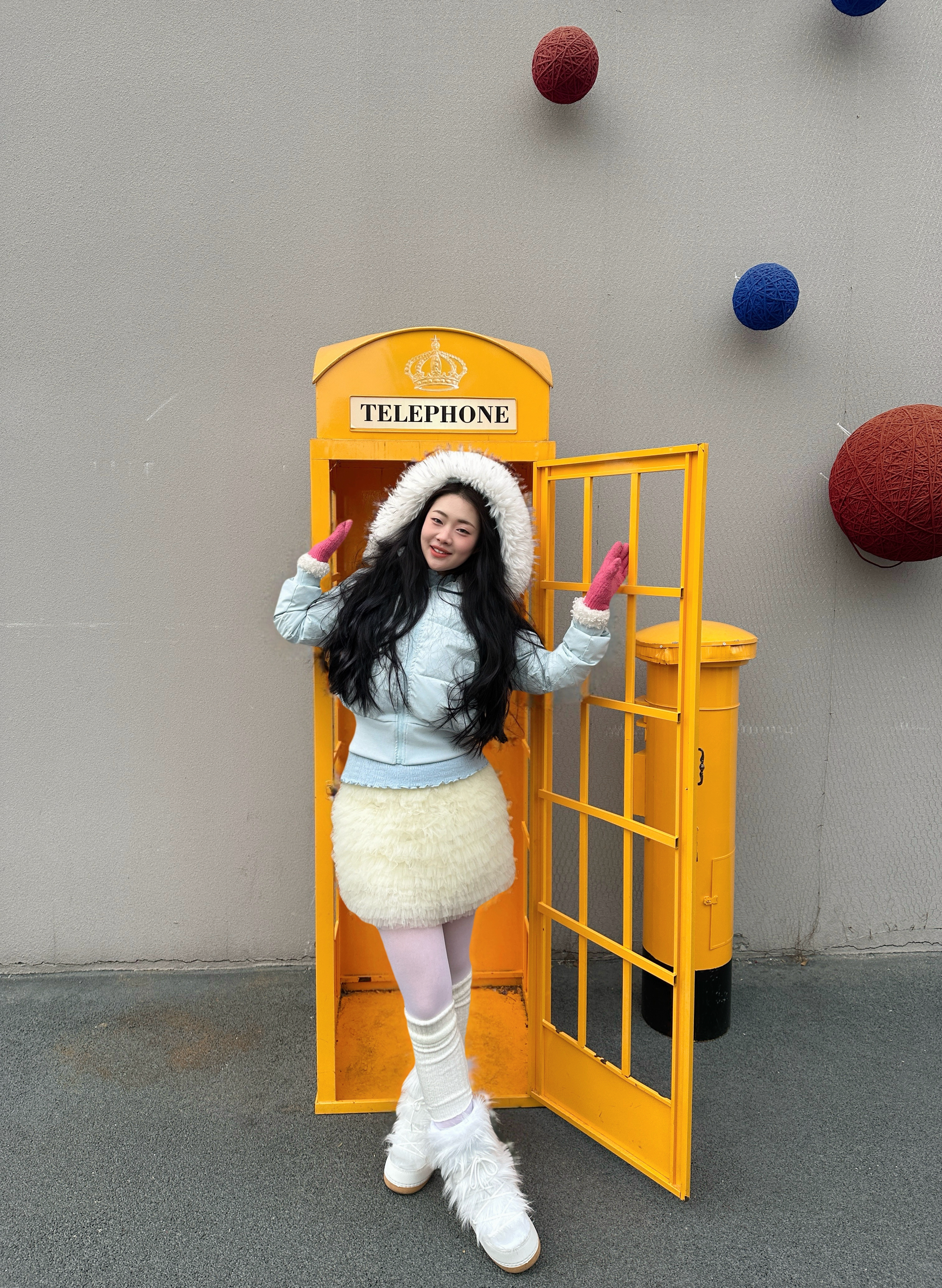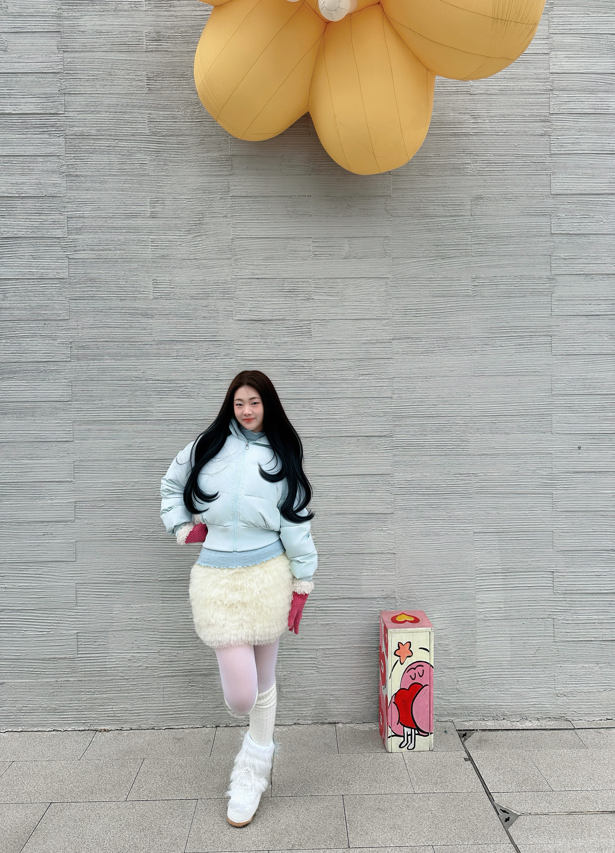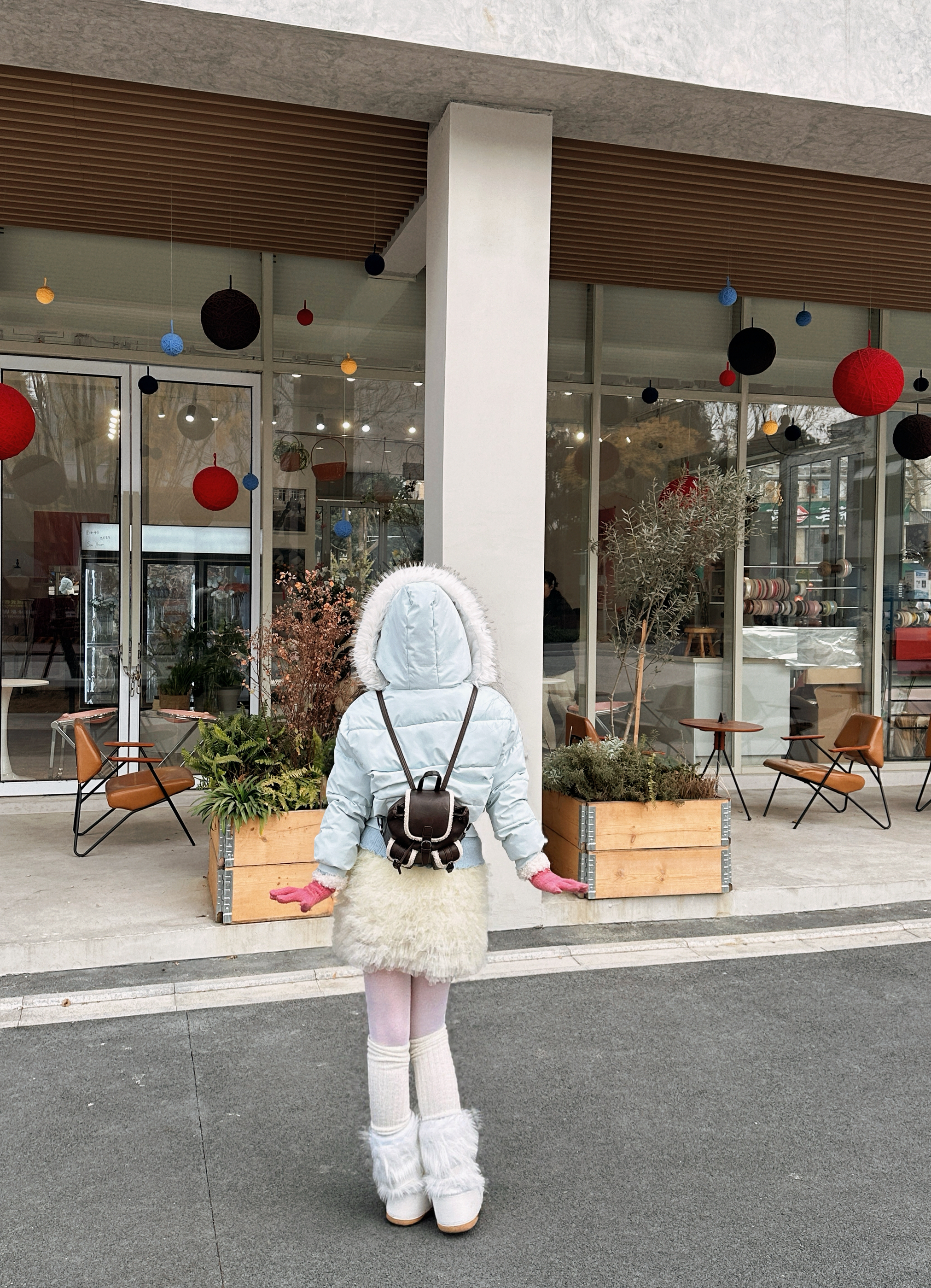 浅蓝短款棉服叠搭奶白毛绒半裙,再踩一双同色系毛绒靴,全身上下都裹着软乎乎的触感!粉粉手套和巨型粉花装置完美呼应,怕冷又想美的甜妹直接锁死这套~随便一站就是冬日画报感,拍照发圈被问爆链接!