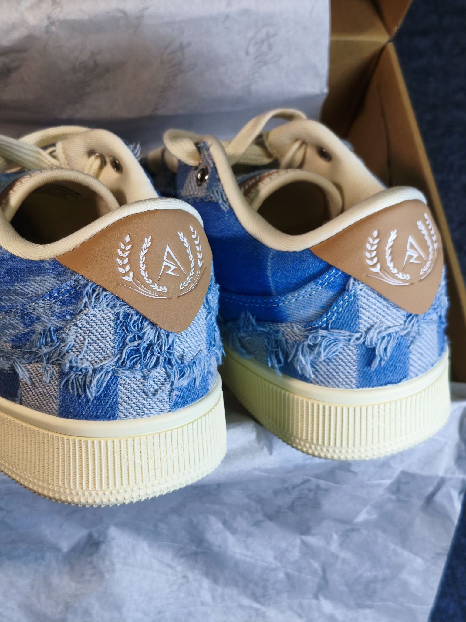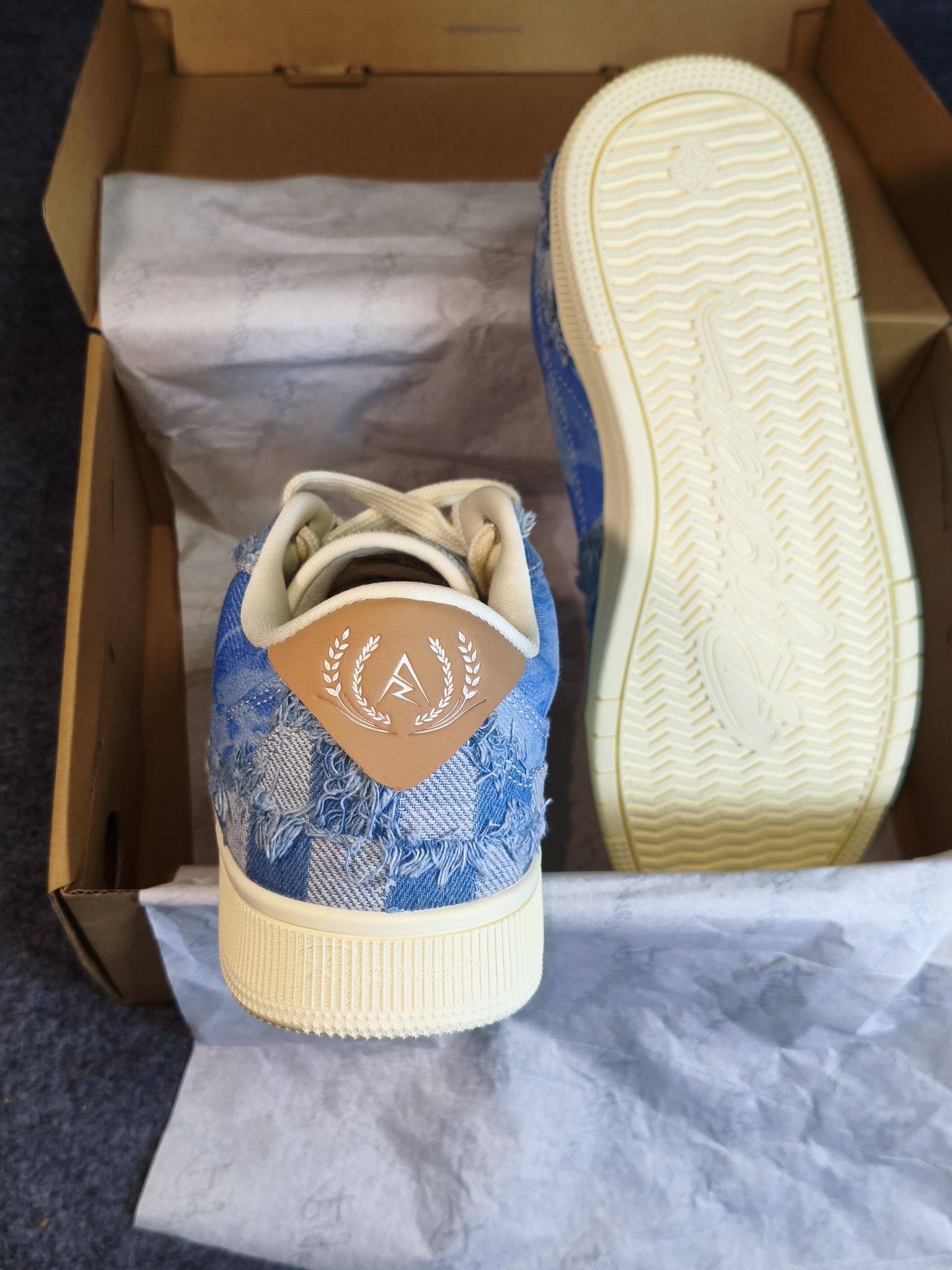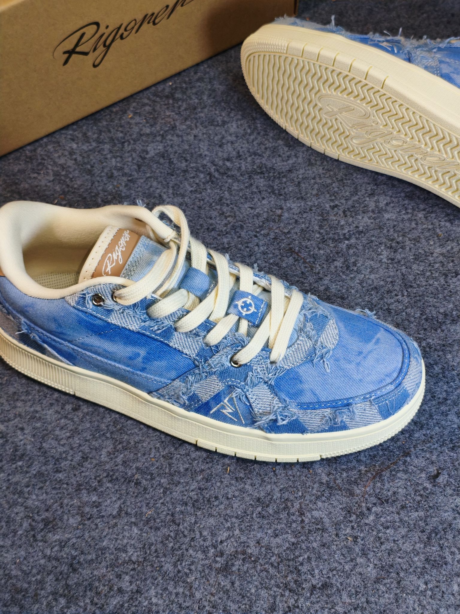 今天开箱一双准者✖️里弗斯的板鞋 牛仔蓝配色搭配上蛇纹头层皮美式街头风拉满了💥 整体是牛仔🤠做旧风格,以蓝色为主体,鞋跟像不像是一个牛仔的帽子? 牛仔蓝+浅蓝+米白的拼色真的绝,复古感拉满,不管是搭牛仔裤还是运动裤都巨百搭,低帮版型还能悄悄拉长腿型,小个子闭眼冲! 鞋面是帆布和那种硬挺料子的拼接,还有棋盘格做旧流苏的小细节层次感超足,鞋舌是准者的logo,质感直接up up! 别以为这双鞋子中看...