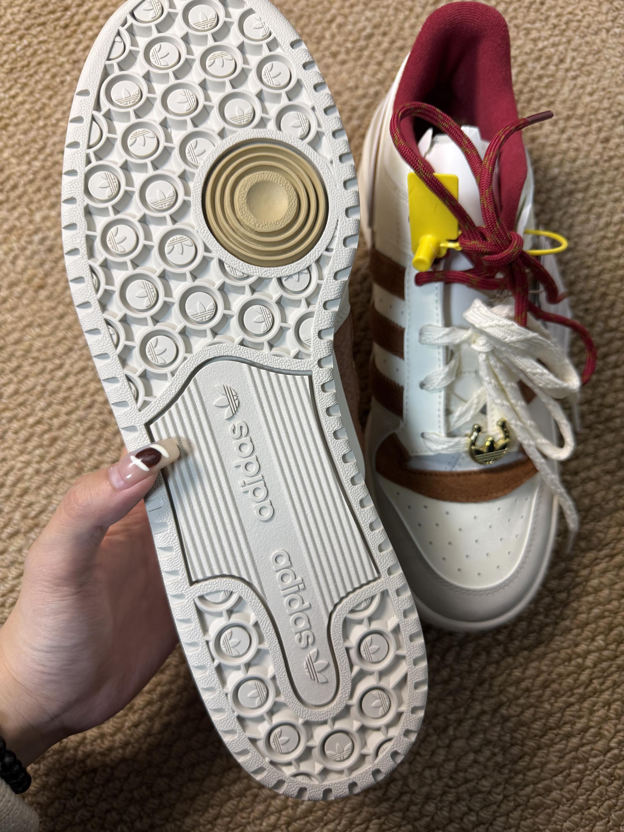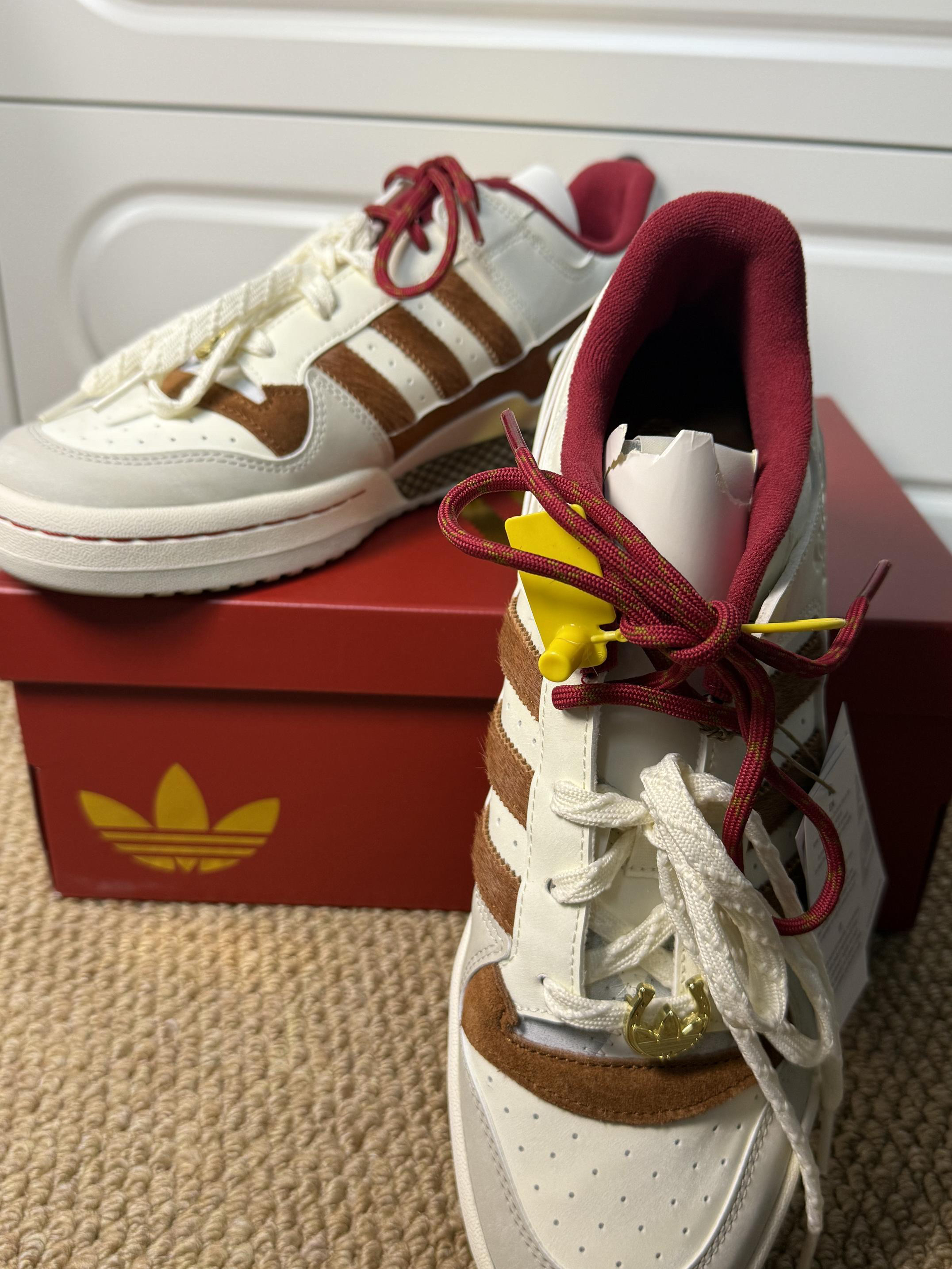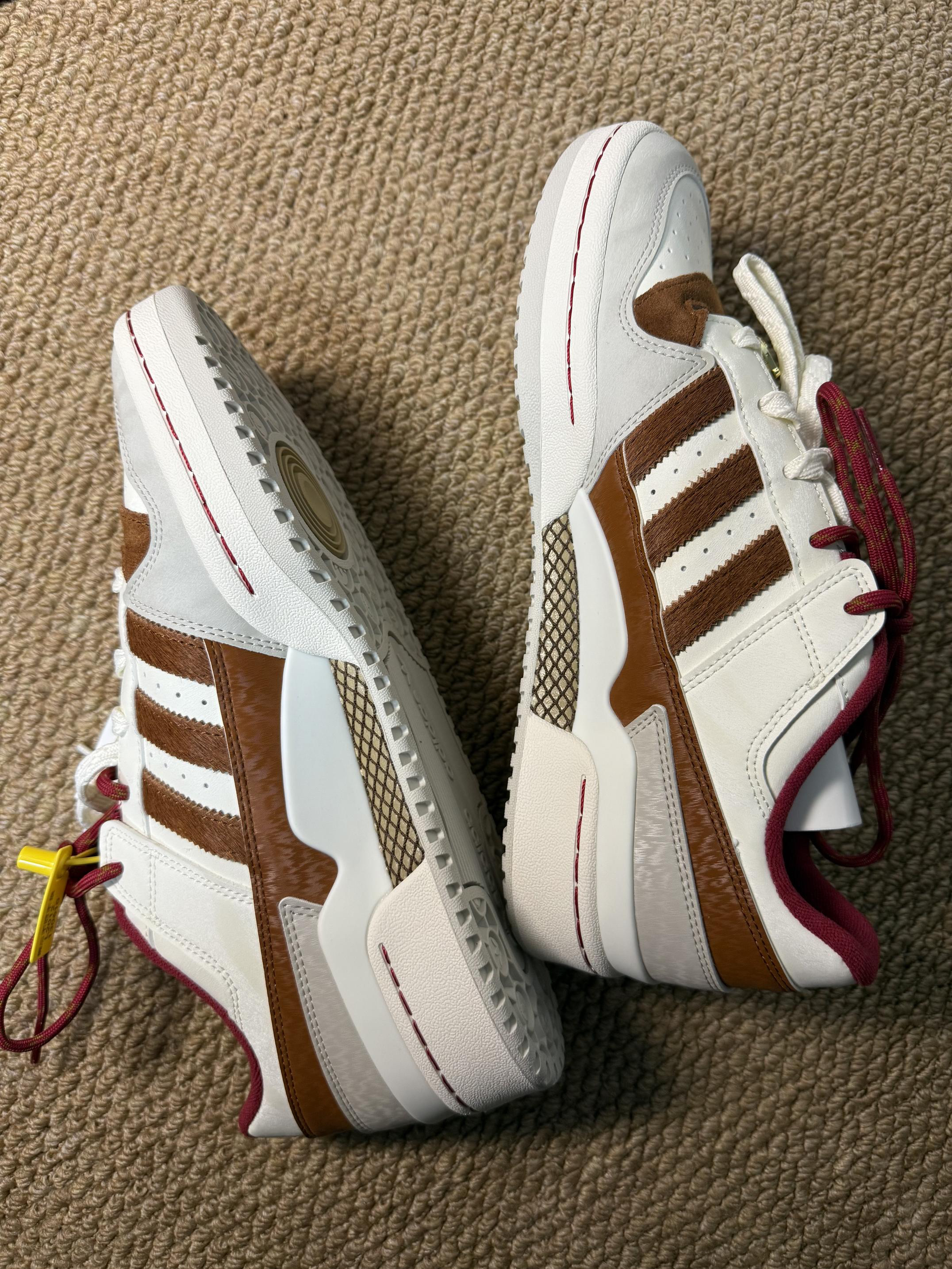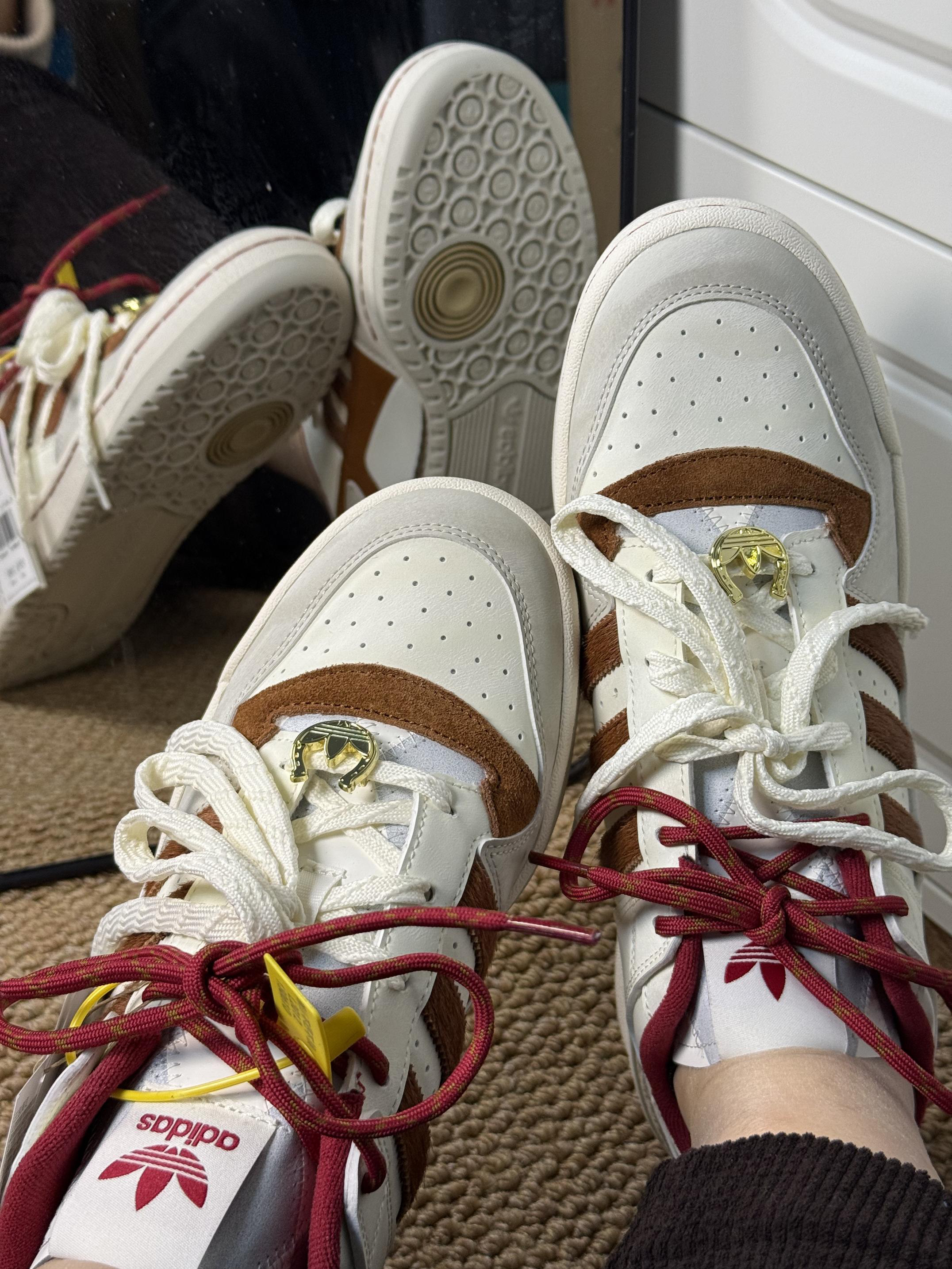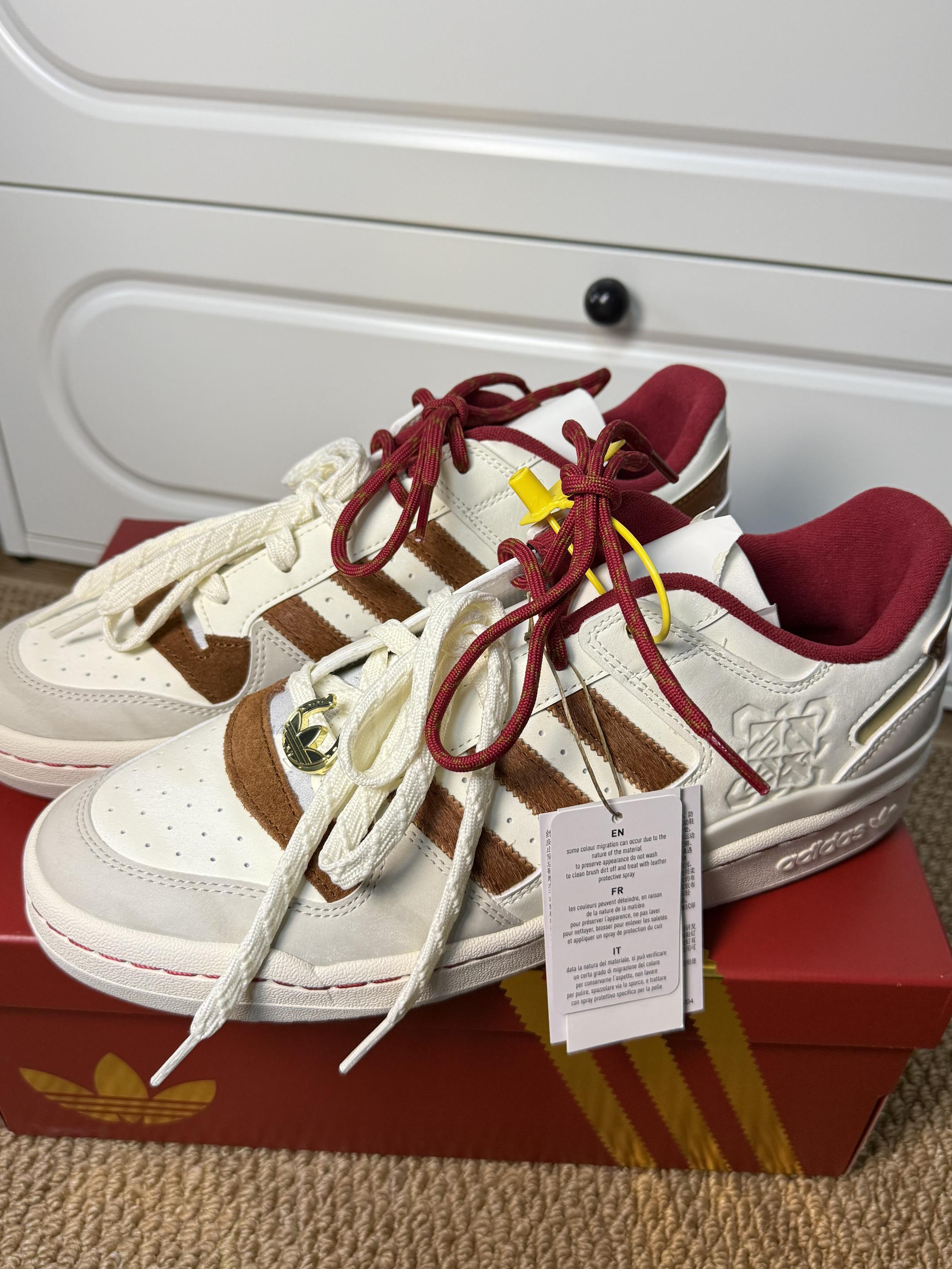 这双Forum,懂「马上好运」的人都入手了。 不只是马年限定,更是把新春氛围穿在脚上的年味单品。红、白、棕三色巧妙碰撞——不是那种生硬的喜庆红,而是低调又有质感的汉玉白、暗青铜与奇迹矾土棕交织出的高级年味。 细节全在分寸之间: ▪️双色鞋带,一明一暗,寓意好事成双 ▪️三条纹以仿马毛材质呈现,复古感拉满 ▪️鞋身暗藏中国风图案,走近才能发现的巧思 ▪️魔术贴设计致敬篮球传统,穿脱间都是经典味道...