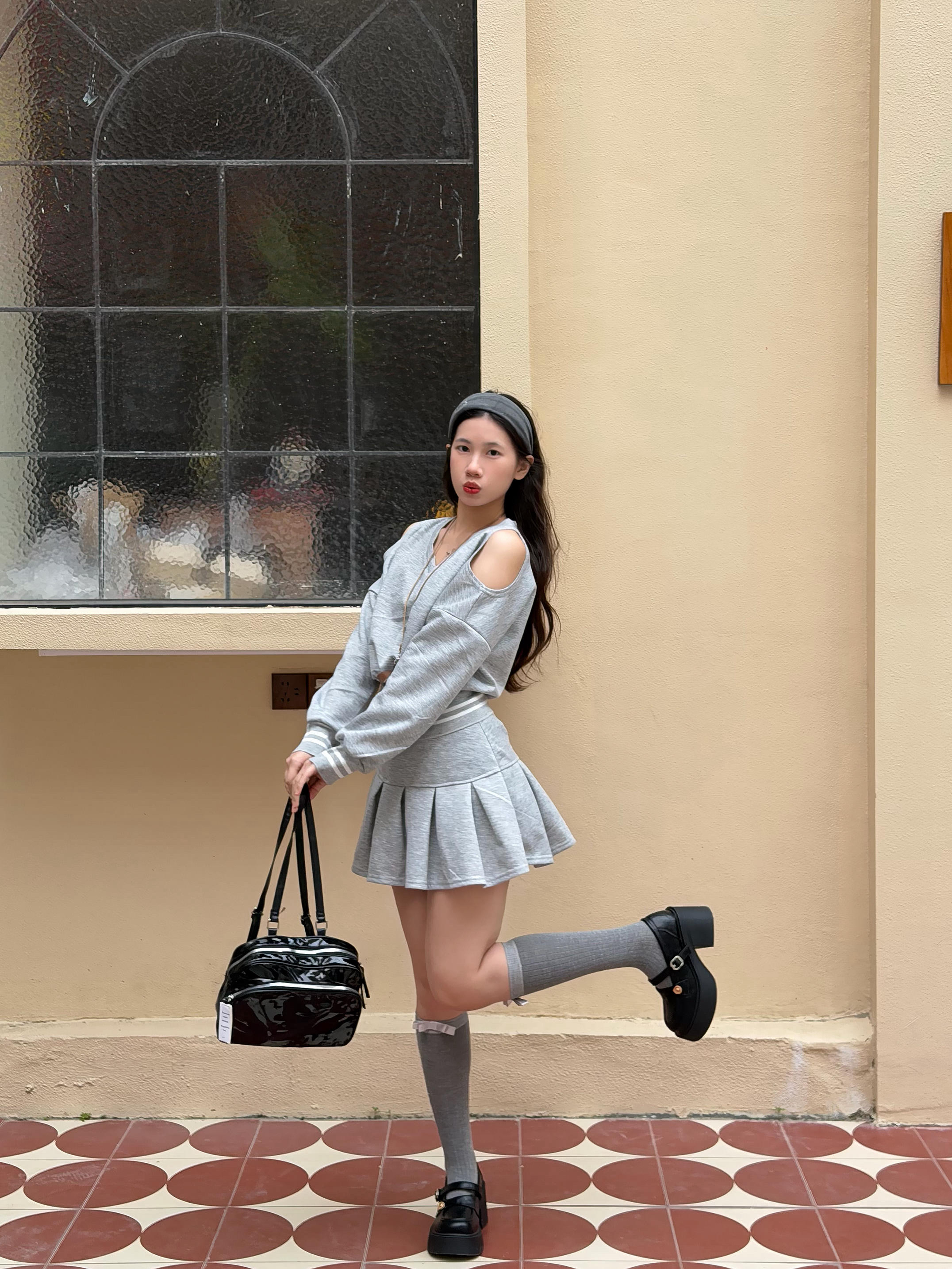 带着点上世纪纽约高智通勤的腔调 鞋头做的是这种微微翘高的杏仁头 秀气修饰脚型,而且不会有笨重感 增高又拉长腿型,很百搭可以搭配小长袜小裙子 学院风很甜美