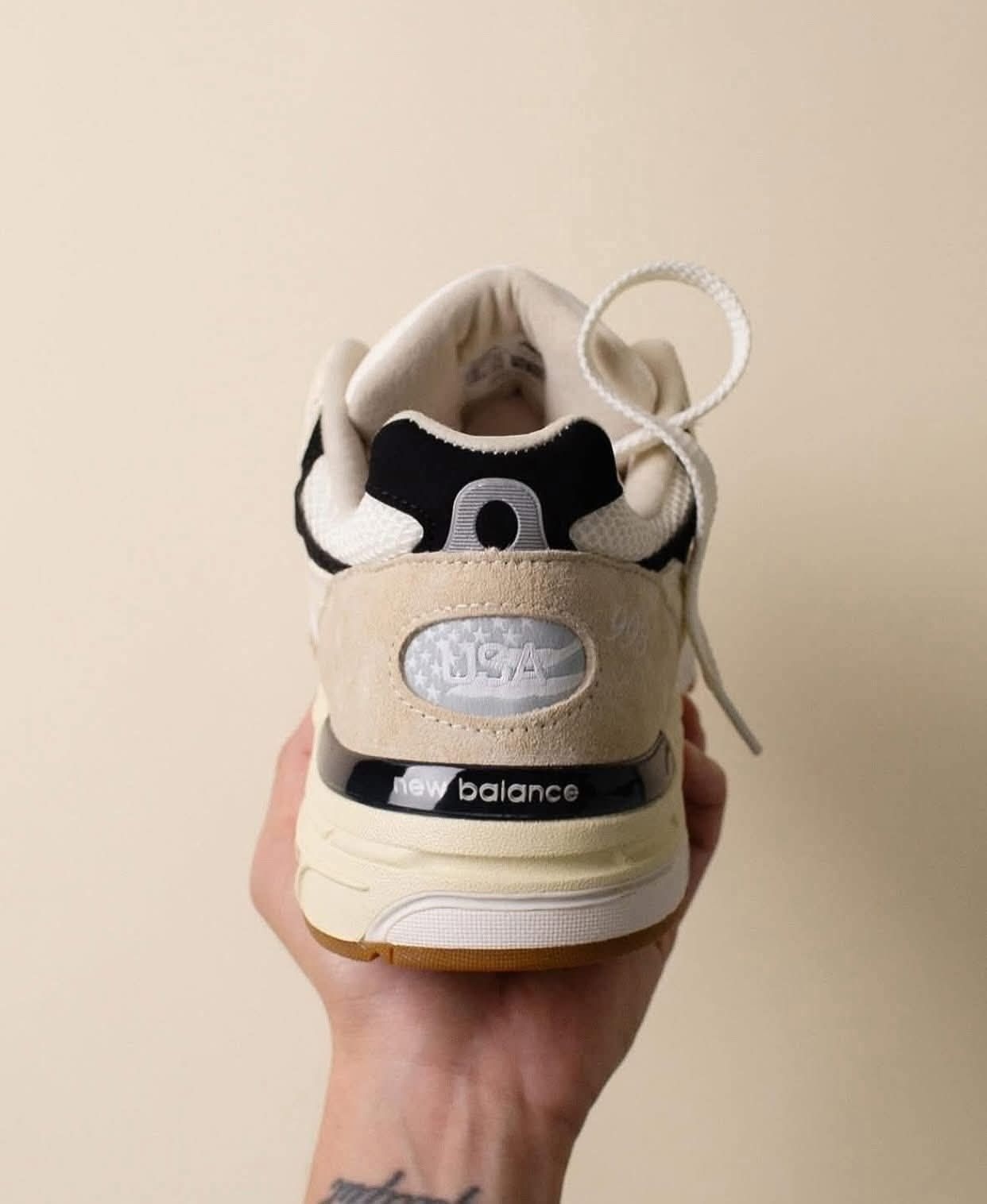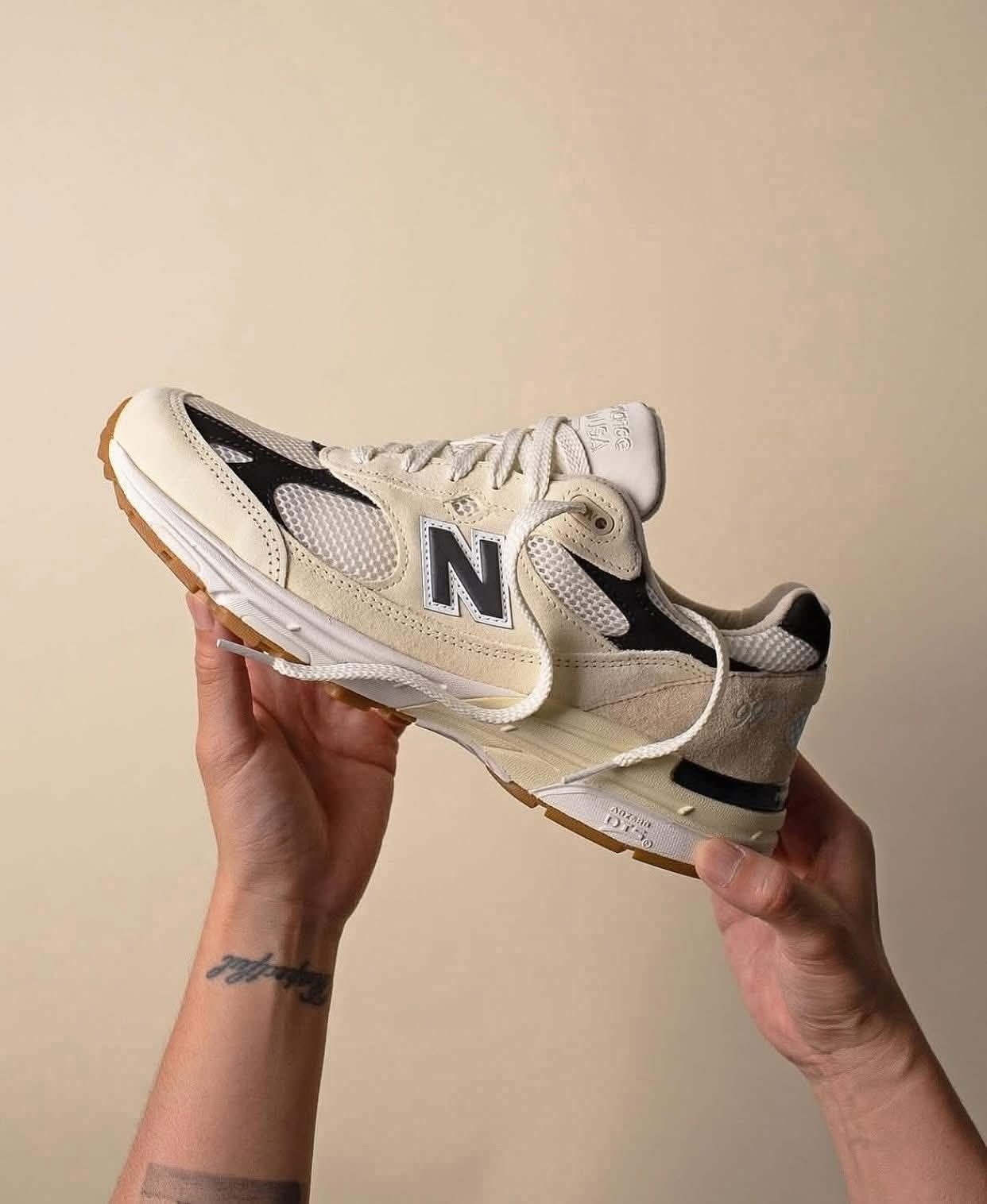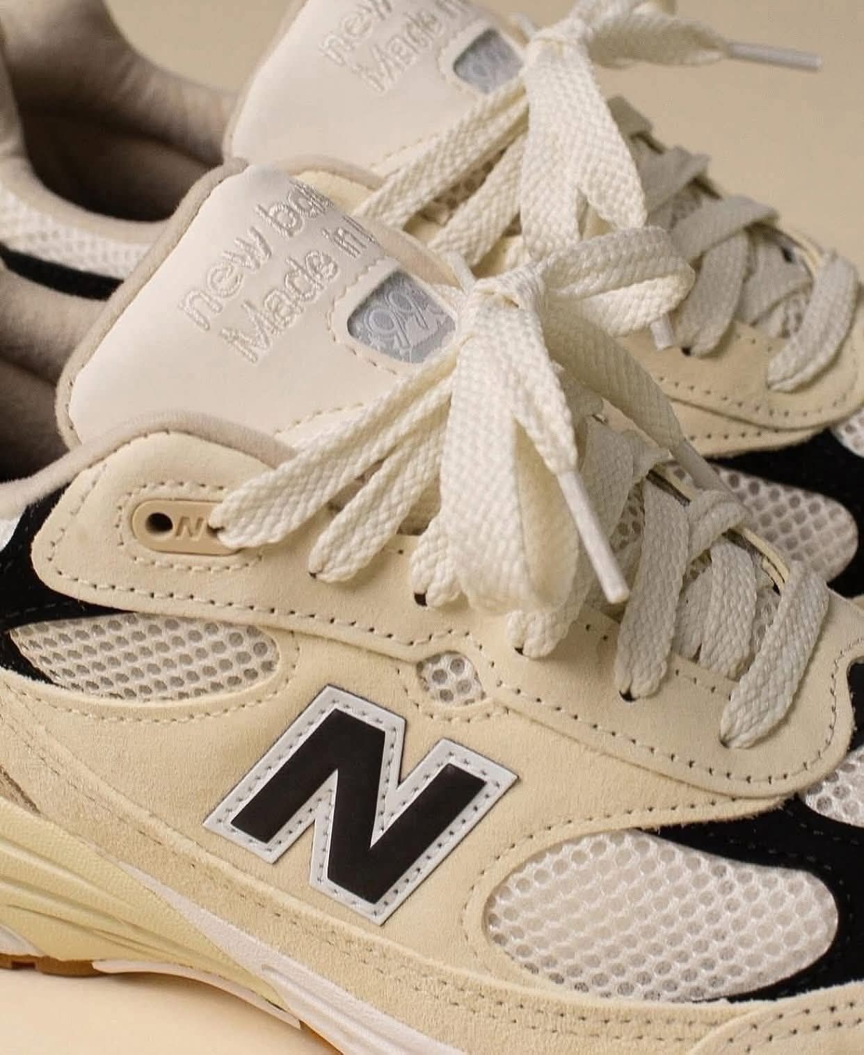 终于等到这双米白黑标的New Balance 993! 加兰同款真的帅到犯规,翻毛皮+网眼的拼接质感拉满,米白底色配上经典黑色N字标,复古氛围感直接焊在脚上。 作为总统慢跑鞋的经典型号,ABZORB缓震科技脚感软弹又支撑足,不管是通勤压马路还是轻度运动都能打,百搭还显腿细,复古党直接闭眼冲!