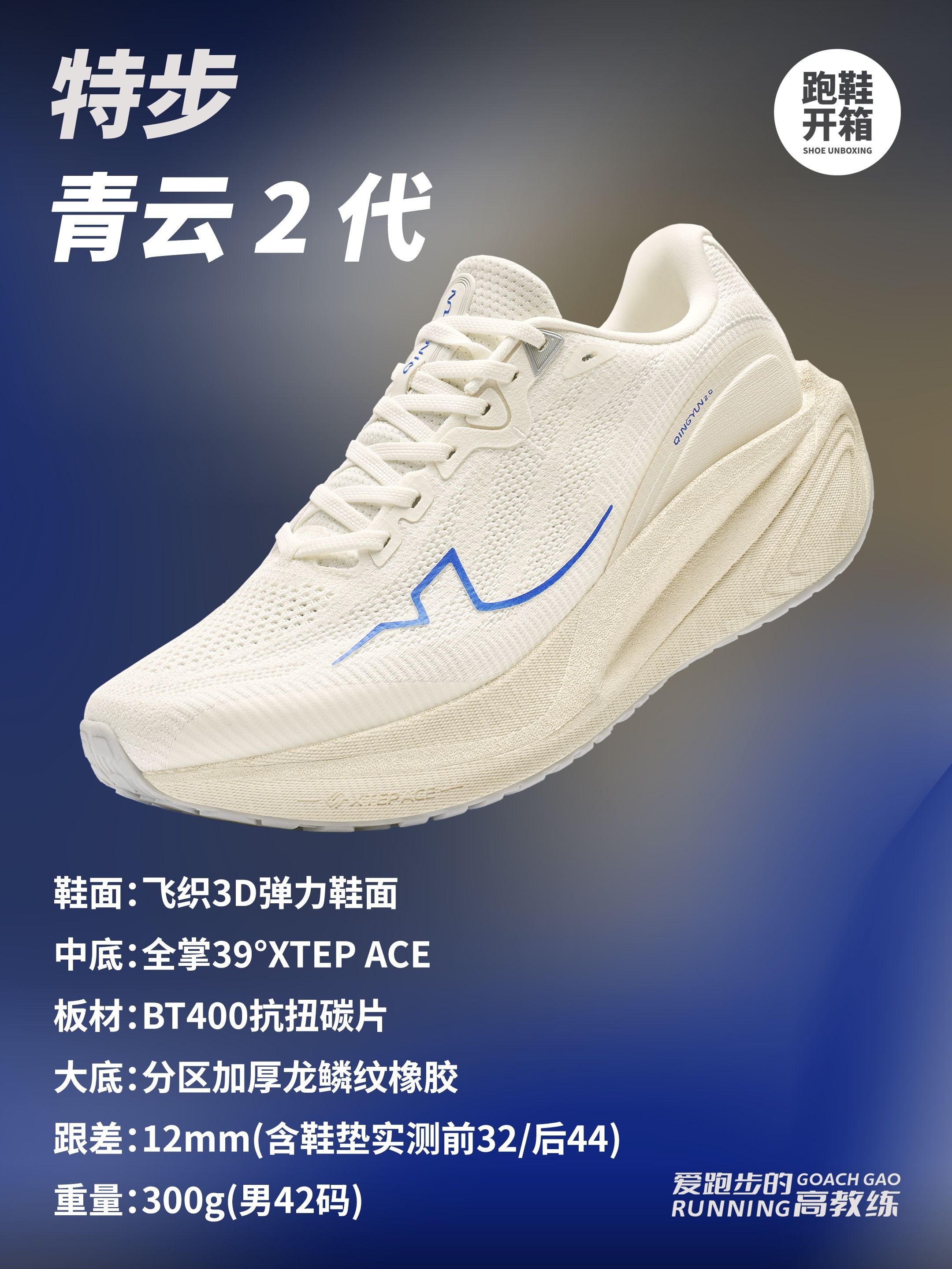不由得给特步竖起大拇指👍真的太会出了~ 这双青云2.0蓝白配色简直是我的心头好✨ 全新升级XTEP ACE中底缓震,鞋子舒适感更好✔ 日常通勤穿着跟我的脚掌超贴合☁ BT400碳板,稳定和抗扭都有提升~ 不管是慢跑还是打羽毛球穿都很合适🏸 鞋底抓力很好,防滑度很高, 后面的运动就靠它了!