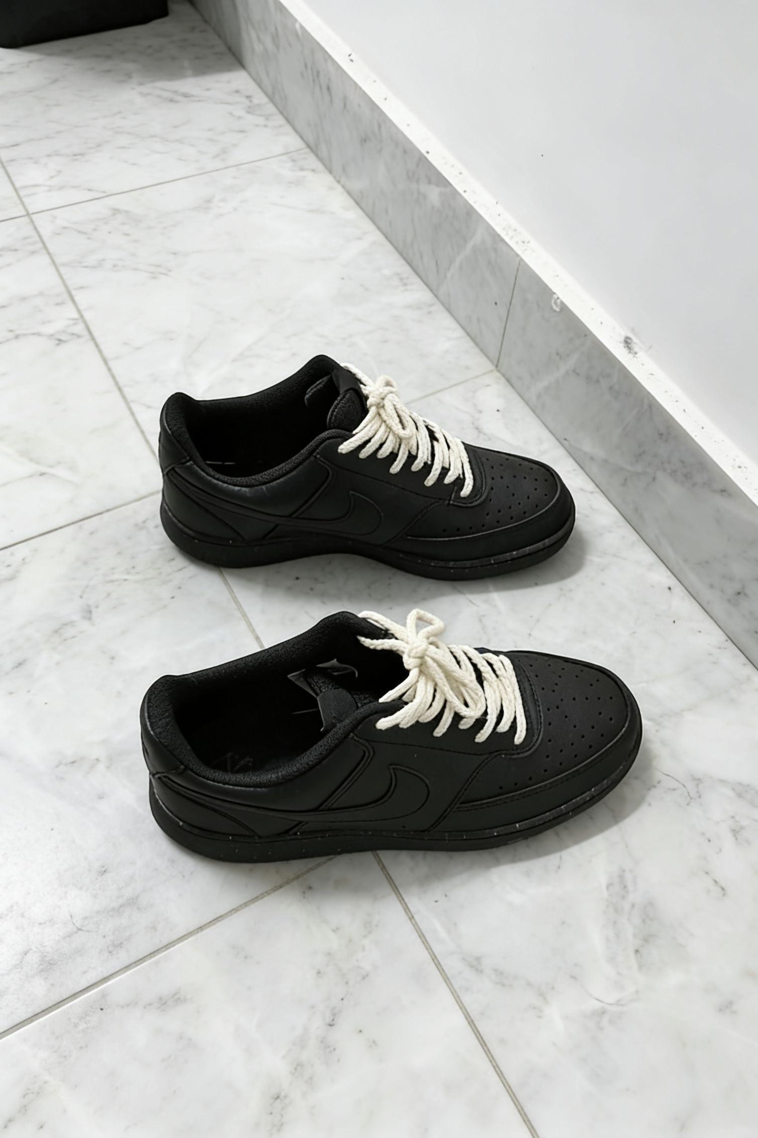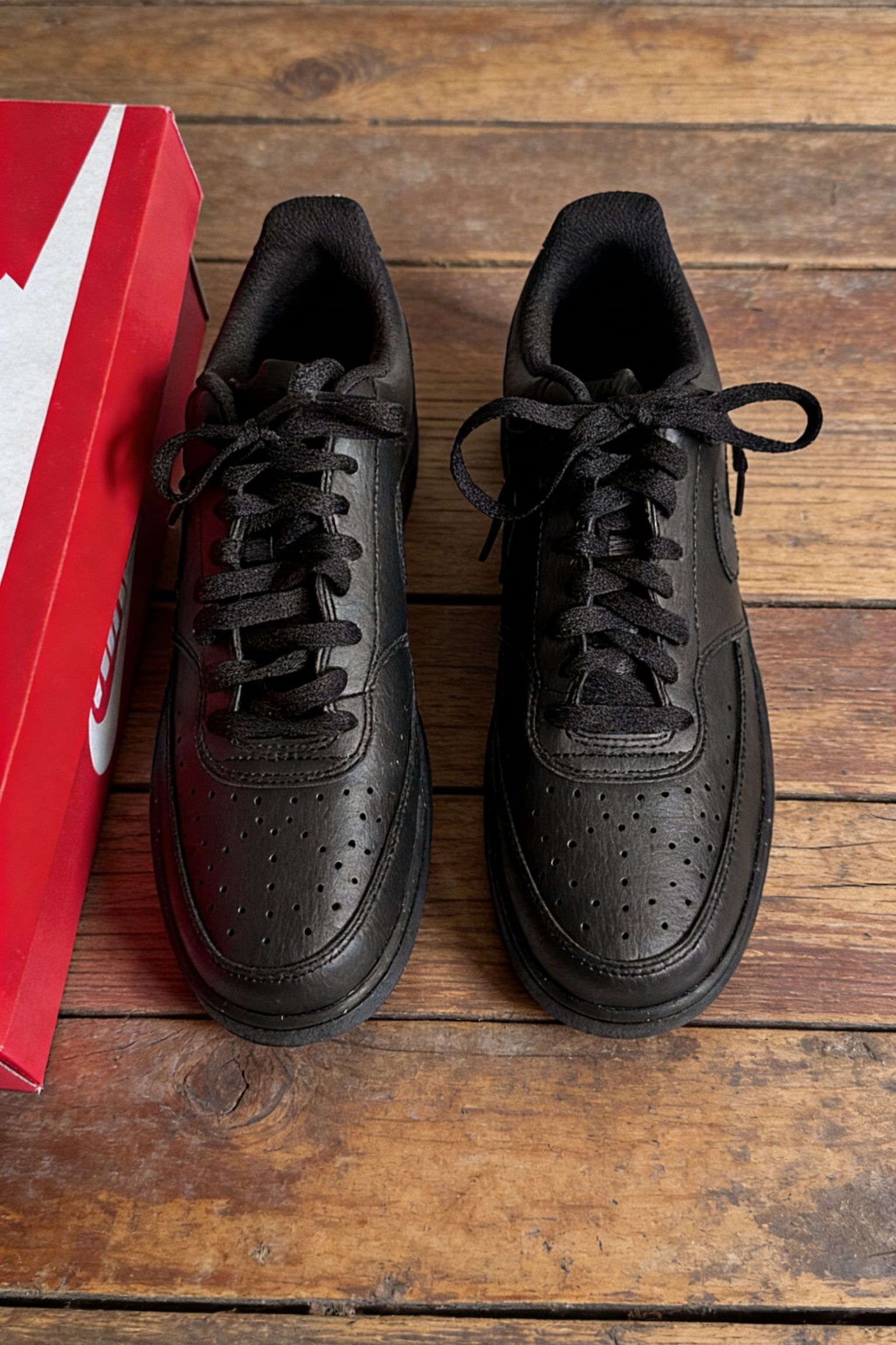 🛒好物名称:Nike Court Vision Low NN 🤔推荐理由:这双全黑皮质简约百搭,复古质感与现代设计融合。学生党 日常通勤、街头出街都能轻松驾驭。😍