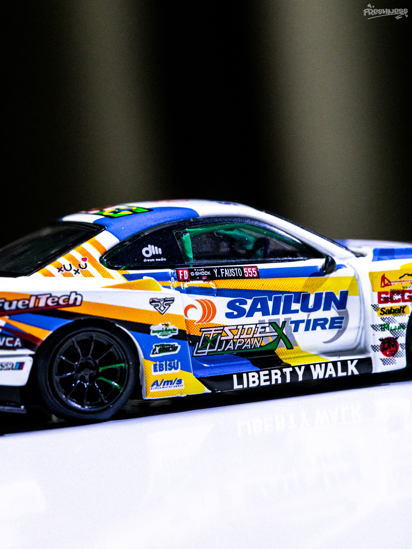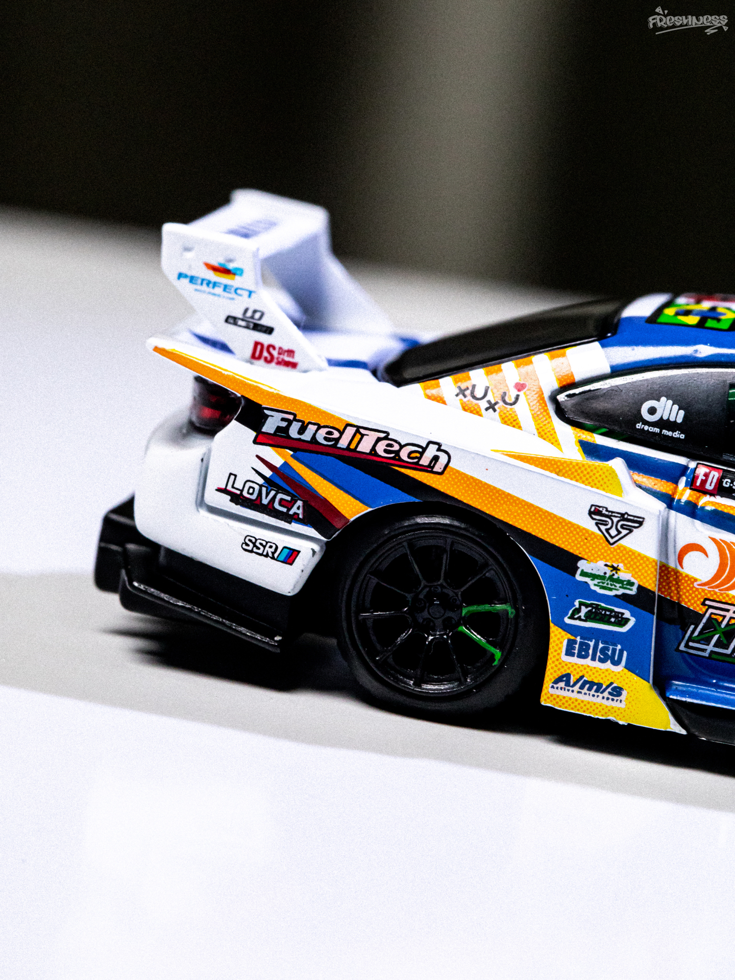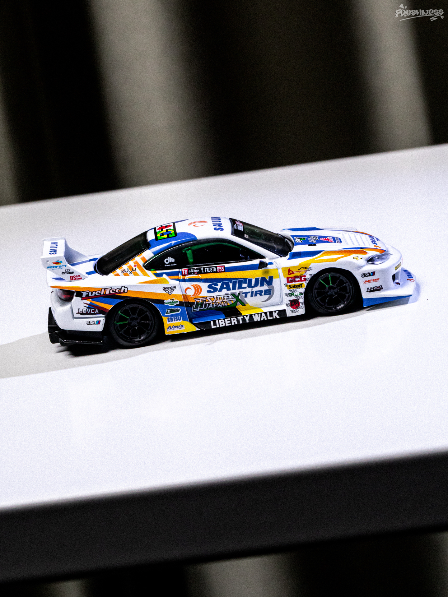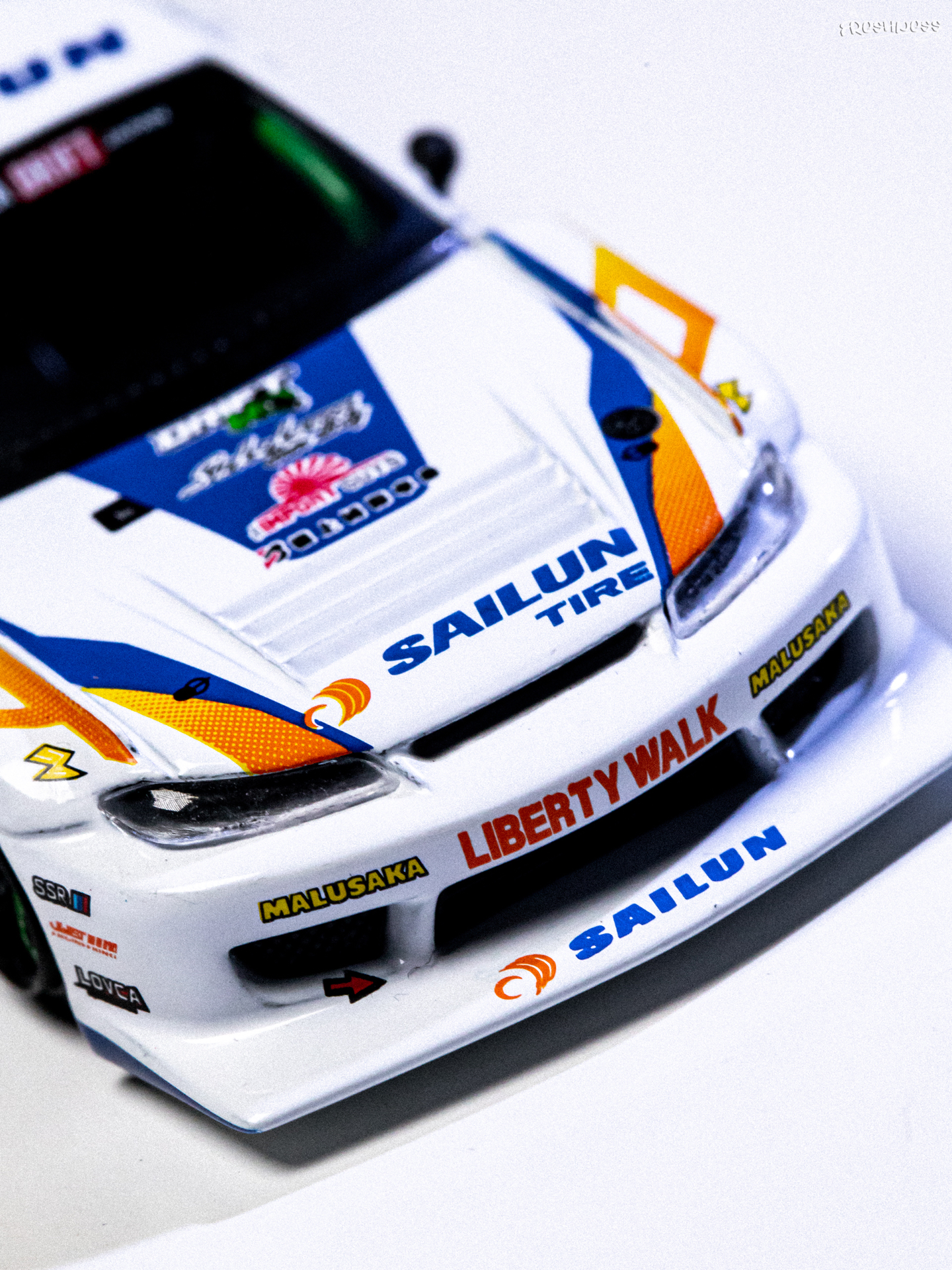 今天拍照练习的是最近入手的MINI GT的895号小车——日产NISSAN推出的SILVIA 15,是由LB改装推出的超级剪影系列,S15也是MINI GT的传奇刷色王了。超级剪影的S15我也一直在收,最近正好有刷到好价的老涂装,想想也把之前的一些还不贵的慢慢补上吧。这款赛事涂装我也是盯了挺久了,入手前就看了实车展示看着挺不错。虽然整体是采用了白色素漆,但车身上的拉花水贴看着是真好看,搭配起来真的...