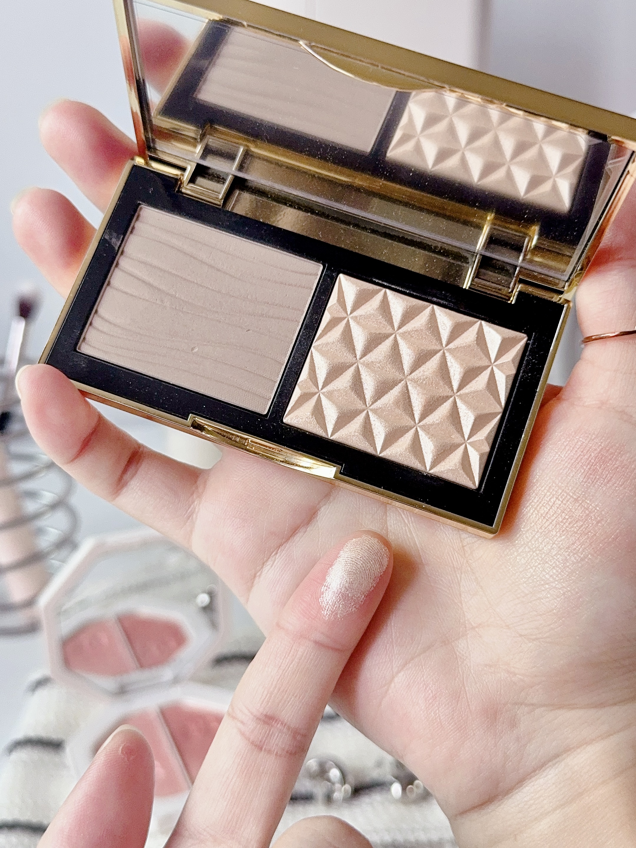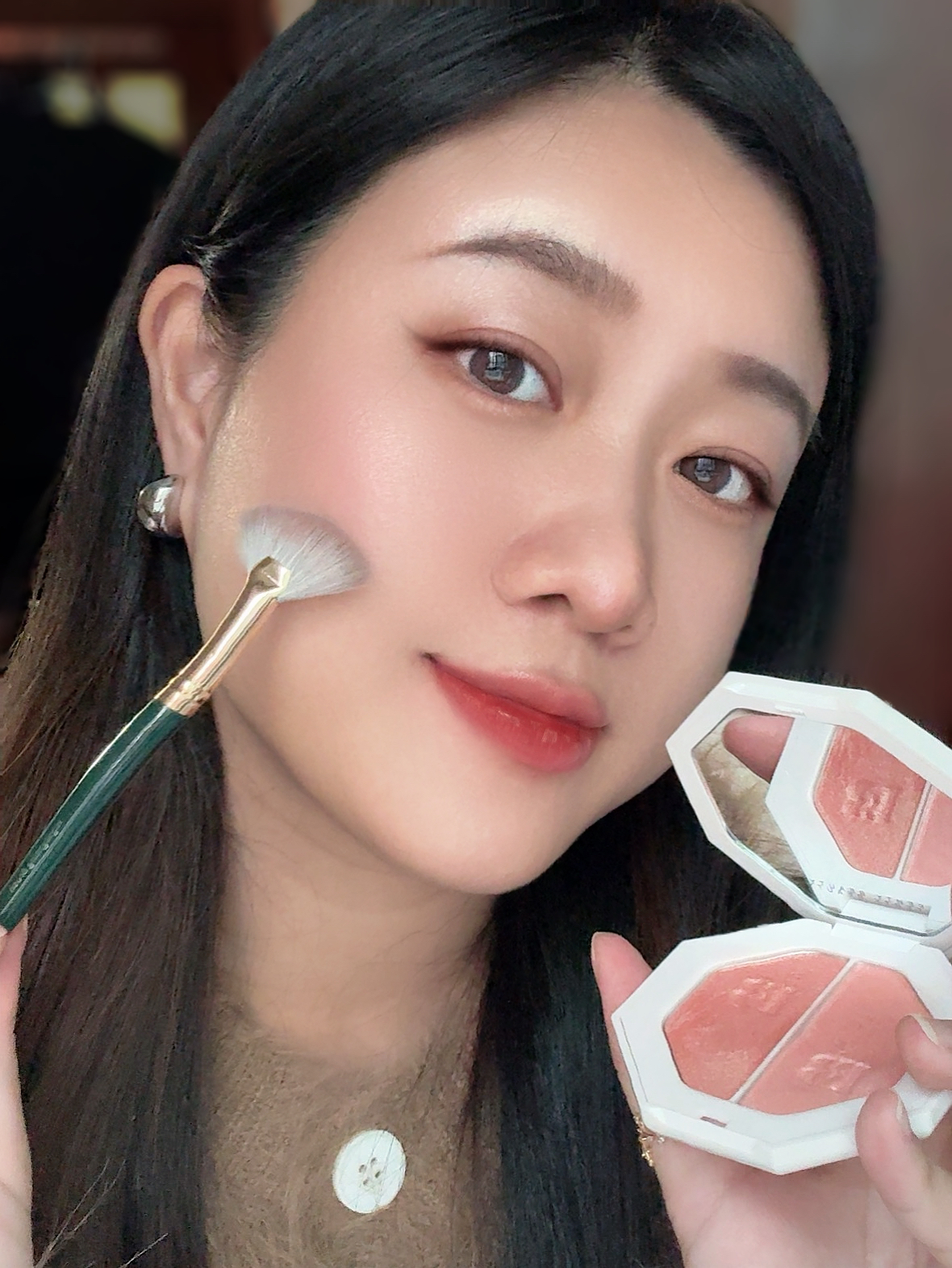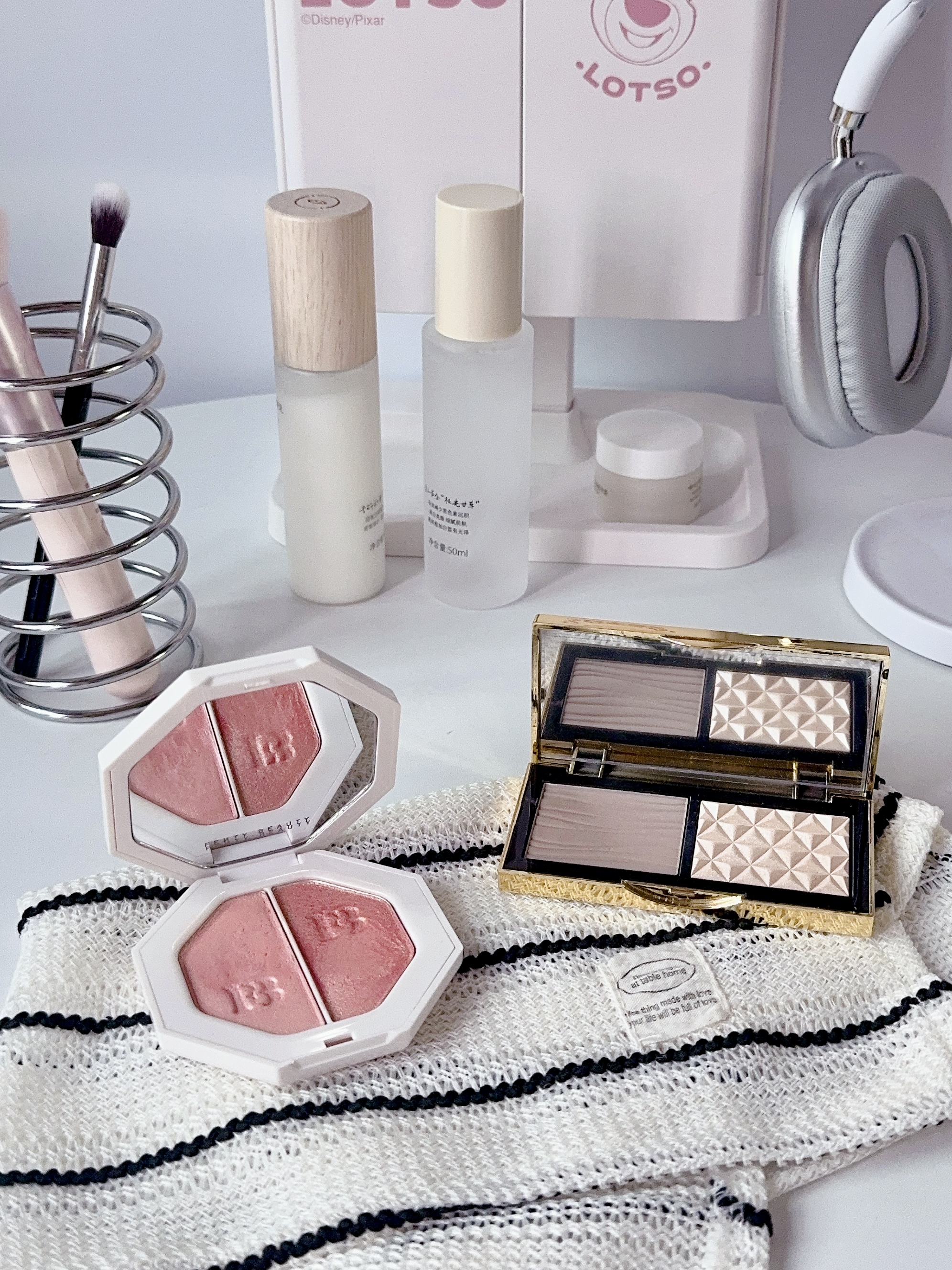 年底聚会妆容怎么化 试了这两块热门高光 给纠结的姐妹一点参考~ FENTY这块是双色电光粉饼 闪电裸桃光是暖调香槟 烈焰冰粉晶是冷调偏光 手指抹几下就很闪很亮了 粉质是明显的碎钻颗粒感 适合年会或派对这种场合 灯光下拍照真的好好看! MAC生姜高光比较日常 细腻的香槟金细闪 上脸是自然的水光肌,用着不会夸张 粉质压得很实不飞粉 怎么刷都不会显得手重~ 我一般年会用FENTY聚会用MAC高光 你们更...