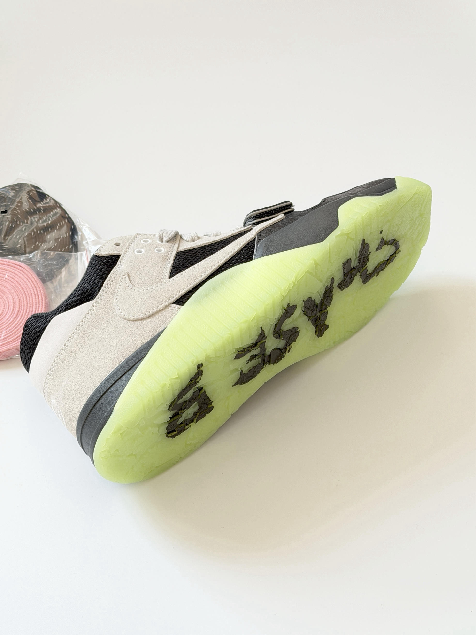 年底最后一双三方联名倒钩你入手了嘛?超百搭配色搭配夜光大底夜晚绝对超闪! 鞋身麂皮搭配织物设计,灰黑配色超级百搭!颜值与初代真的不相上下。