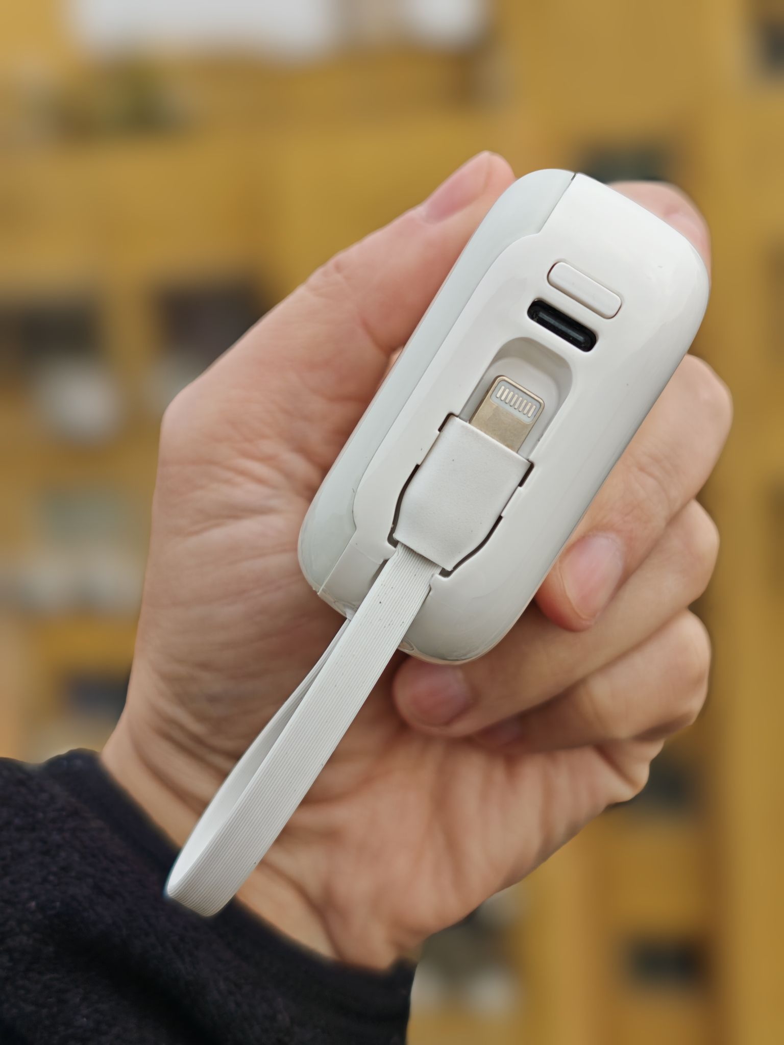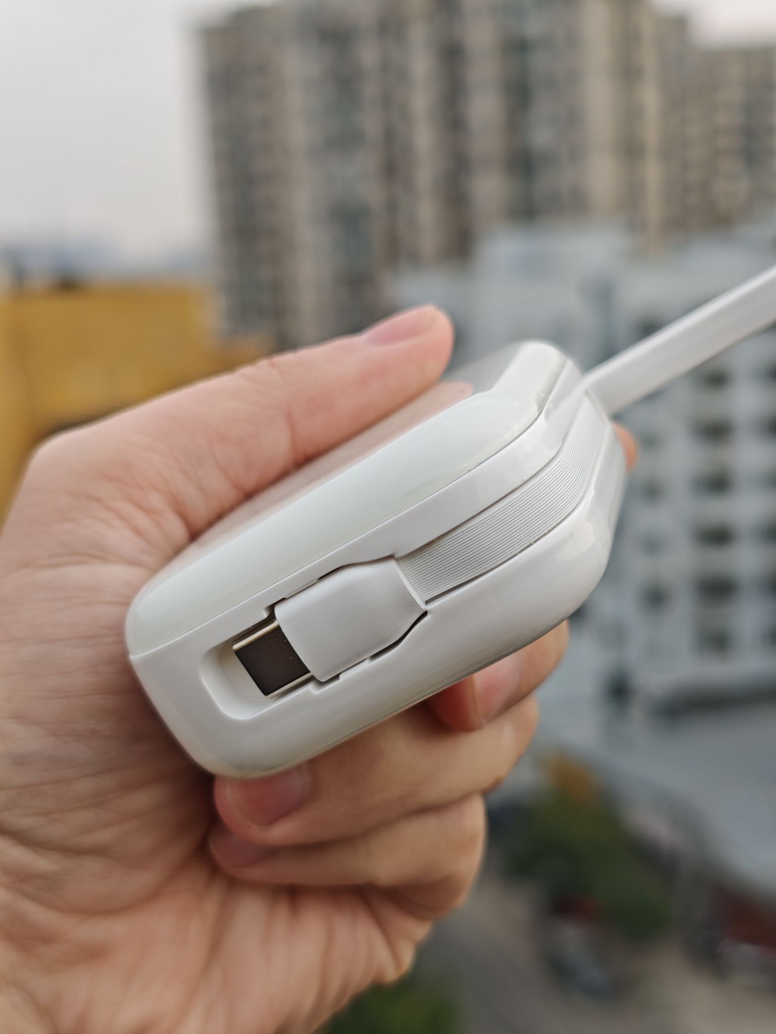 自带双线的设计真的戳中痛点!一根 Lightning、一根 Type-C,苹果安卓手机、平板都能充,出门再也不用纠结带哪根线,也不会出现忘带线只能干着急的情况。线材收纳得特别整齐,不用时收在机身里不凌乱,还能当手绳挂着,拿在手里不容易丢,通勤路上随手一插就能充电,简直太方便了!