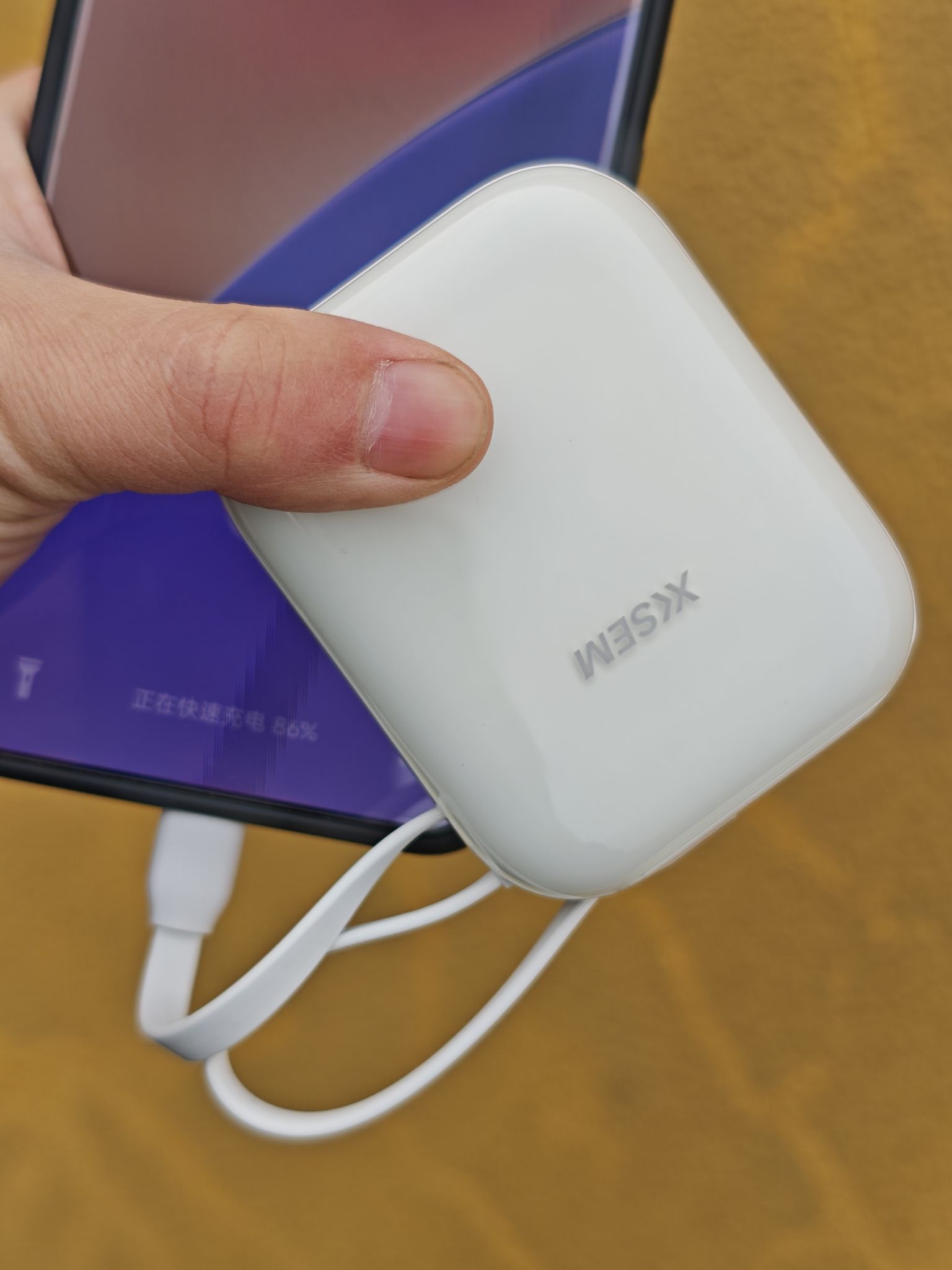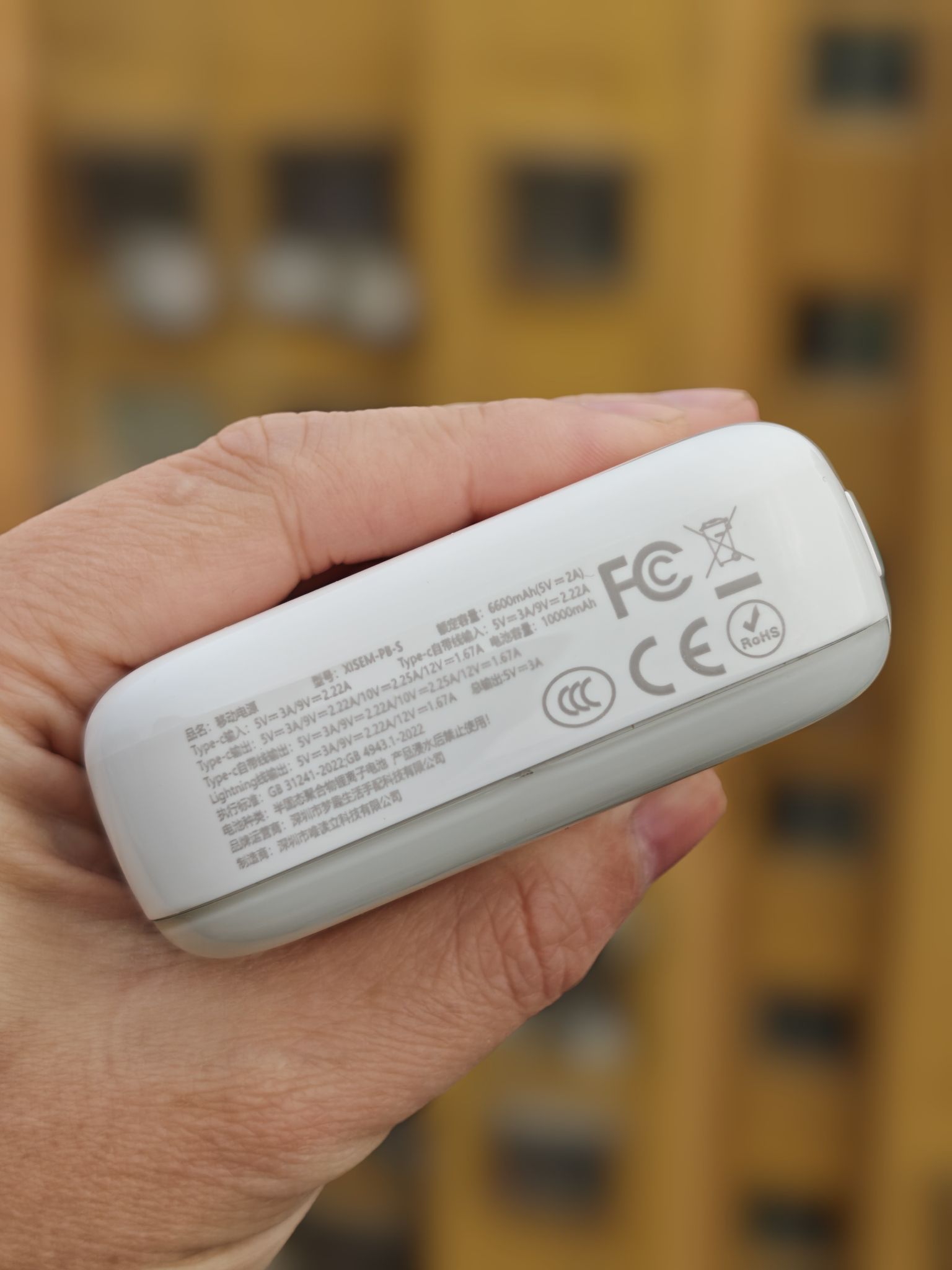 而且它的22.5W 快充超给力!早上出门前手机剩 30% 电,充 15 分钟就能到 60%,足够支撑一上午的使用。实测 10000mAh 容量能给我的手机充 2 次多,剩余电量还能给耳机补满,短途出差带一个完全够用。最关键是充电不 “虚标”,之前买过有的充电宝说 10000mAh,实际充 1 次就没电,这款的额定容量有 6600mAh,续航实打实的靠谱。