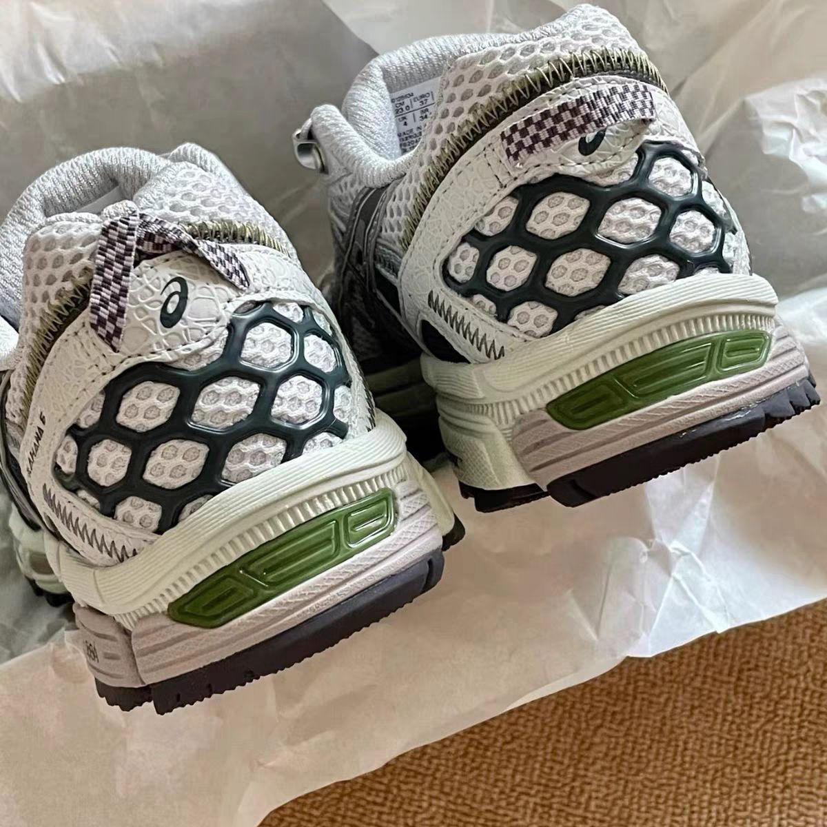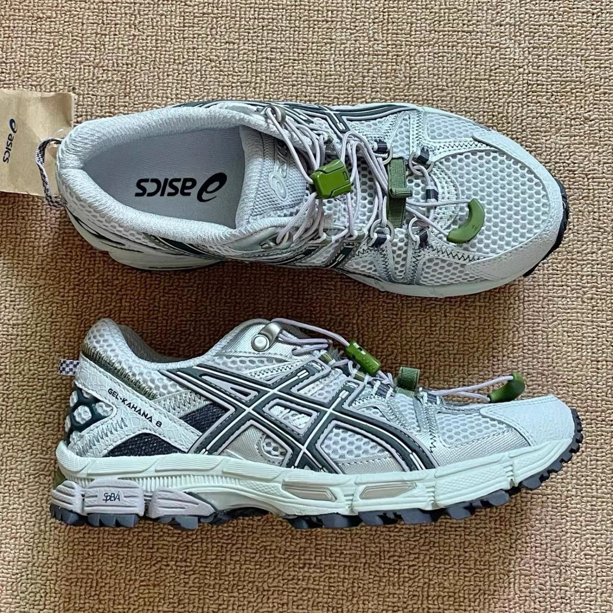 谁懂啊!在识货刷到这双ASICS GEL-KAHANA 8时,直接被戳中「户外+cityboy」双buff!灰白网面+墨绿撞色,网眼透气到能透光,夏天穿像踩在凉席上,配工装裤/短裤都巨有日系山系那味儿~ ✅细节控狂喜:鞋头立体纹路+后脚跟「虎爪纹」logo,复古感拉满!鞋带扣的荧光绿小设计是点睛之笔,随便拍都像杂志大片(看图!原相机直出都抗打)。 ✅脚感封神:中底GEL缓震胶真不是吹的!暴走两...