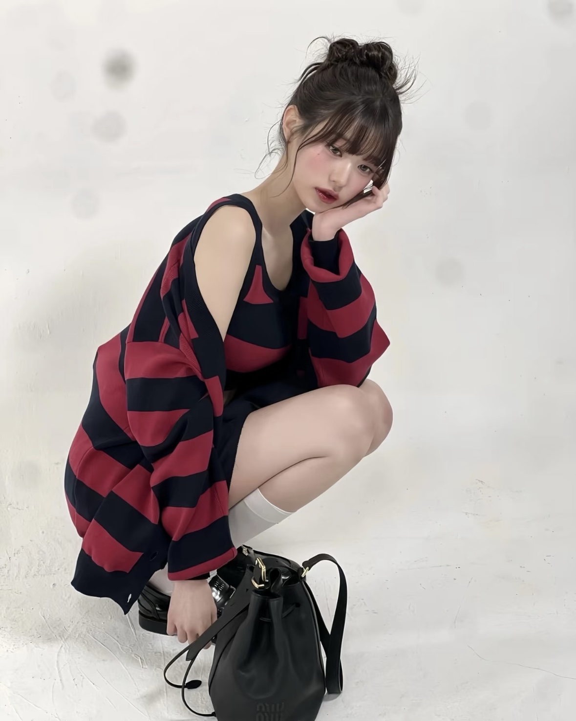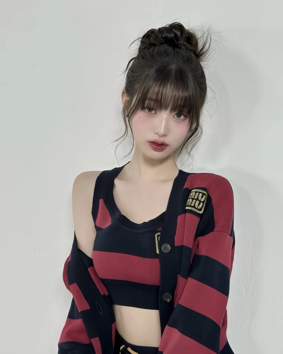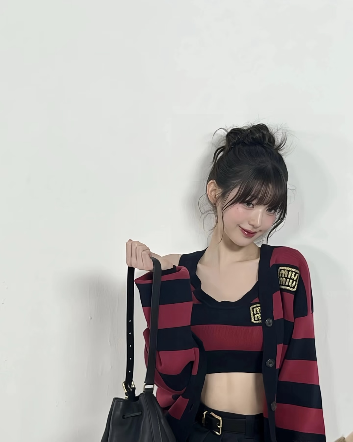 宝子们,谁懂啊!张元英这套红黑条纹穿搭直接把甜酷学院风焊在了身上✨ 宽松针织开衫叠穿短款背心,露腰设计又纯又欲,下搭百褶裙和乐福鞋,一整个青春活力美少女既视感! 红黑配色经典又吸睛,慵懒中带着小性感,不管是上学还是和朋友出街都超合适~ 水桶包一挎,氛围感直接拉满,谁穿谁是人间芭比! 💡 穿搭小Tips: • 叠穿是精髓,背心+开衫的组合显瘦又有层次 • 百褶裙+长白袜+乐福鞋,完美复刻元气...