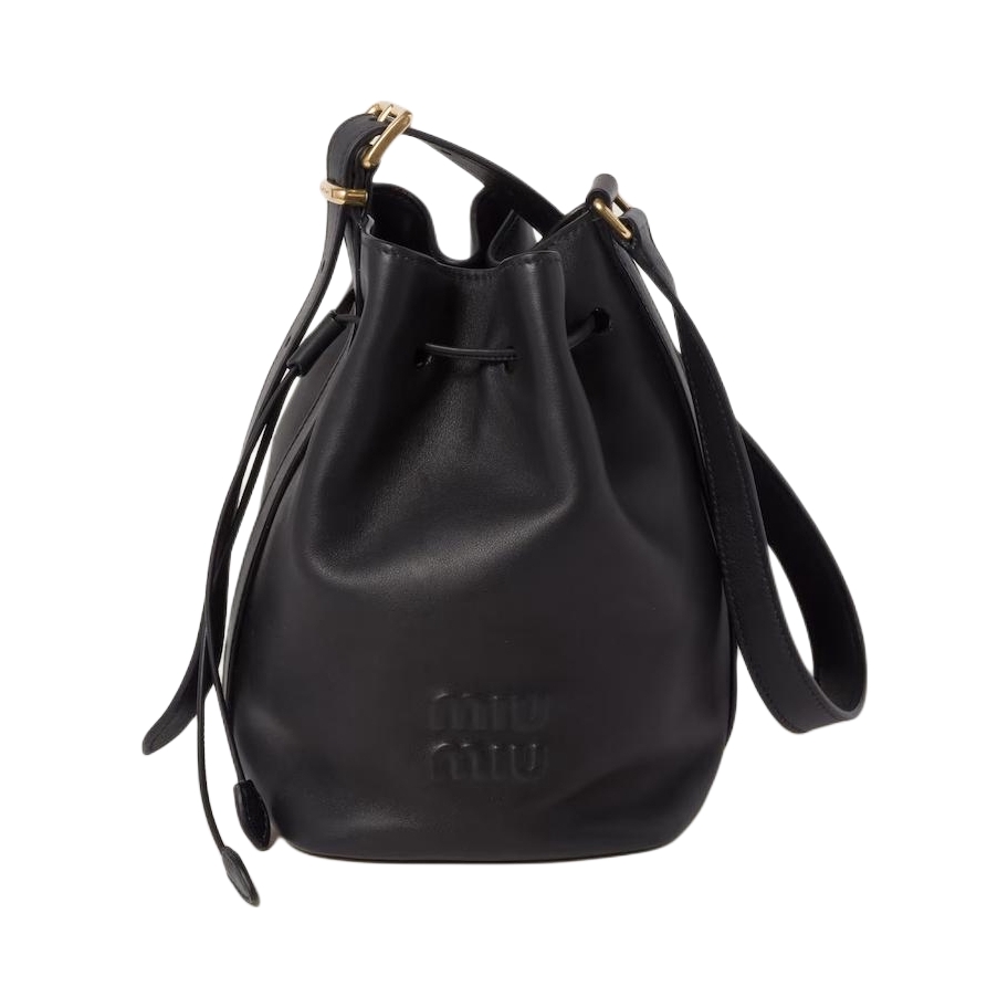 本篇笔记关联了Miu Miu/缪缪 压纹刻字徽标抽绳开合皮革单肩水桶包斜挎包 黑色等商品,为用户提供真实的使用体验和购买参考。