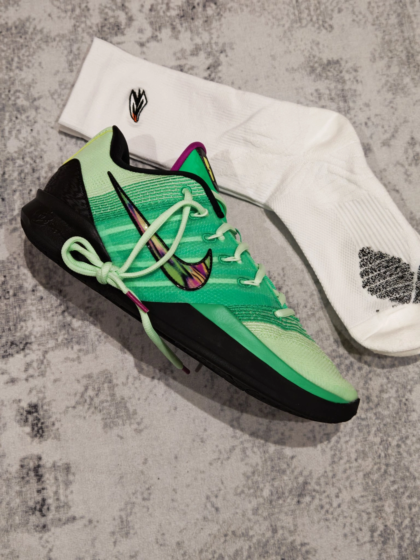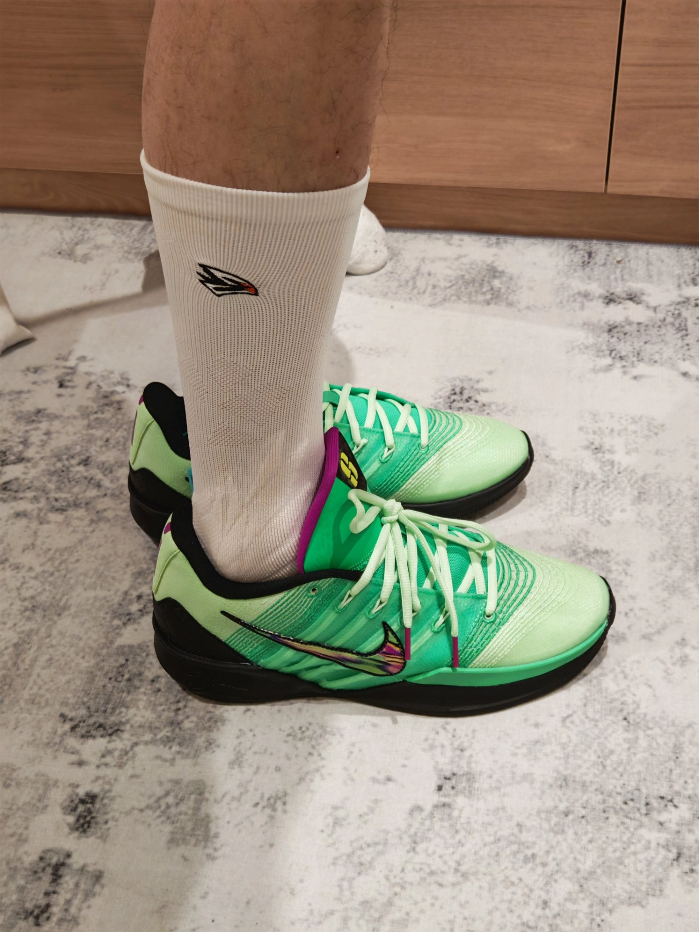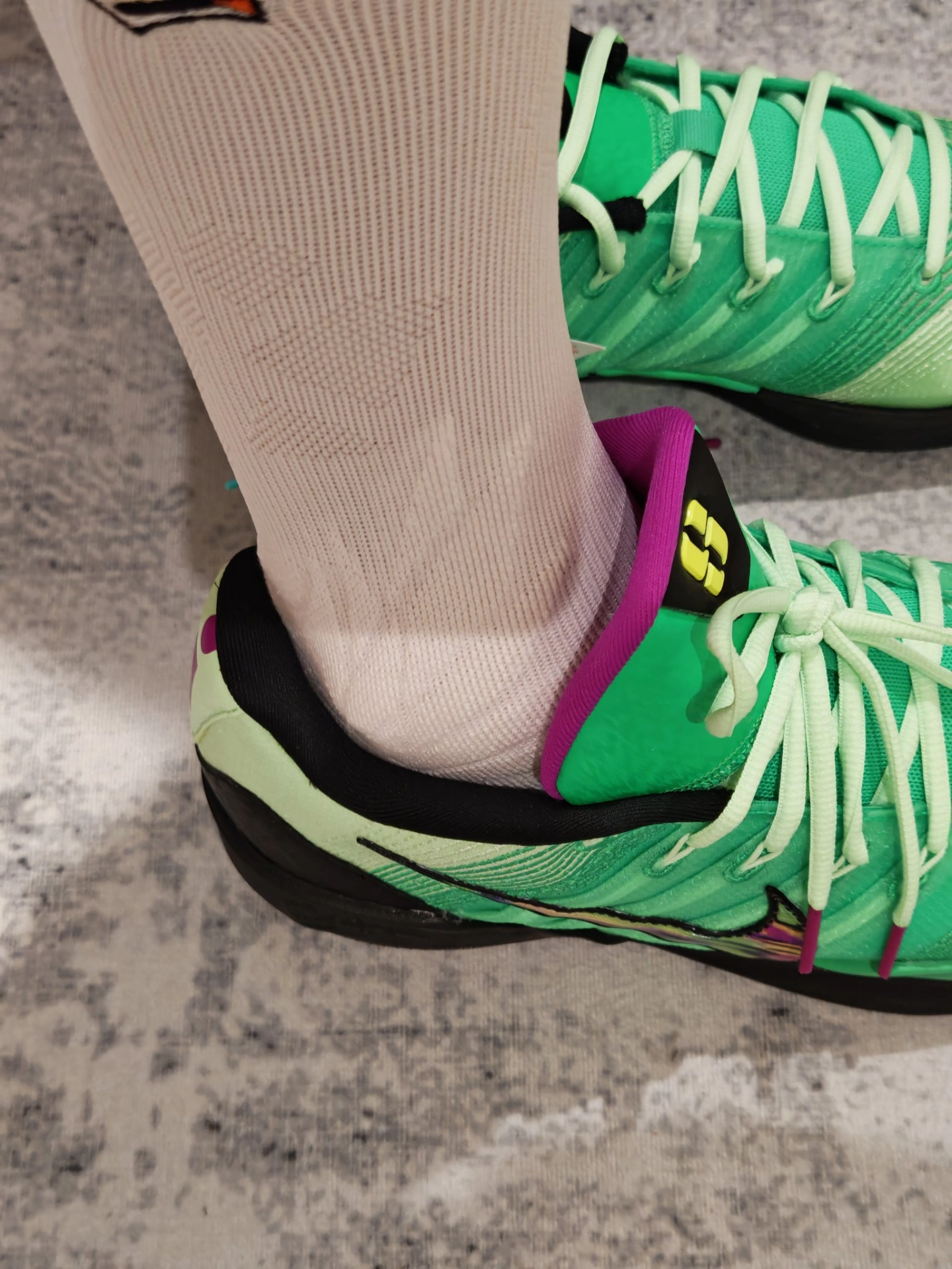 今天选择Sabrina 3 “Gamer ”上脚,搭配维动隼白袜,就是球场清爽的实战组合穿搭。白袜中和了鞋身的黑绿撞色,既干净又不抢戏,加上 XDR 大底和毛巾底袜子的加持,颜值和性能都照顾到了。 #维动球袜 #新一代篮球袜又帅又能打 #Sabrina3 #硬核球鞋实战派 #实战袜
