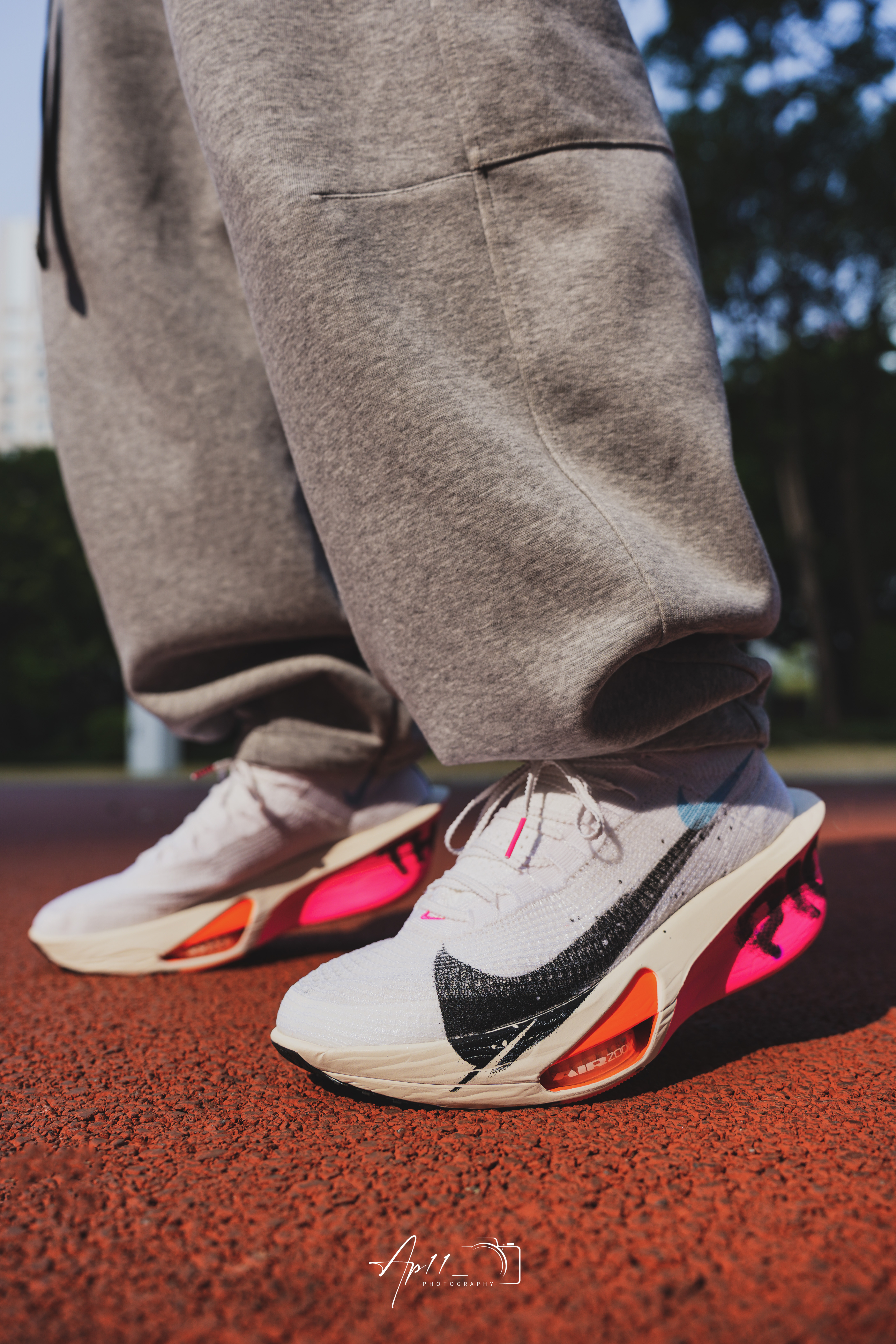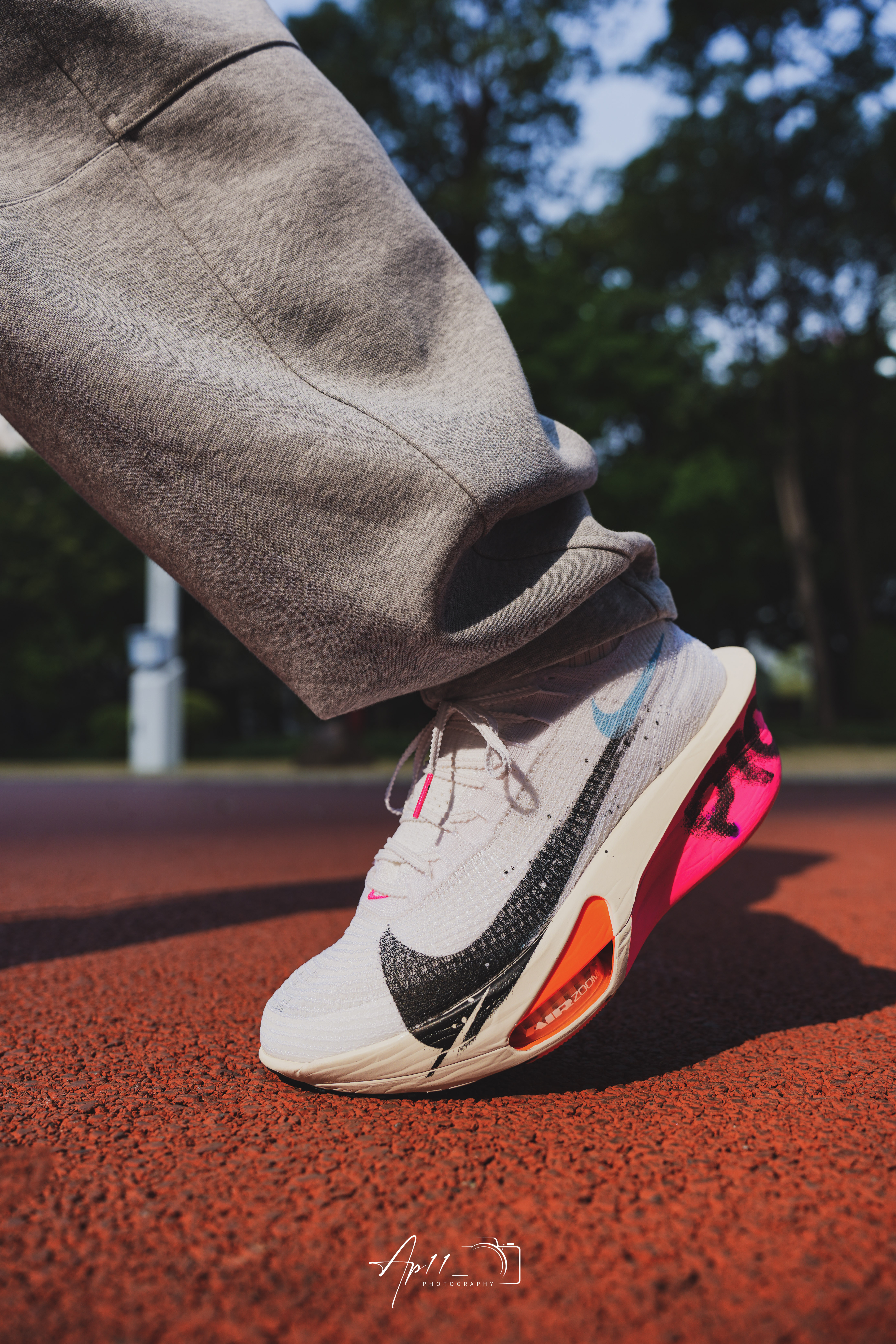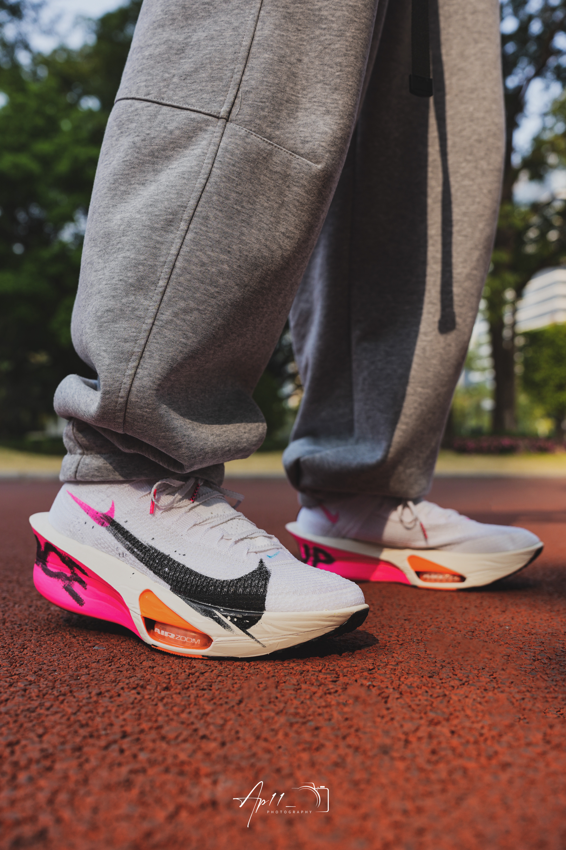 最近长训都穿这双Alphafly 3,白鞋身搭黑粉撞色碳板,像把跑道上的风都印在了鞋上。 编织鞋面贴合又透气,长跑中也没闷脚感,碳板推进力很顺畅,每一步都能感受到回弹。 日常搭运动裤也够亮眼,算是近期跑步和训练都离不开的一双鞋。