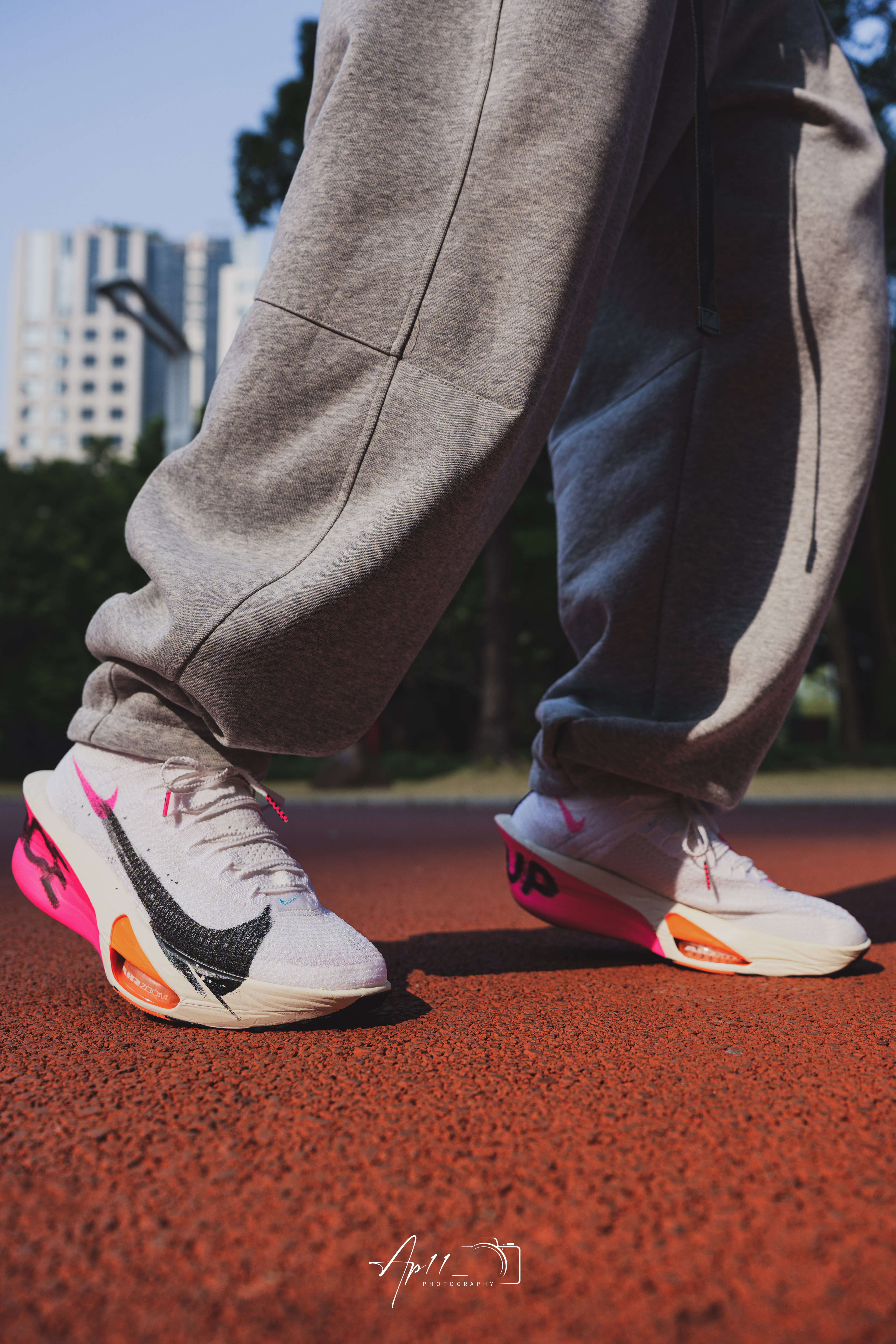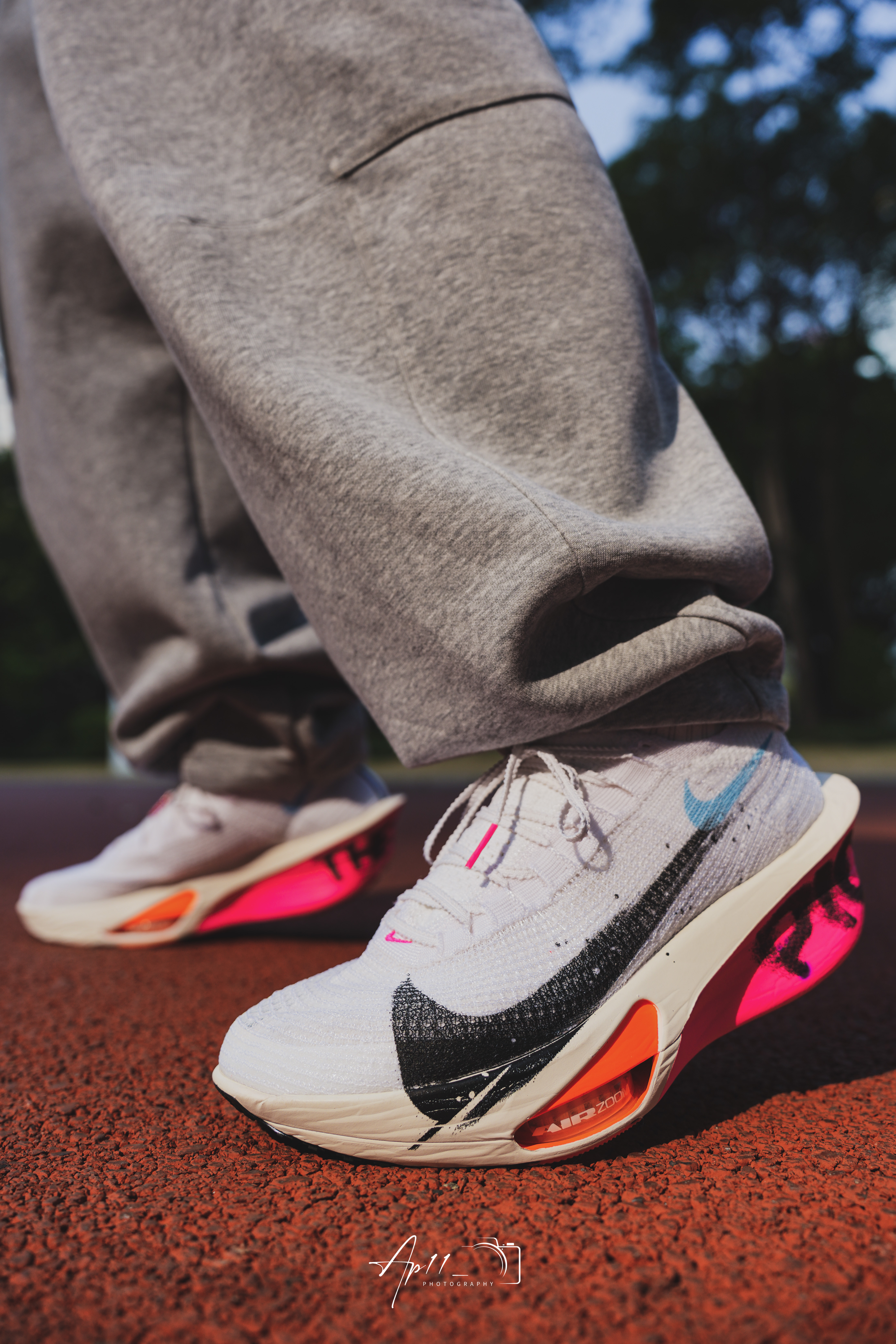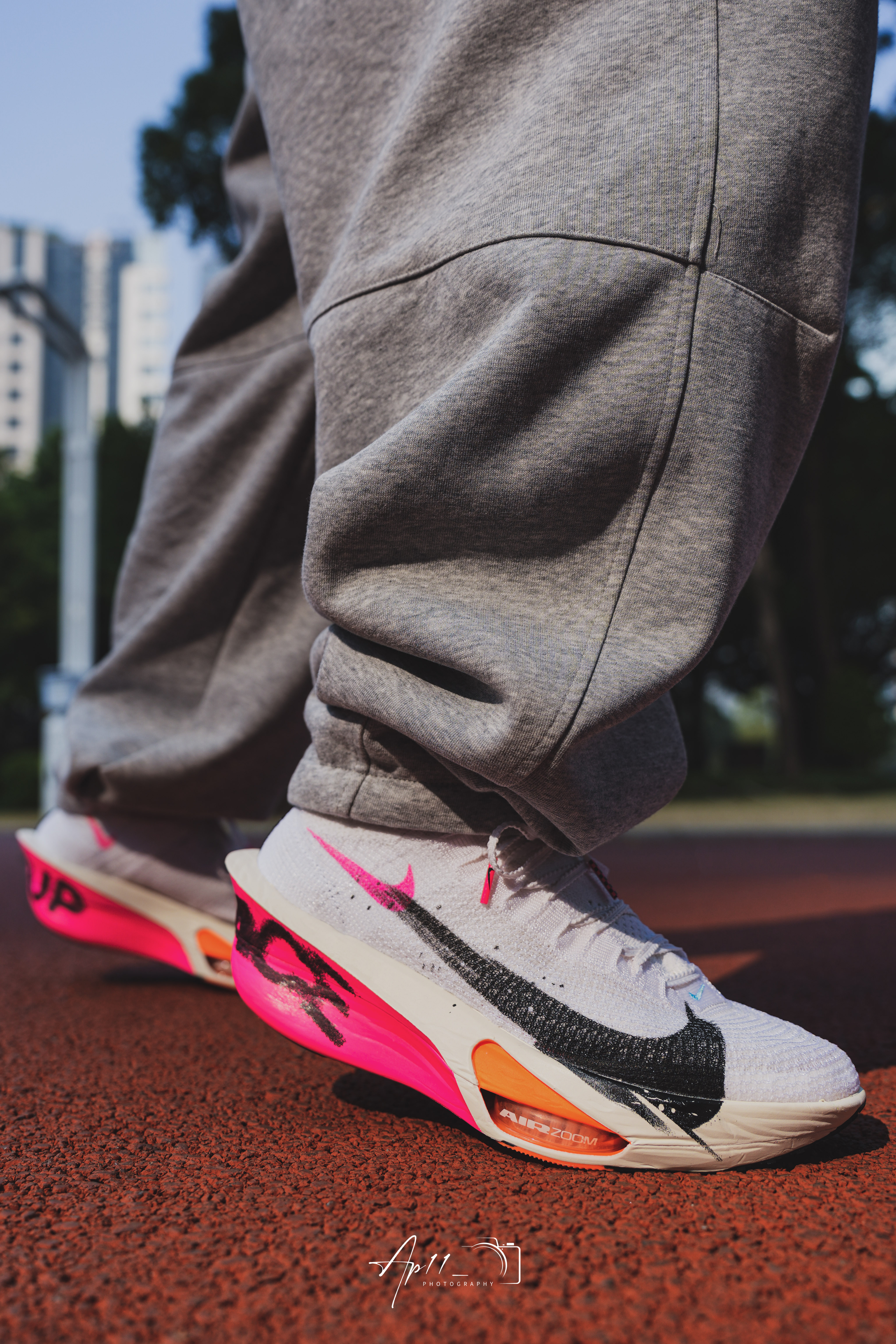 最近长训都穿这双Alphafly 3,白鞋身搭黑粉撞色碳板,像把跑道上的风都印在了鞋上。 编织鞋面贴合又透气,长跑中也没闷脚感,碳板推进力很顺畅,每一步都能感受到回弹。 日常搭运动裤也够亮眼,算是近期跑步和训练都离不开的一双鞋。