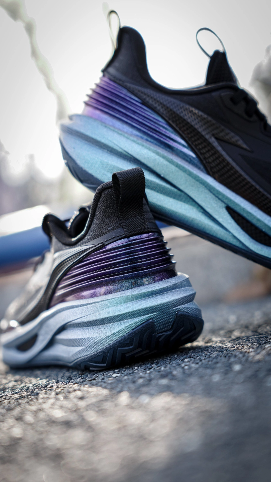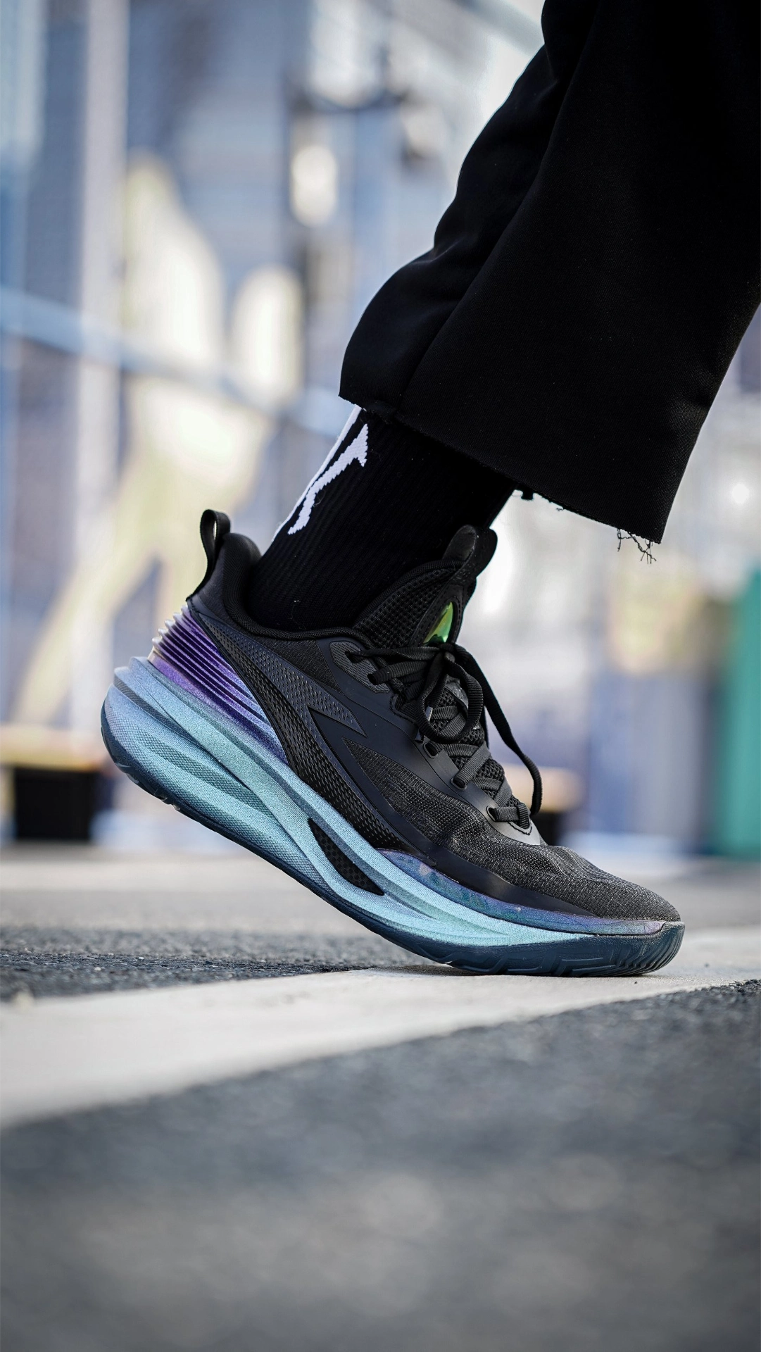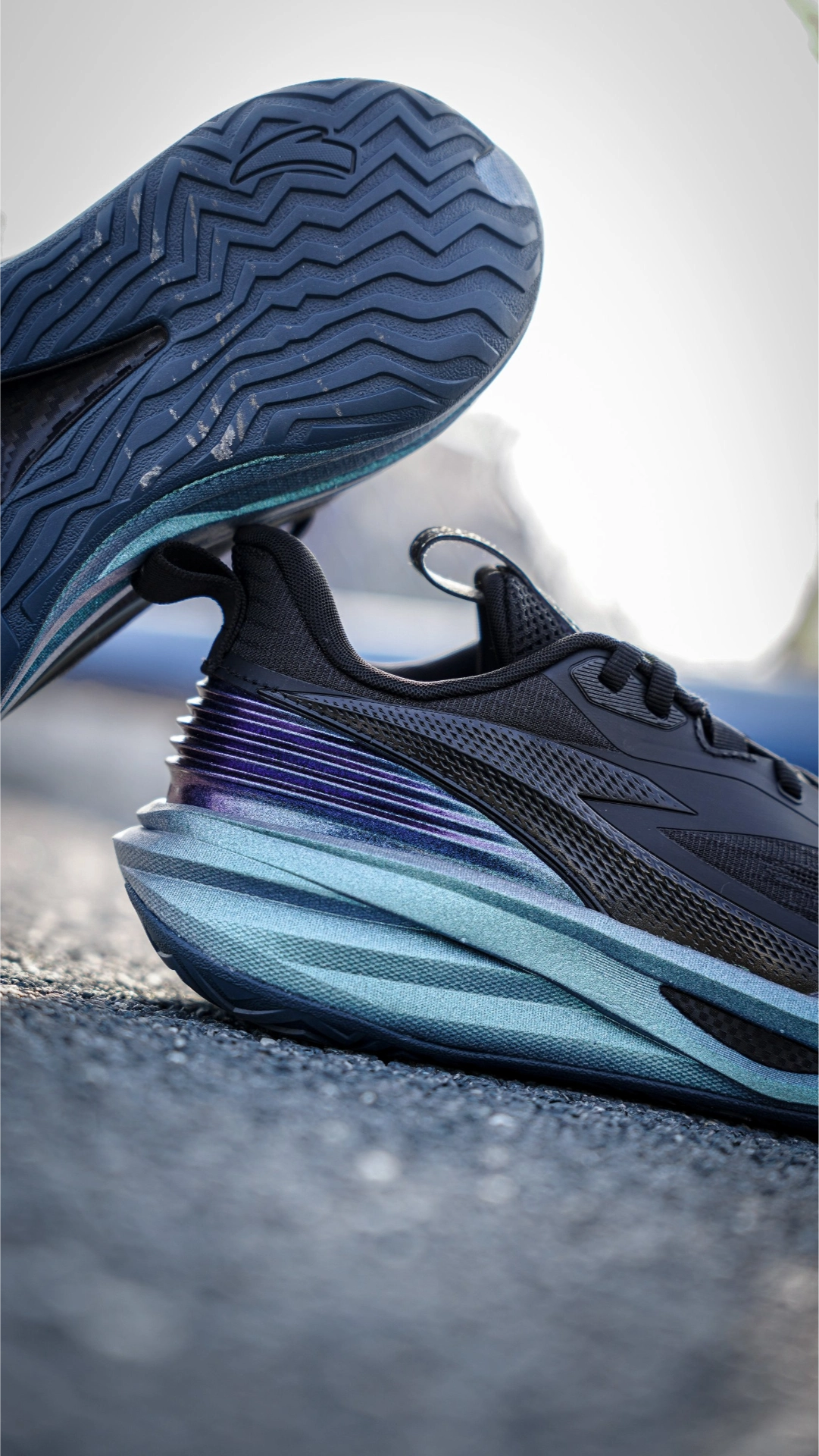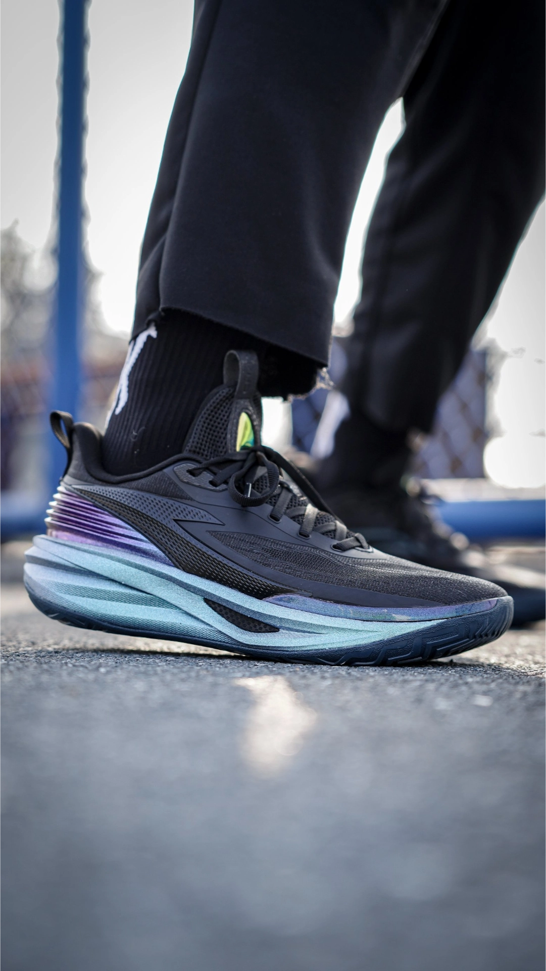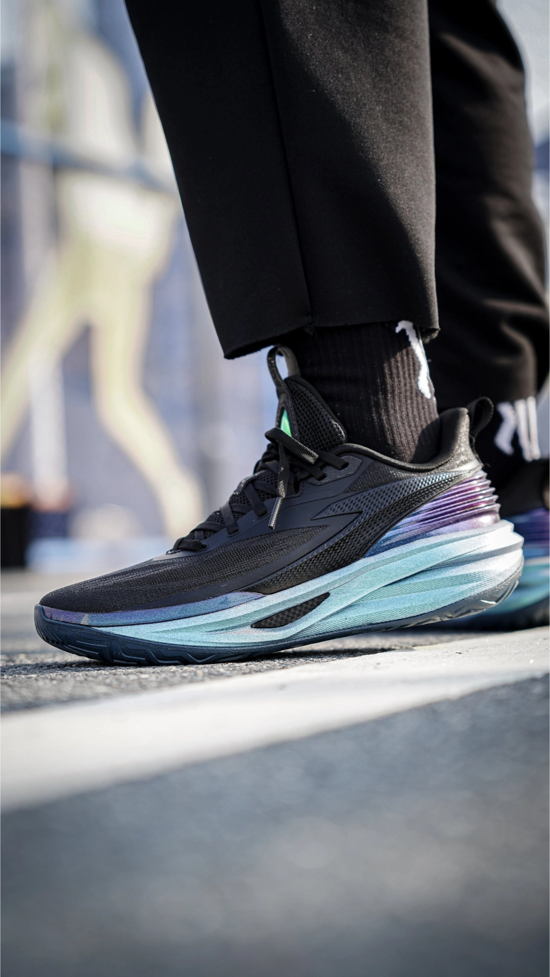 #安踏 最新的追光入手之后我觉得实战表现非常不错,这双新配色黑洞就更适合喜欢深色系的兄弟。它也不是简单的纯黑,中底和后跟的TPU都有着电镀效果蓝绿色涂装,尤其是TPU的渐变珠光质感 细节很到位。 这双鞋体验下来我觉得很适合喜欢跑动 追求突破速度的选手,全掌氮80填充在外层的A-SHOCK PRO框架里,兼顾到了回弹和稳定性,尤其是前掌的蹬地反馈特直接,毫不拖沓。中底内置了一块X型碳片,面积不大驾驭...