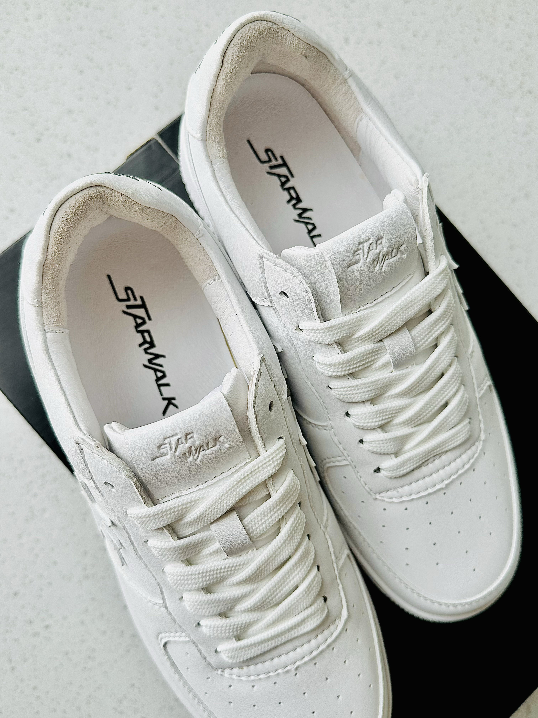 分享一款 starwalk soldier 流星板鞋 谁能拒绝❌一双经典百搭的小白鞋呢 纯白的颜色不管搭配什么衣服都很好看🤩 鞋子采用真皮材质加上后跟的麂皮 质感非常细腻 上脚也很舒服💯