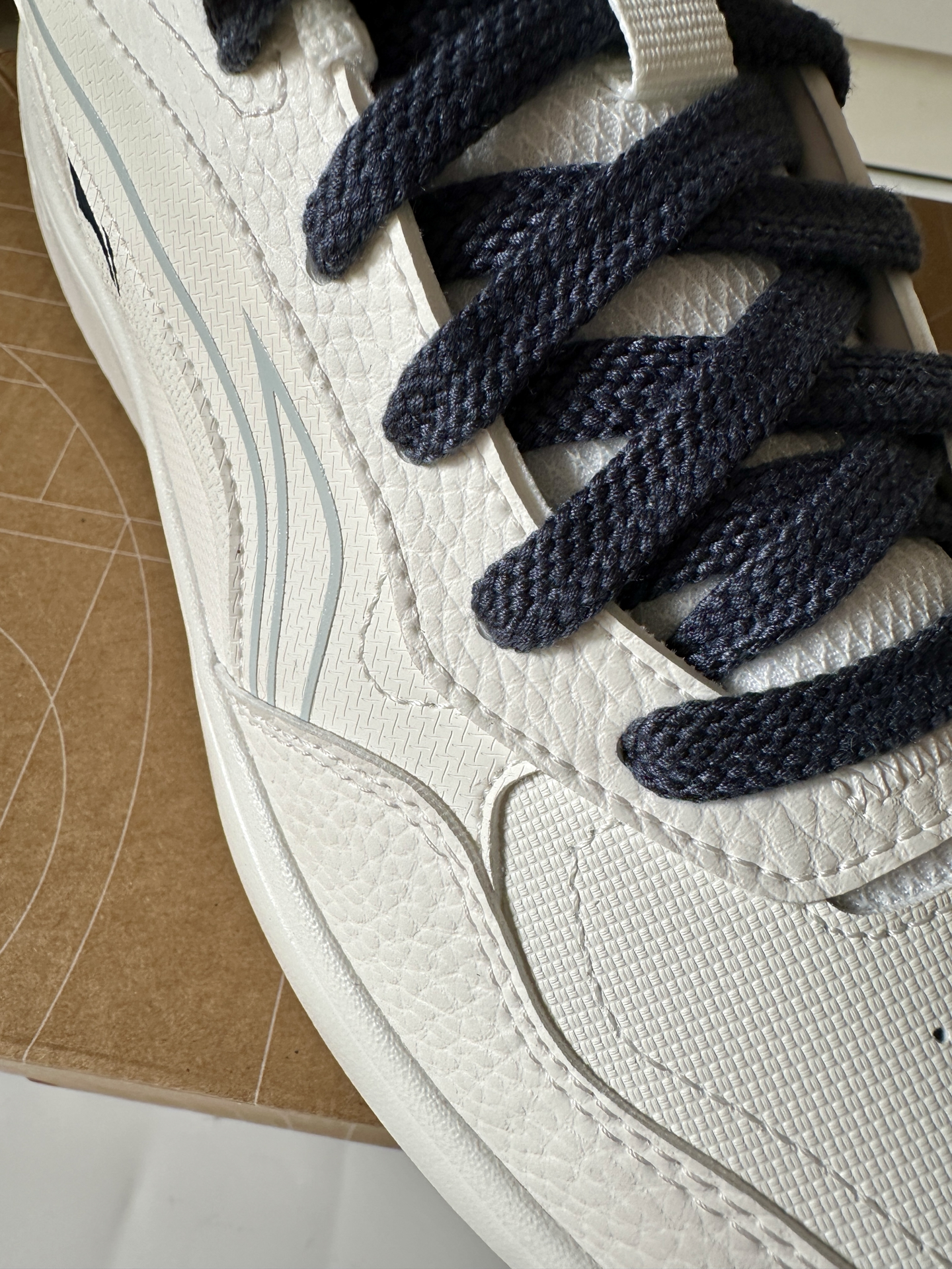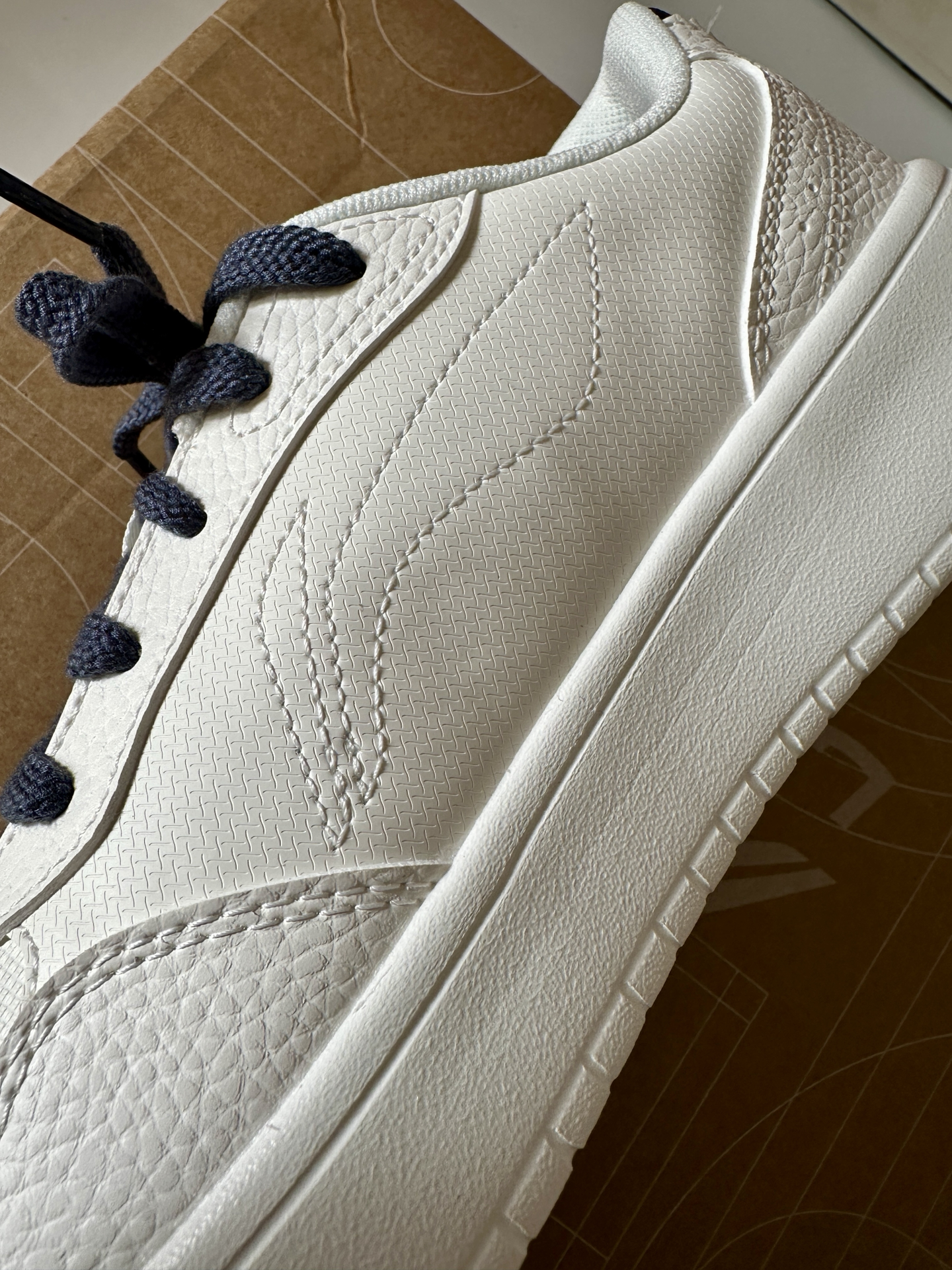 现在的板鞋真卷,一开的价格已经是全皮革了。 首先上手就感觉很轻,42码单只不到300克,上脚可以说是无负担。全皮革不光颜值高,也好打理,脏了不用大费周章清洗,直接湿巾一擦就好, 脚感主要是鞋垫和中底科技带来的,我感觉是偏软弹,小体重也能感受到,穿搭上我个人觉得就是主打一个随便搭,因为鞋型不夸张,搭运动风休闲风类的都是不违和的。 #你永远可以相信小白鞋 #新年买新鞋 #宝藏蓝白板鞋分享 #白蓝...