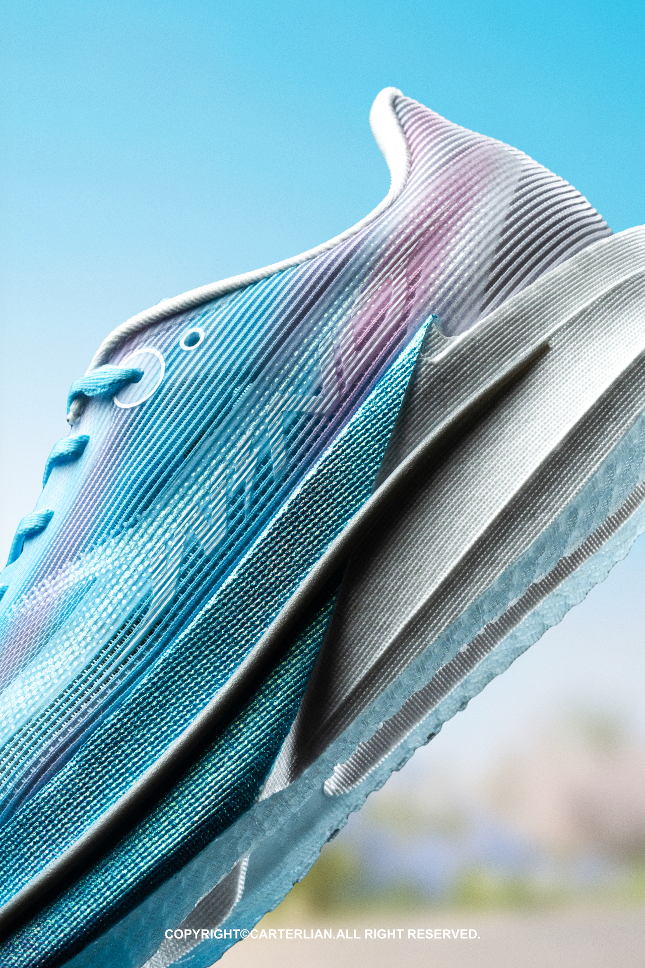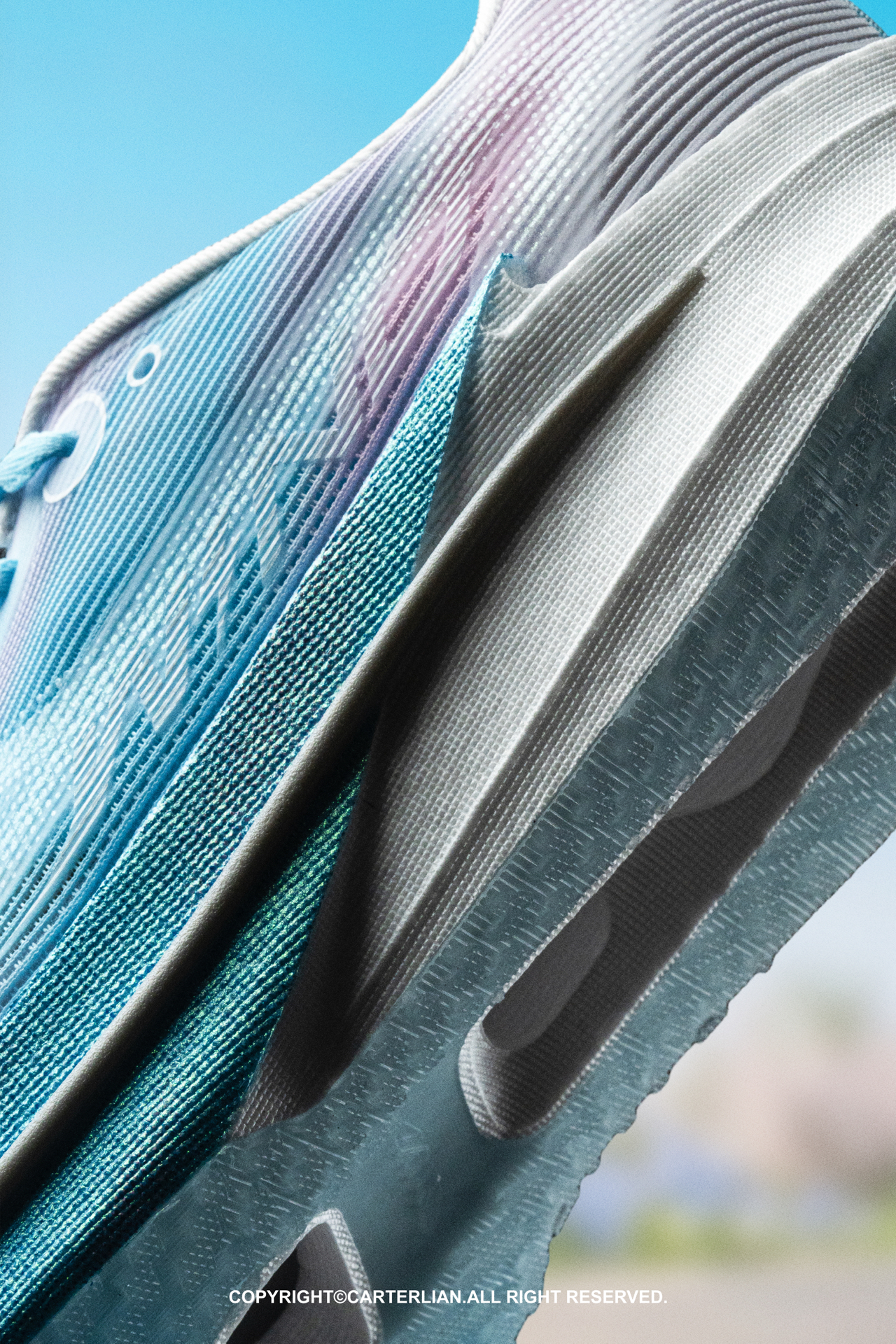 强风4这次有几点变化还是蛮让我喜欢的 首先就是中底脚感更加软弹 侧边可以看到露出的TPU板使得在跑动中 特别是过弯的时候的稳定性更强了 鞋面整体包裹是比较舒适的,贴合脚背 动态感受下5分配的软弹感就很明显了 在过弯的时候前掌有个小豁口 正好在我趾骨发力的位置所以发力很直接 滚动感自然。 这个勿忘我的配色也是比较小清新的配色 对于学生党日常竞速训练或者通勤体考体测也是可以的。 @乔丹QIAODAN官...