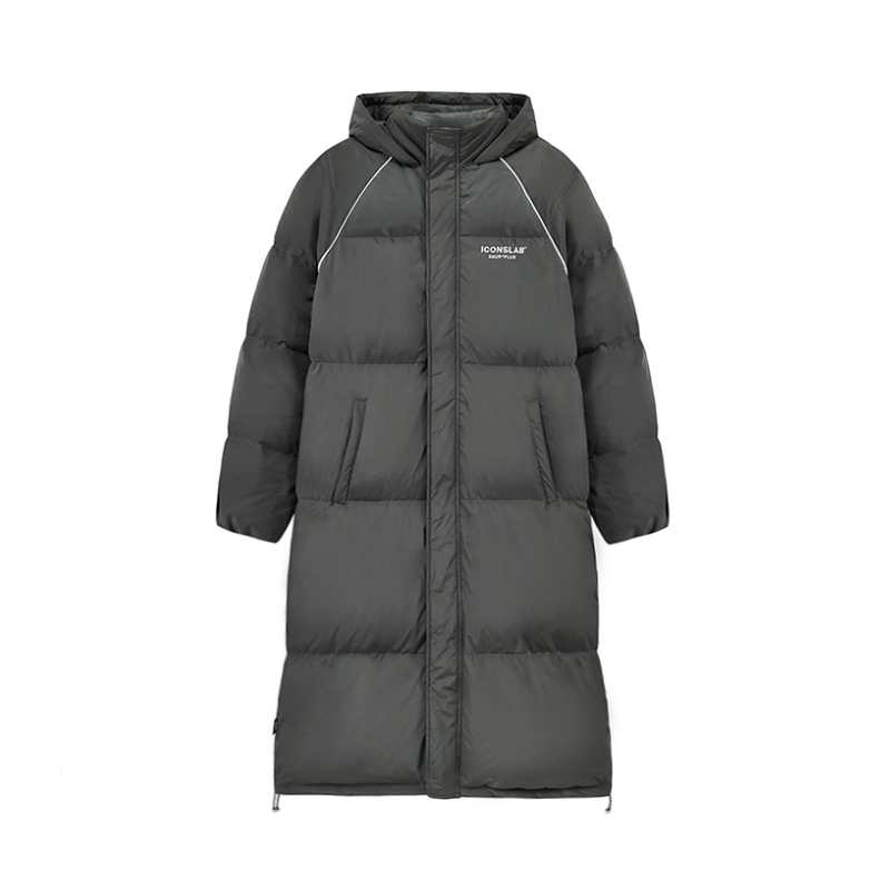 ICONS.com 长款羽绒服,过膝设计 深灰色简约风格,连帽+宽松版型 冬季保暖力满分! 填充优质白鸭绒,防风防泼水,零下低温也能轻松对 大口袋超实用,通勤、户外都很适合 真的很喜欢这种全身包裹着的羽绒服! 出门通勤上学都可以随便一套,又很百搭耐脏! 韩版中性风,男女都能穿,情侣搭配也很OK