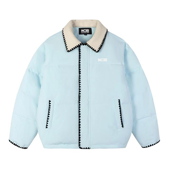 新款 ICONS.com 贝壳绣羊羔毛翻领羽绒棉服 短款设计超适合小个子! 羊羔毛翻领+贝壳绣花,韩系感满满 羽绒加厚,保暖力在线 冬天通勤、校园、户外都能轻松驾驭 浅蓝色清新显白,搭配牛仔裤 通勤穿很合适,宽松不臃肿,显高又显气质,性价比高 学生党也能轻松入手!
