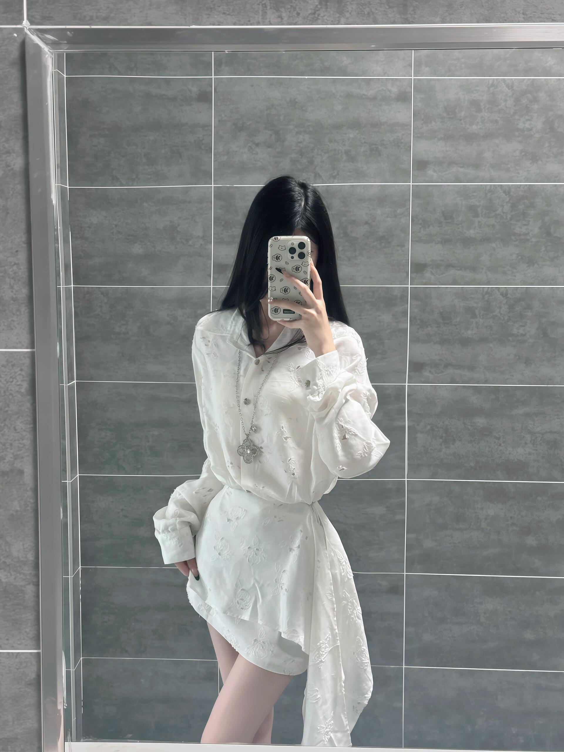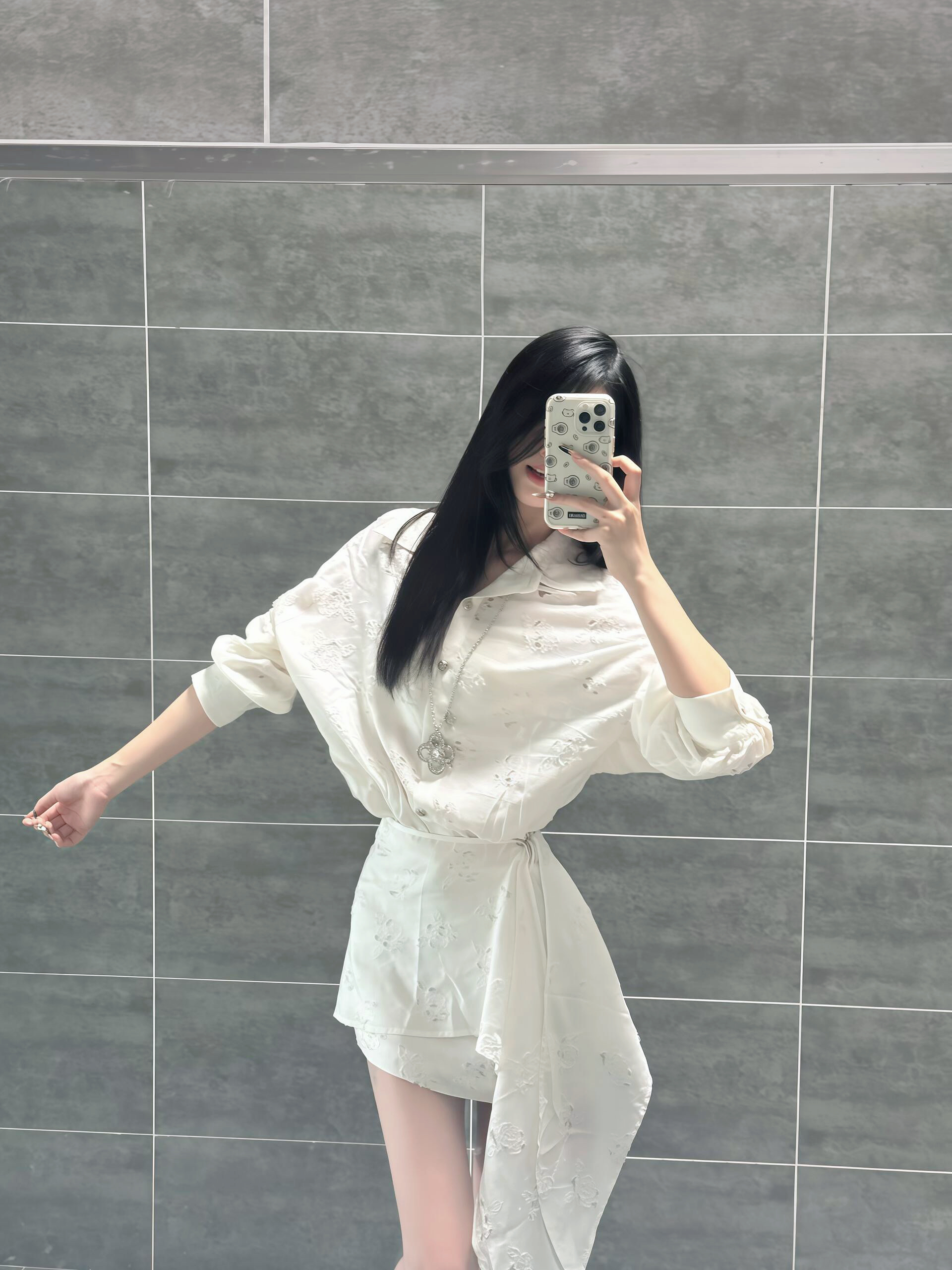 谁懂啊!这件白色衬衫裙真的把纯欲风焊在身上了! 缎面提花的面料自带柔光滤镜,走动起来还会泛着细腻的光泽感,看起来就很贵。 宽松的衬衫版型藏肉又显瘦,腰间的绑带一收,直接拥有蚂蚁腰和大长腿,比例好到犯规! 不规则裙摆+垂坠感飘带,走路带风的松弛感直接拉满,清冷大小姐那味儿一下就有了。 不管是约会穿还是和小姐妹下午茶,都能被追着问链接! 配个小皮鞋是清冷学姐,搭高跟鞋又秒变氛围感美女,真的是一件封...